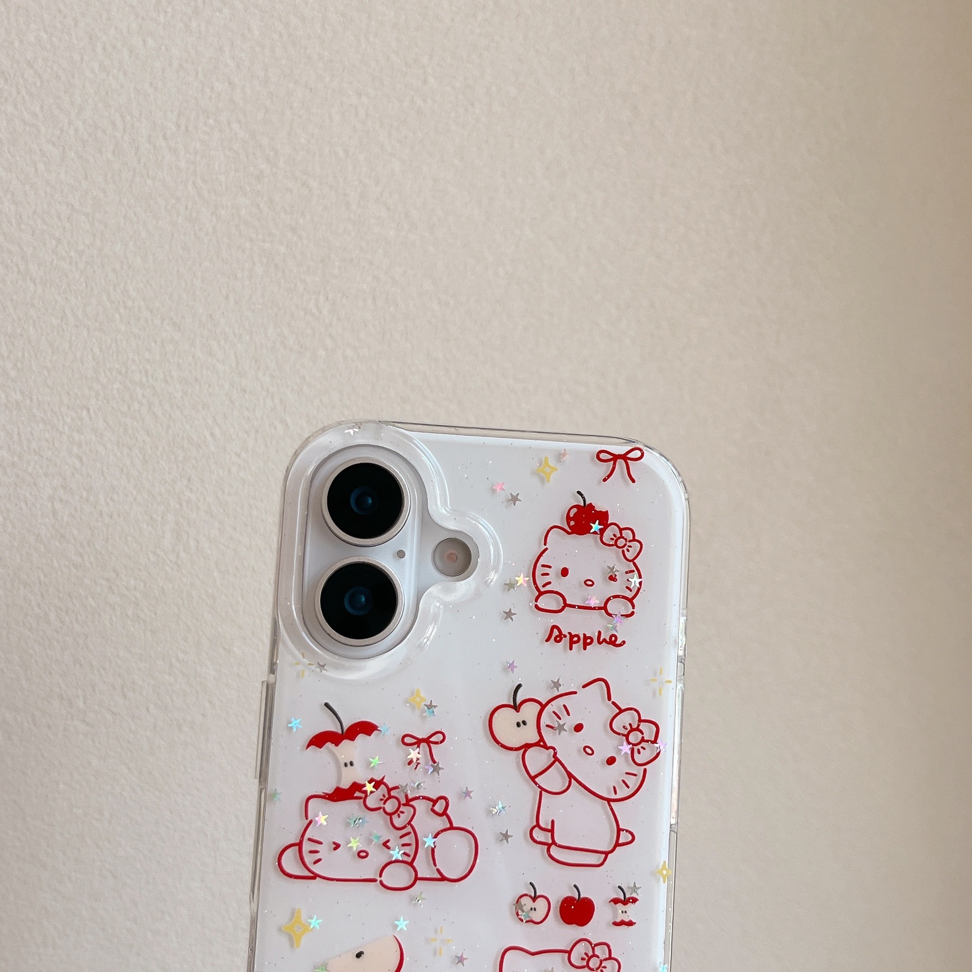 | Colores | Capa única-fondo blanco brillante línea roja manzana gato KK,Cadena fondo blanco brillante línea roja manzana gato KK |