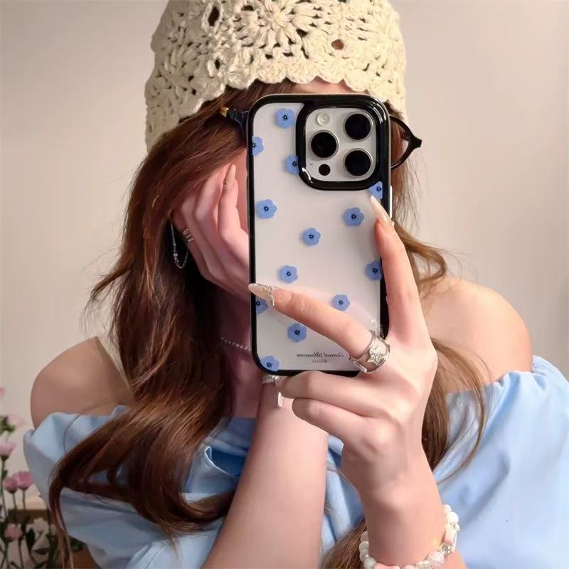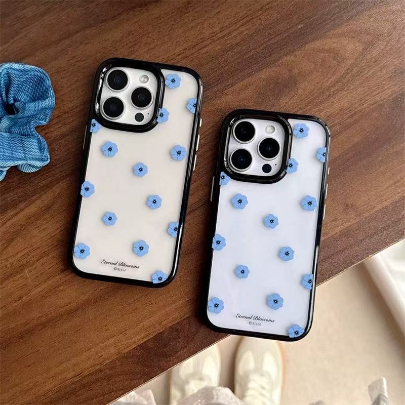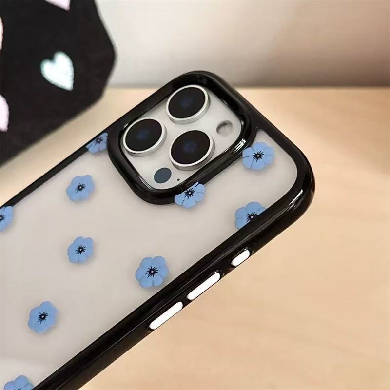 Ins coreanos flores azules simples y transparentes para iPhone16ProMax funda para teléfono móvil 13 Apple 14/15 hembra