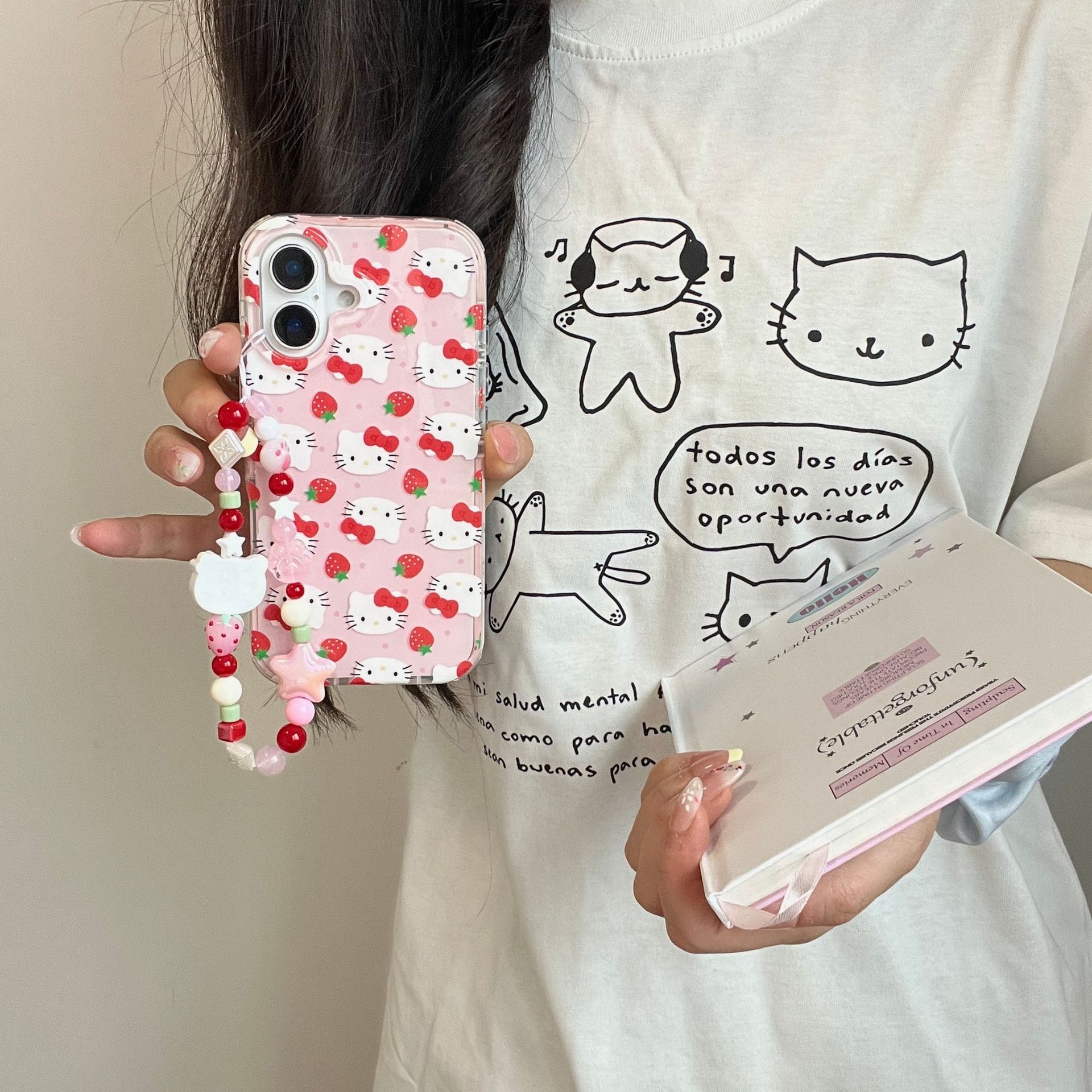Corazón de niña linda pantalla completa KT cat para Apple 16ProMax funda para teléfono móvil 15Pro cadena 14/13 nuevo 15PM