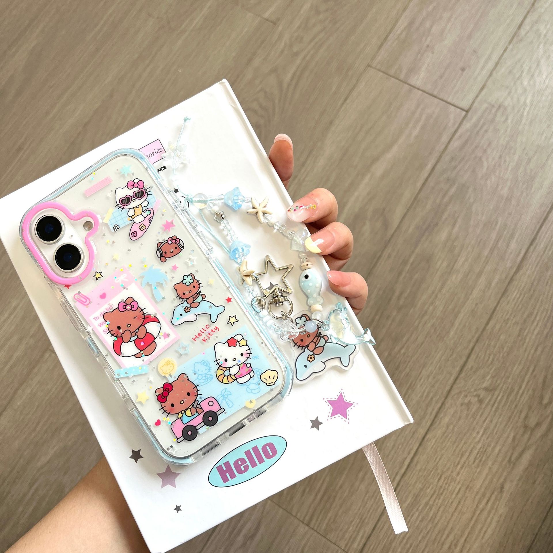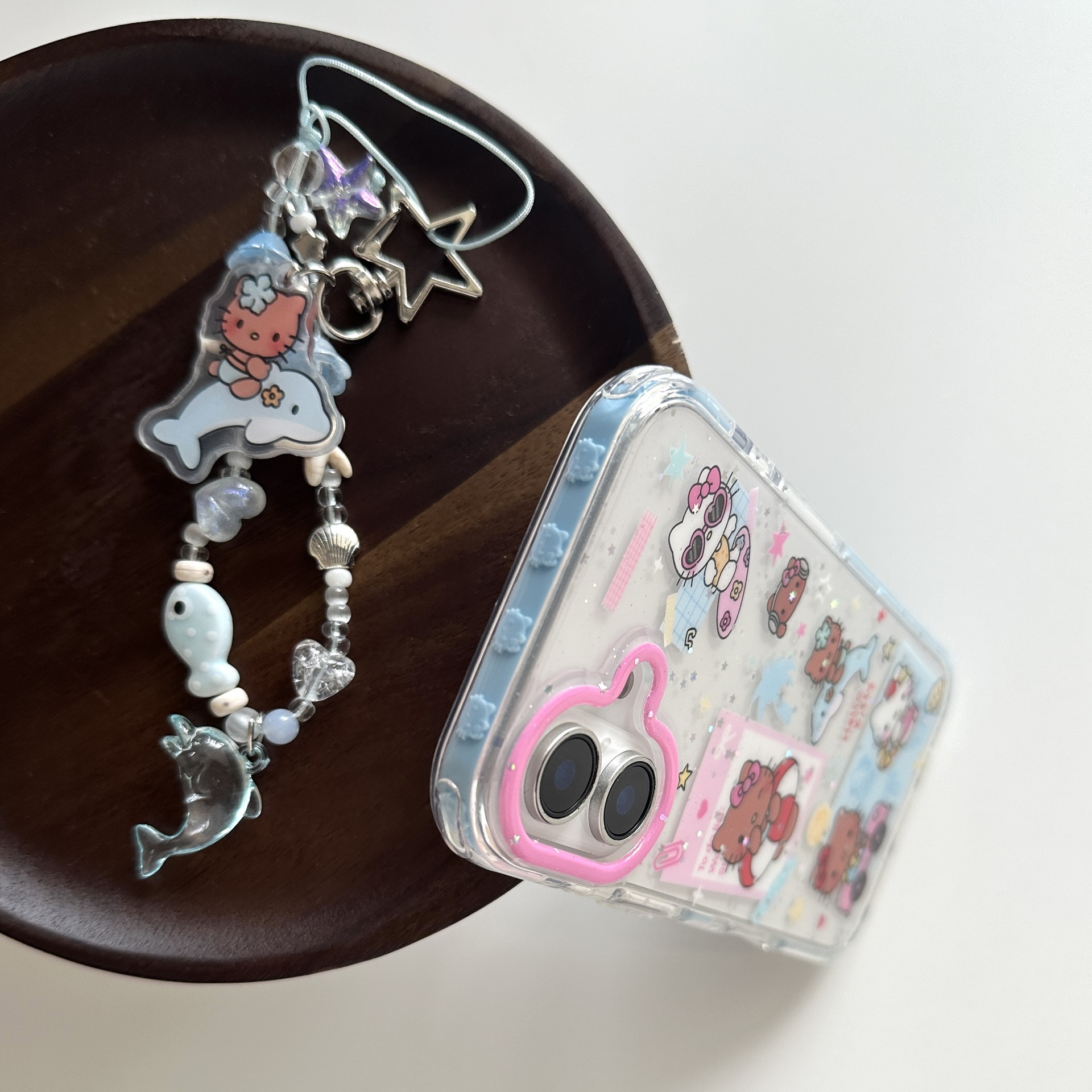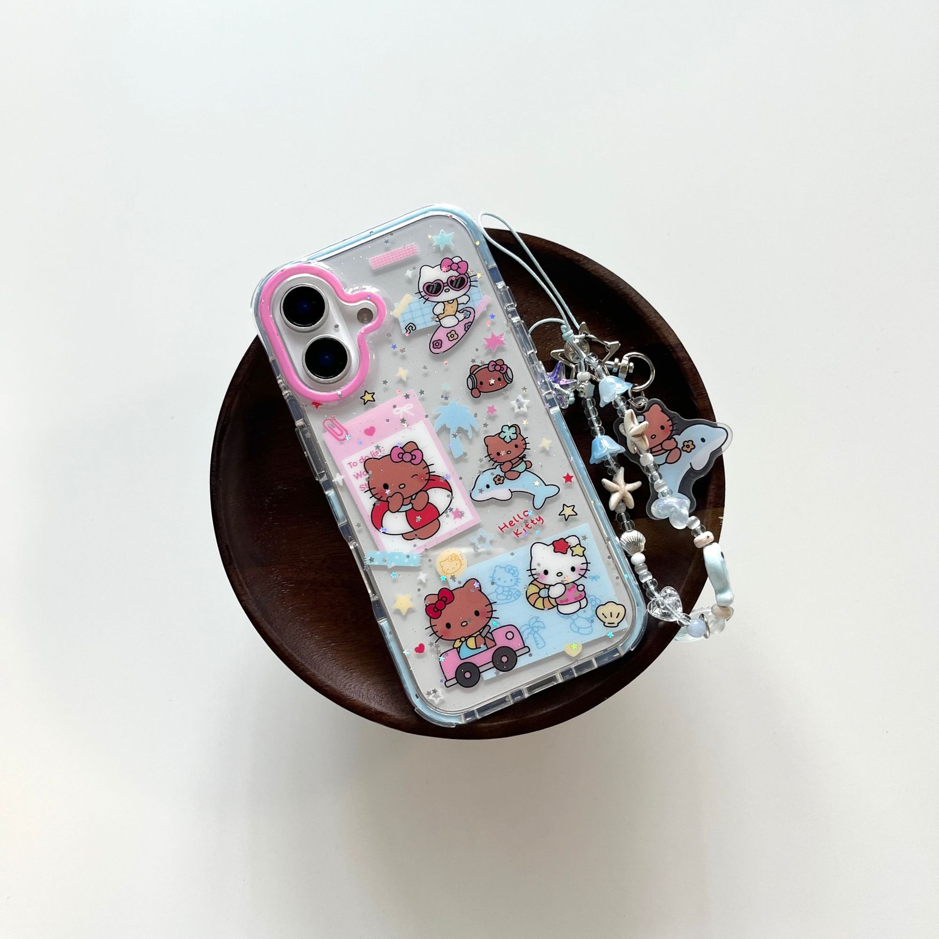 Dibujos animados coreanos piel negra KT gato para Apple 16ProMax funda para teléfono móvil 15Pro cadena 14/13 nicho 15PM