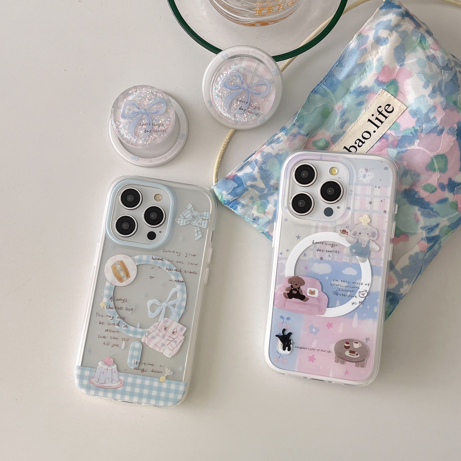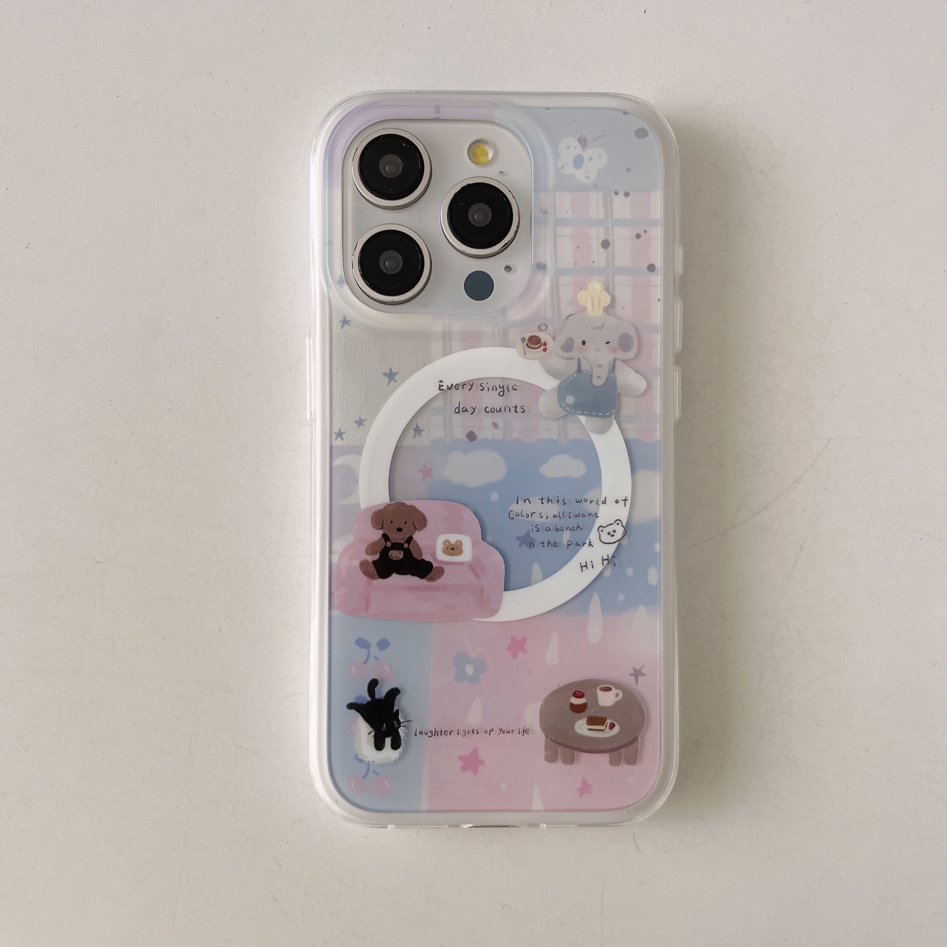Interesante costura de color bebé elefante brillo arco para Apple 15/16 funda para teléfono móvil 14 atracción magnética 13 mujer 16PM