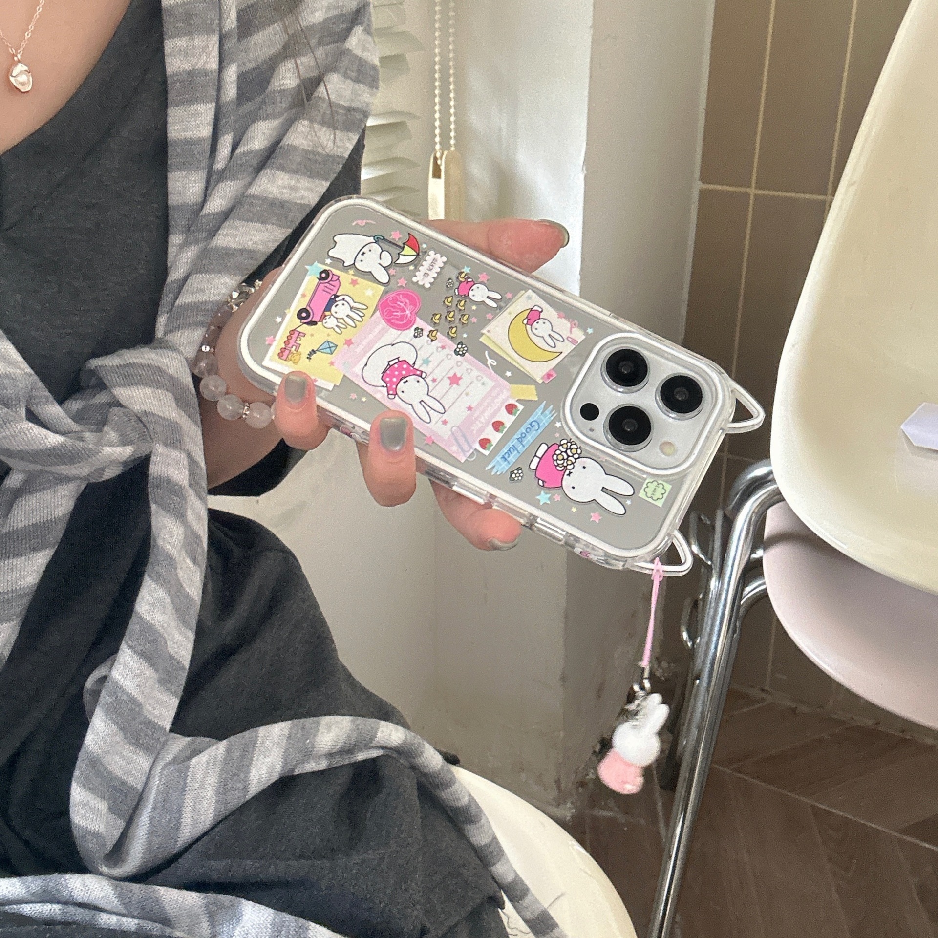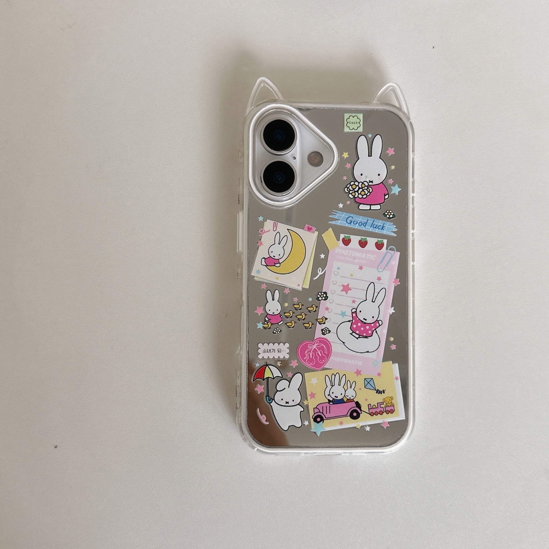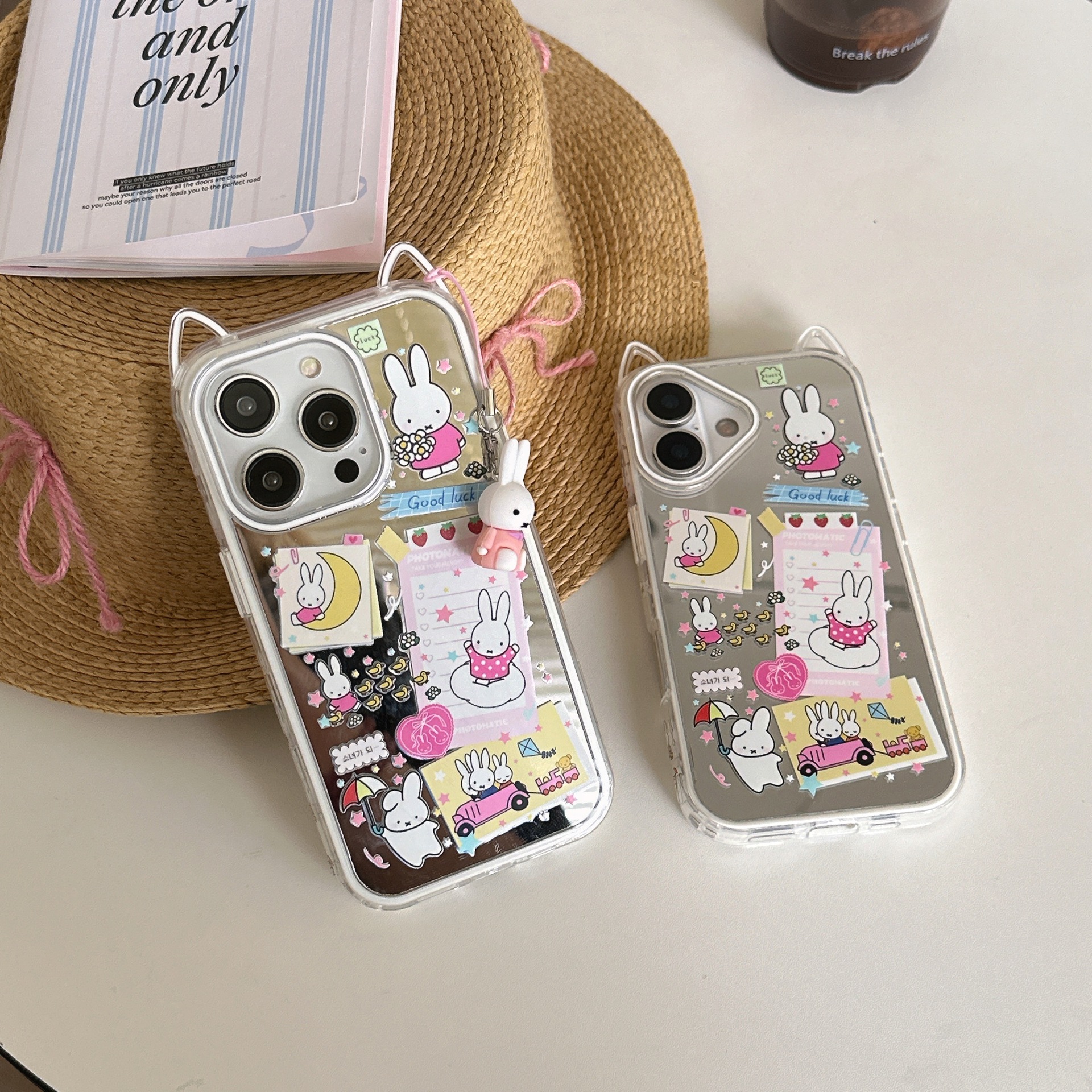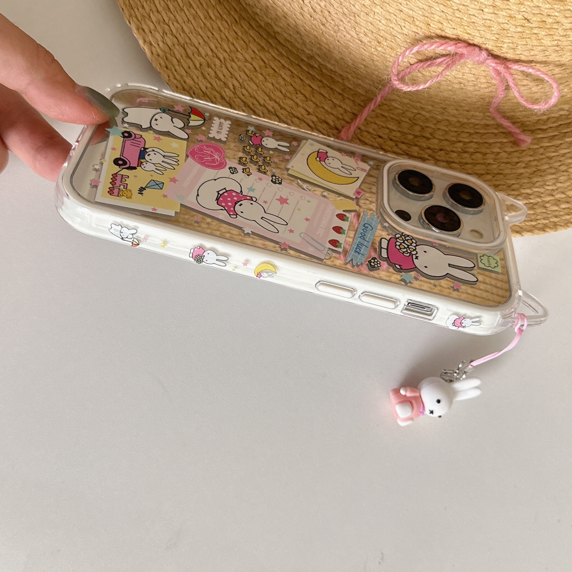 Lindo conejo de orejas de gato de dibujos animados para Apple 16ProMax funda para teléfono móvil 15/14 colgante 13 nuevo 15PM