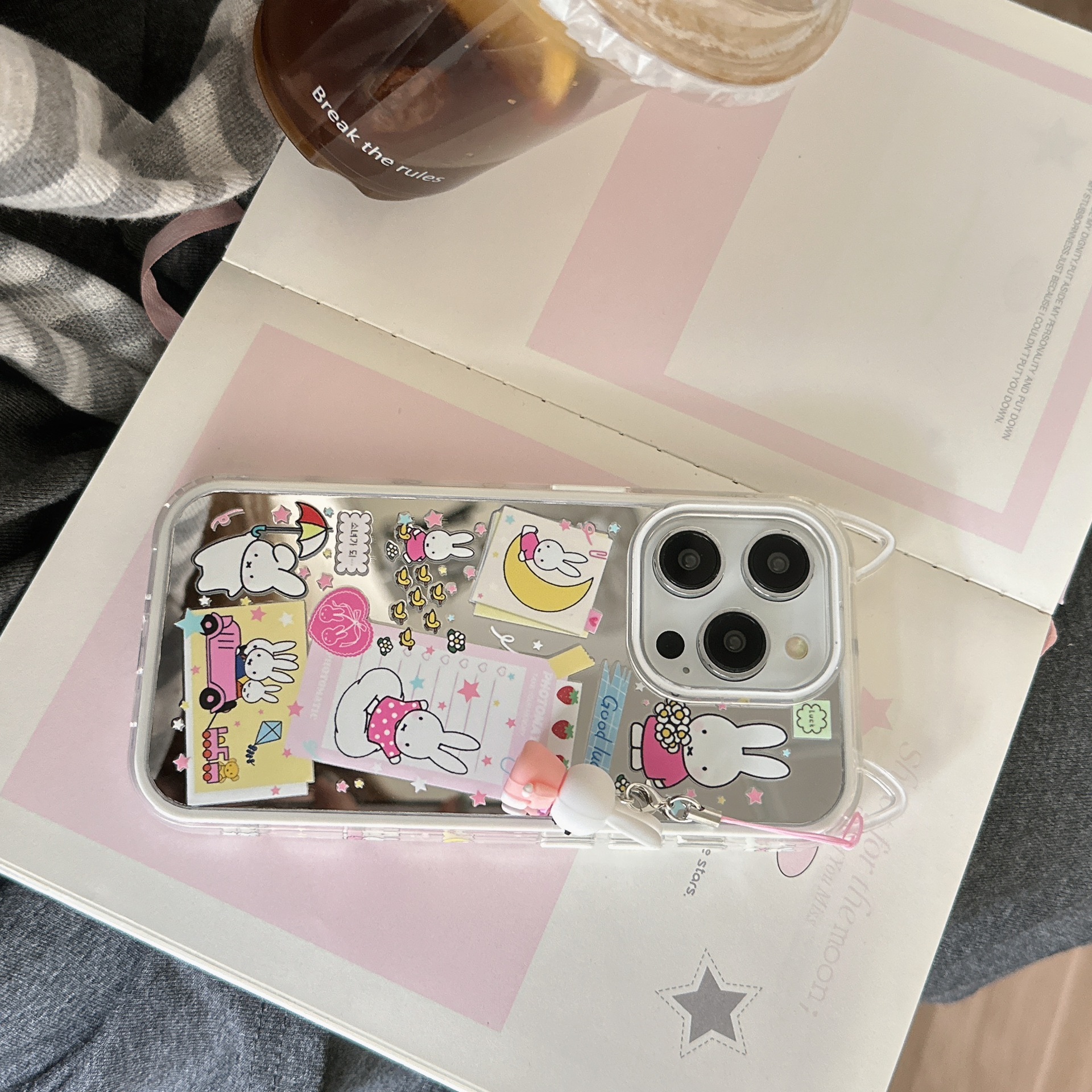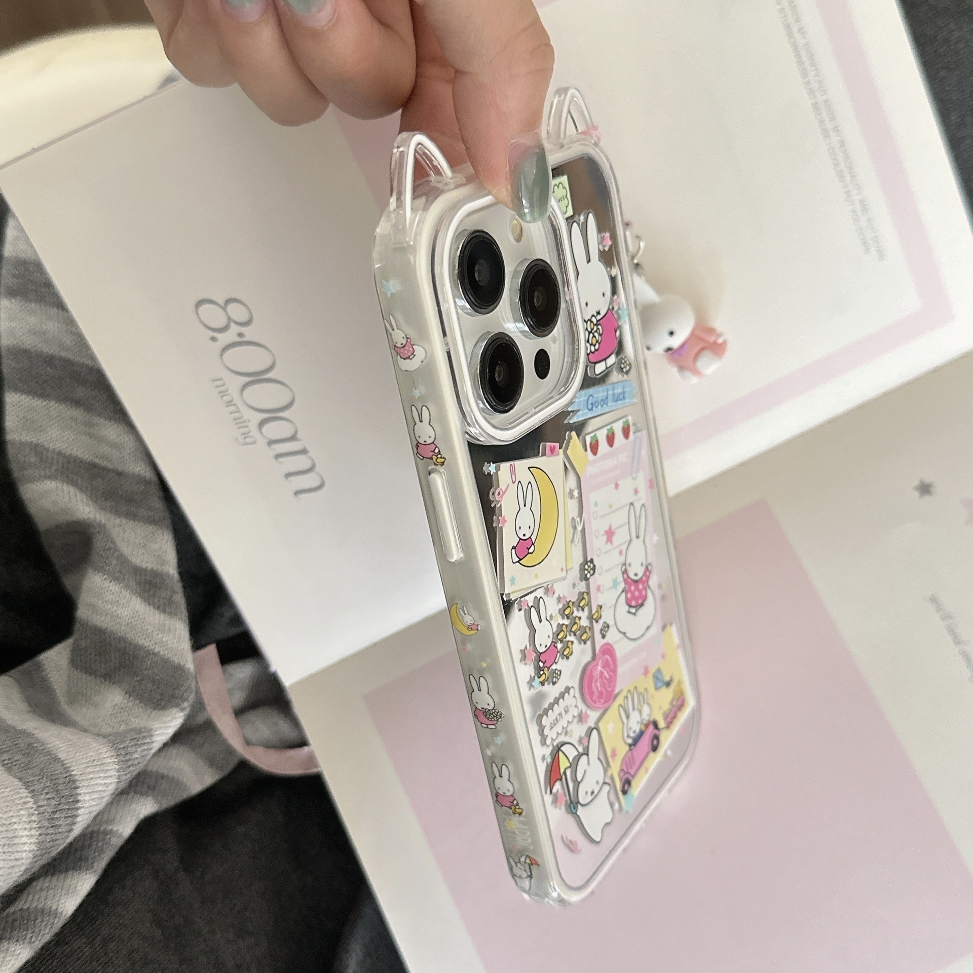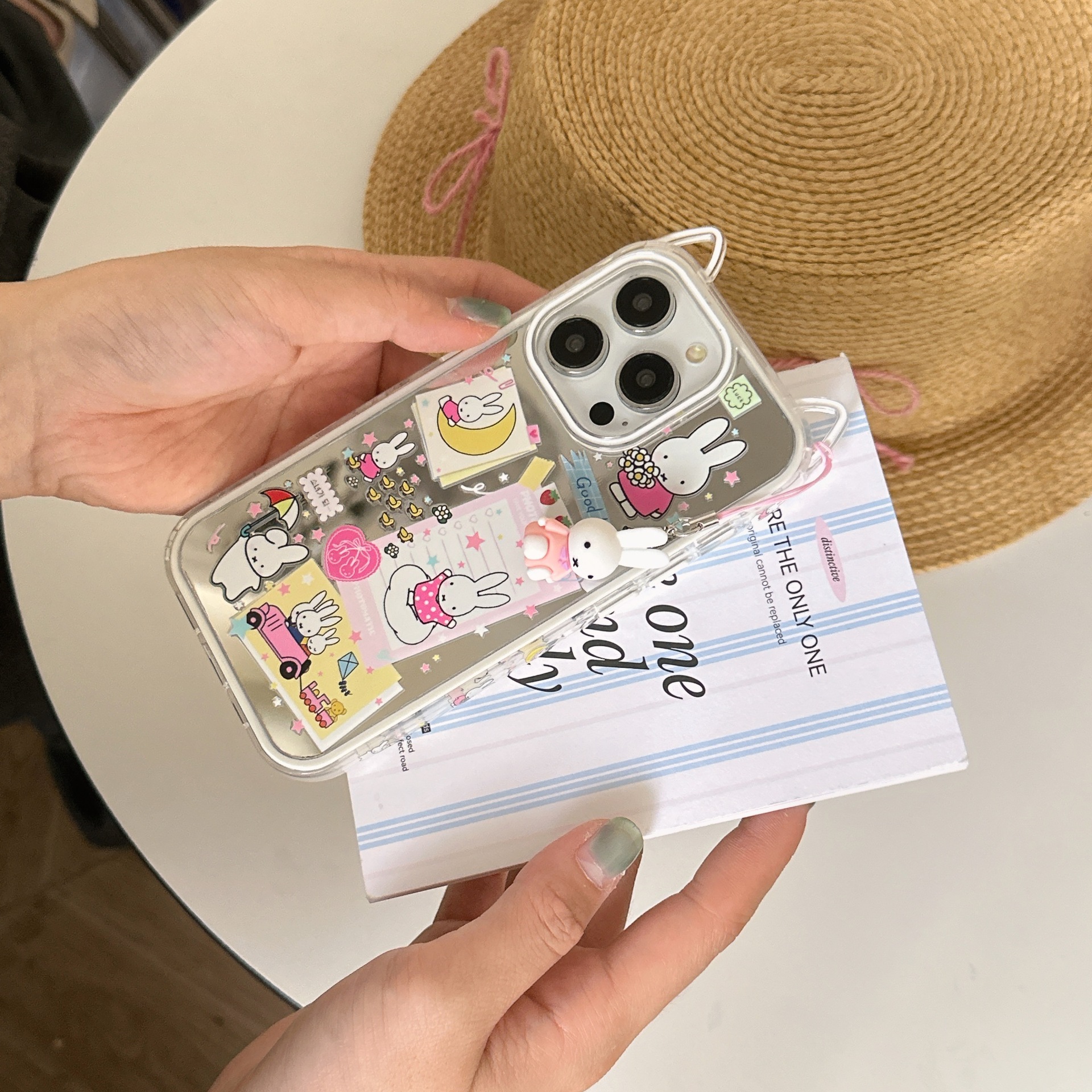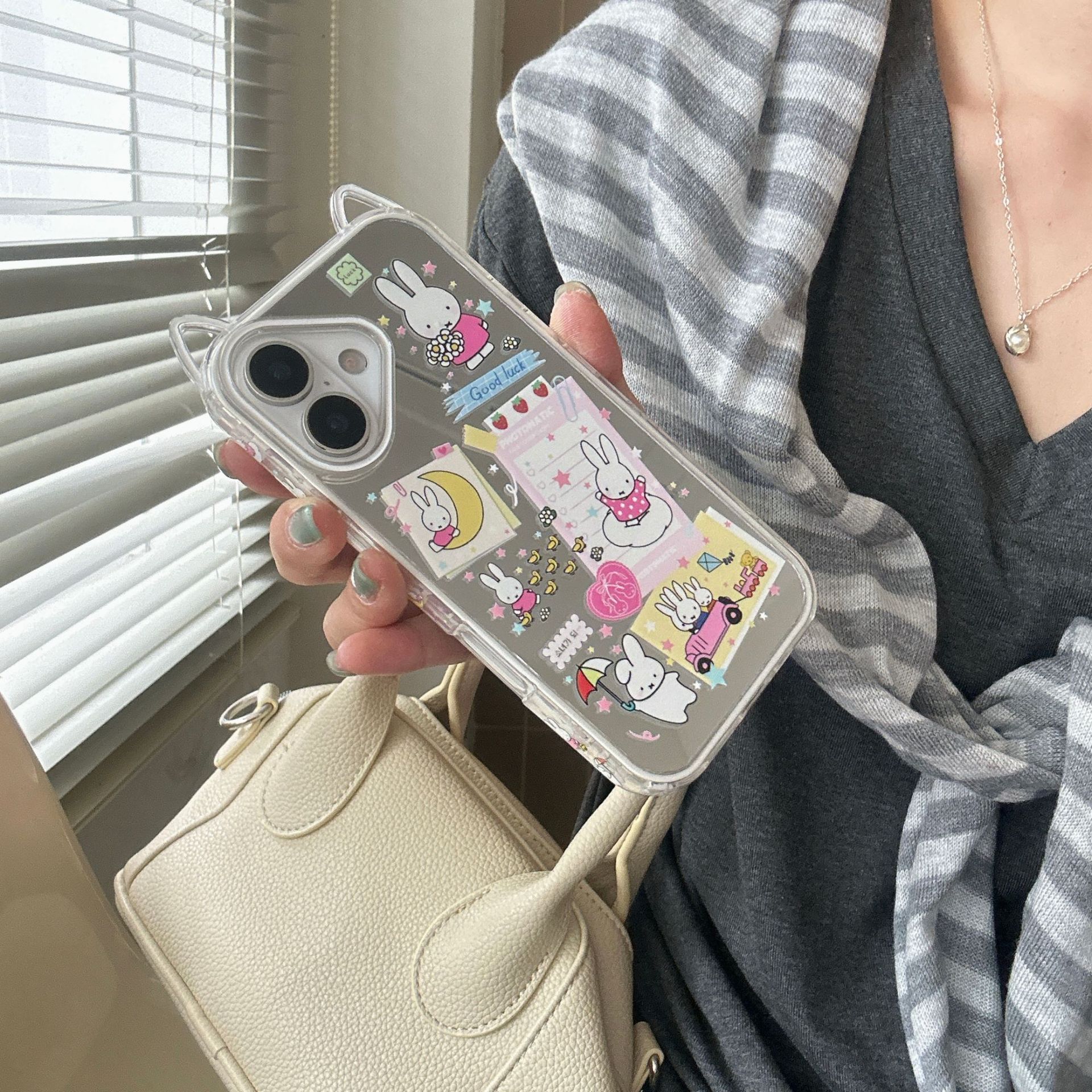 Lindo conejo de orejas de gato de dibujos animados para Apple 16ProMax funda para teléfono móvil 15/14 colgante 13 nuevo 15PM