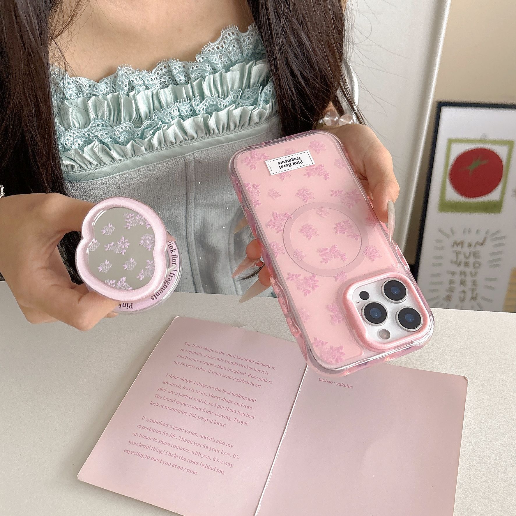 Espejo floral de nicho coreano para Apple 16ProMax funda para teléfono móvil 15Pro magnético 14/13 nuevo 16PM