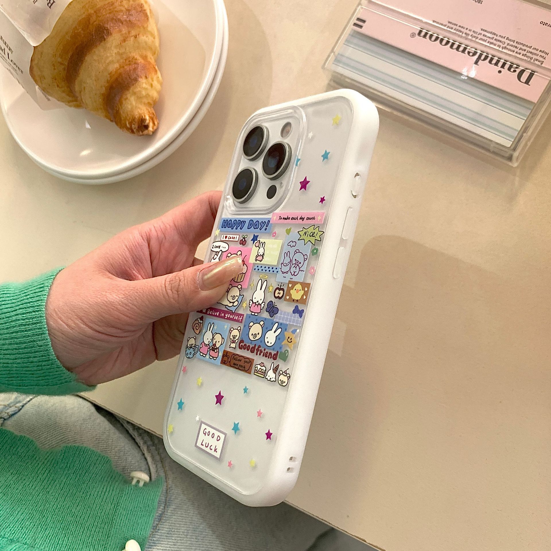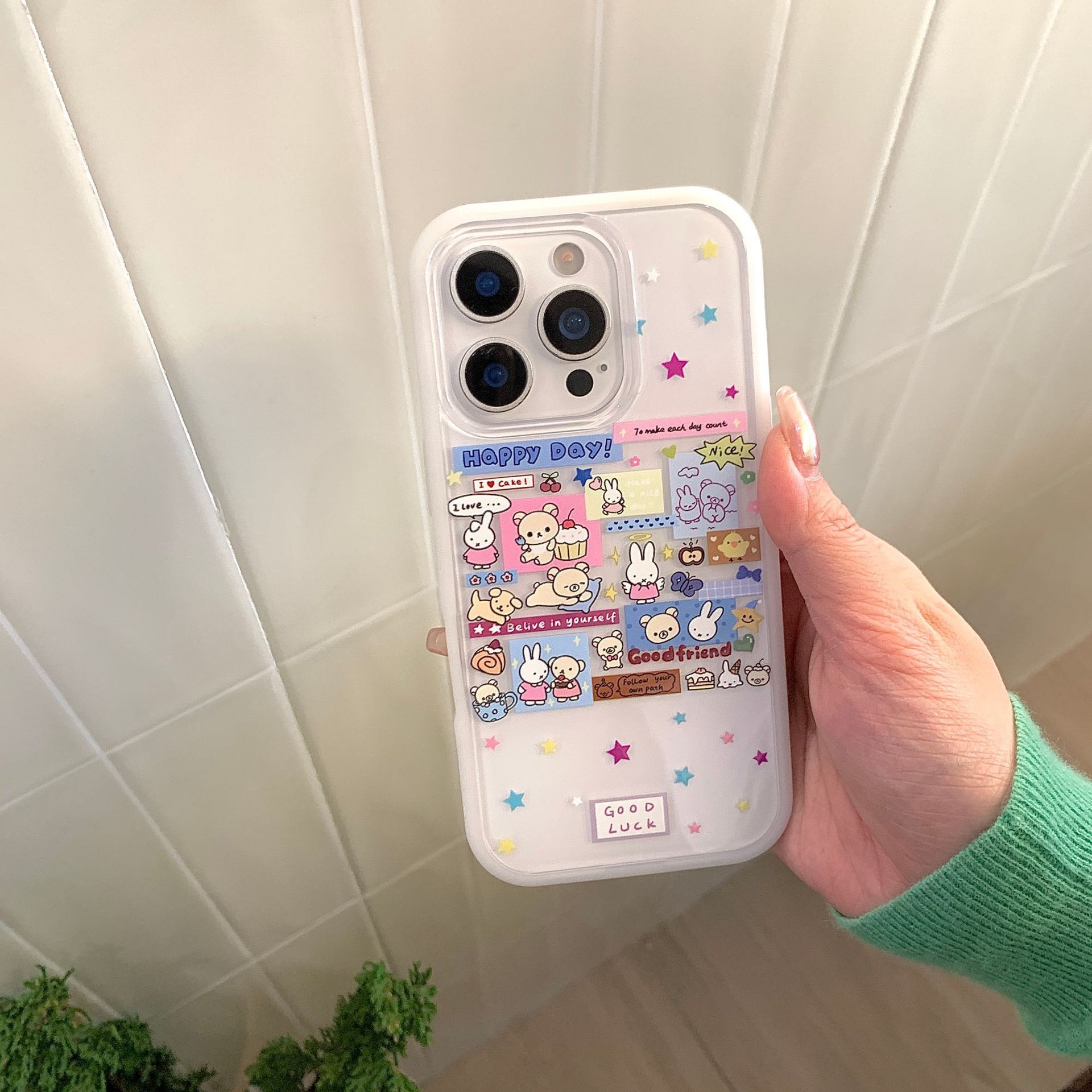 Etiqueta engomada de ilustración de dibujos animados estrella conejo para iphone16ProMax funda para teléfono móvil 14 Apple 15 mujeres 13 nuevo
