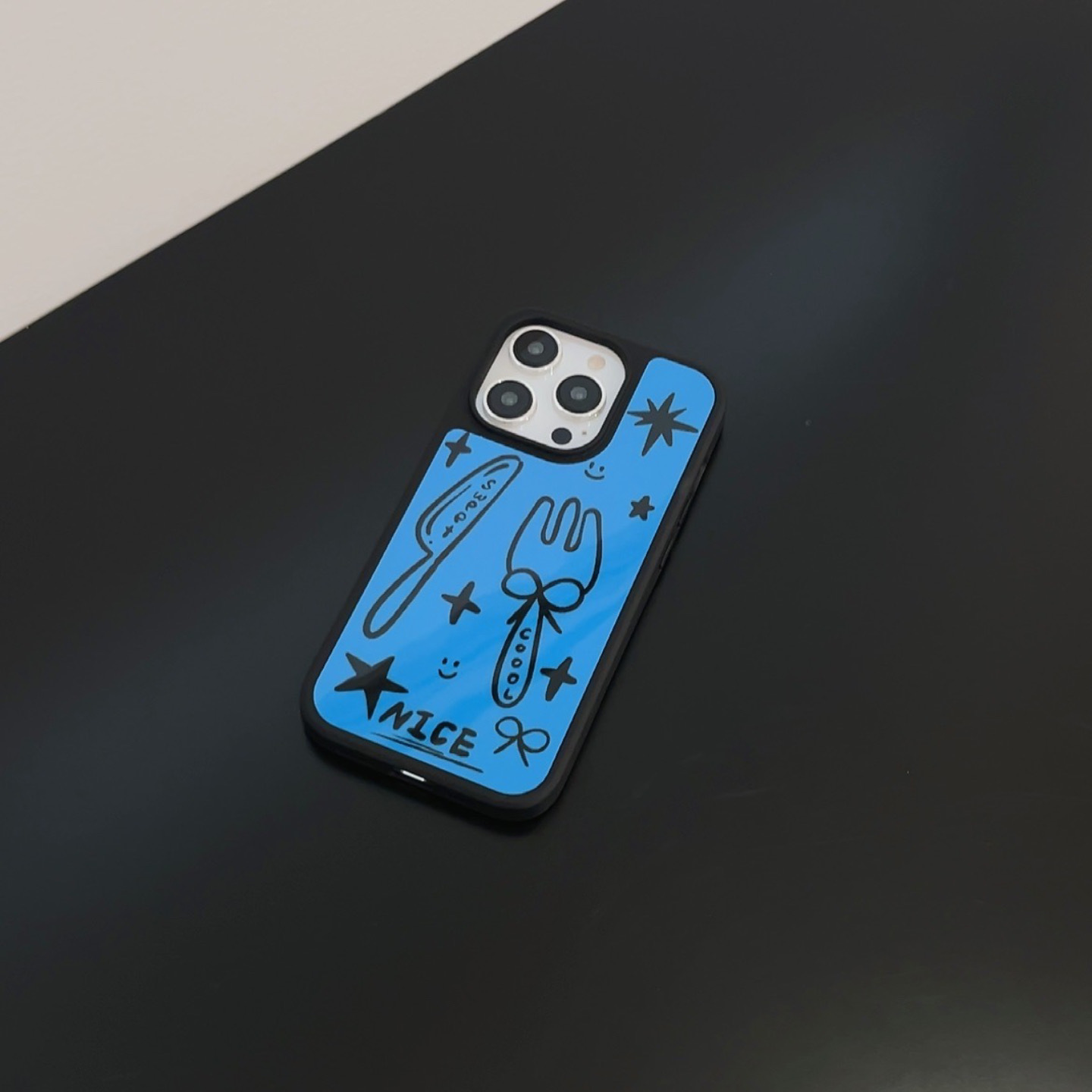Divertido dibujo de dibujos animados cuchillo y tenedor vajilla para iPhone15/16 funda para teléfono móvil 14Pro femenino 13 nuevo 16ProMax