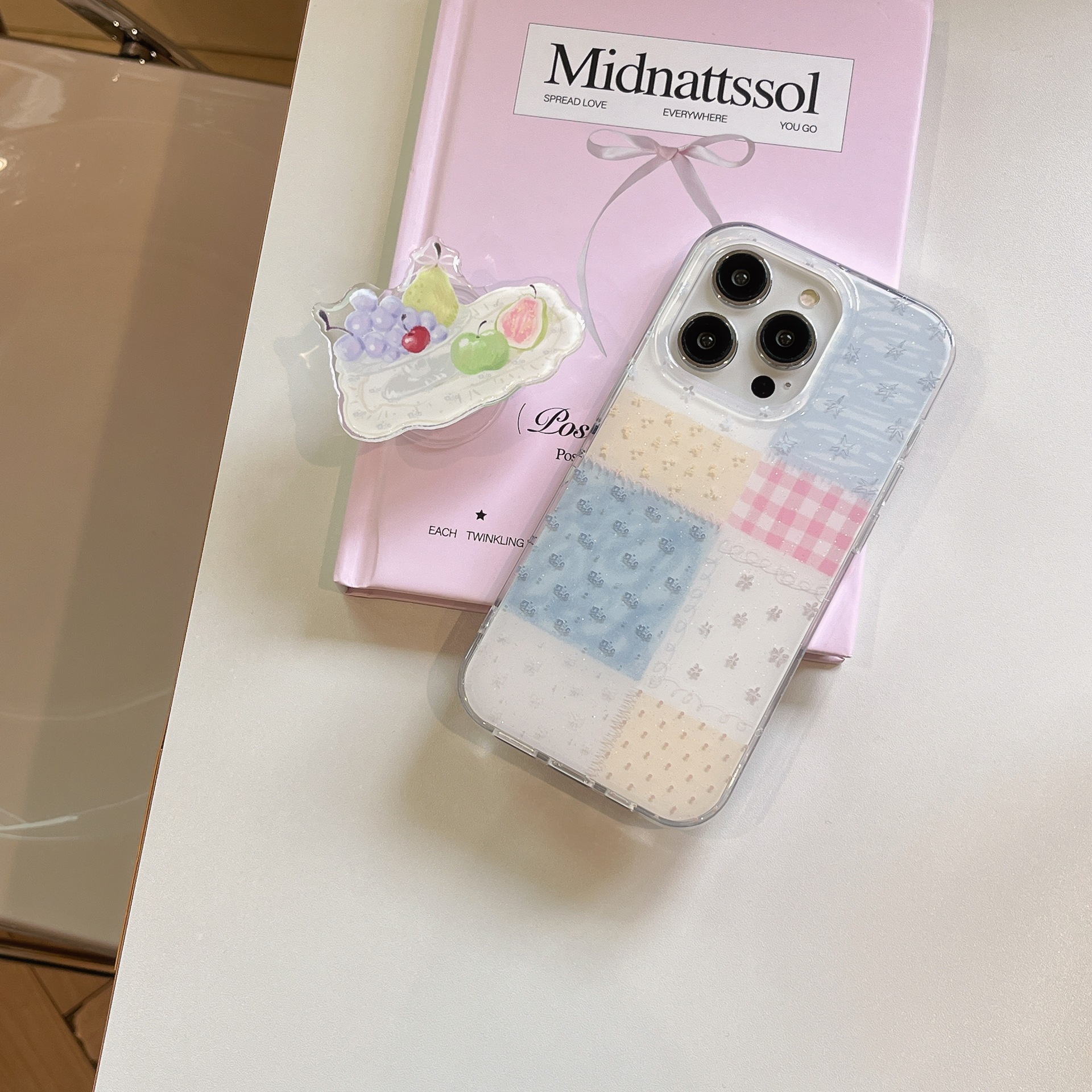Pequeña fruta a cuadros de costura fresca para iPhone15/16 funda para teléfono móvil 16proMax nicho 15Pro hembra 14