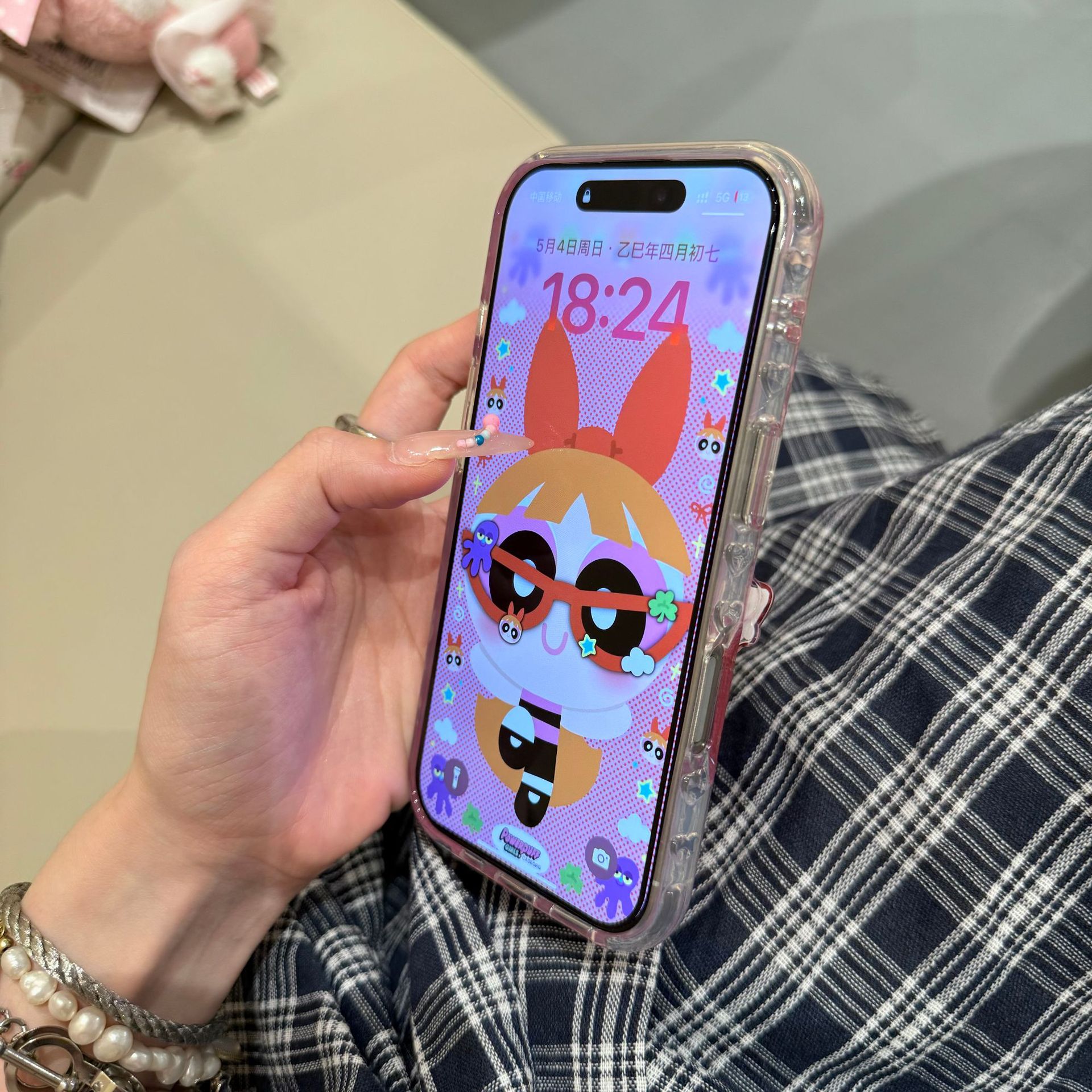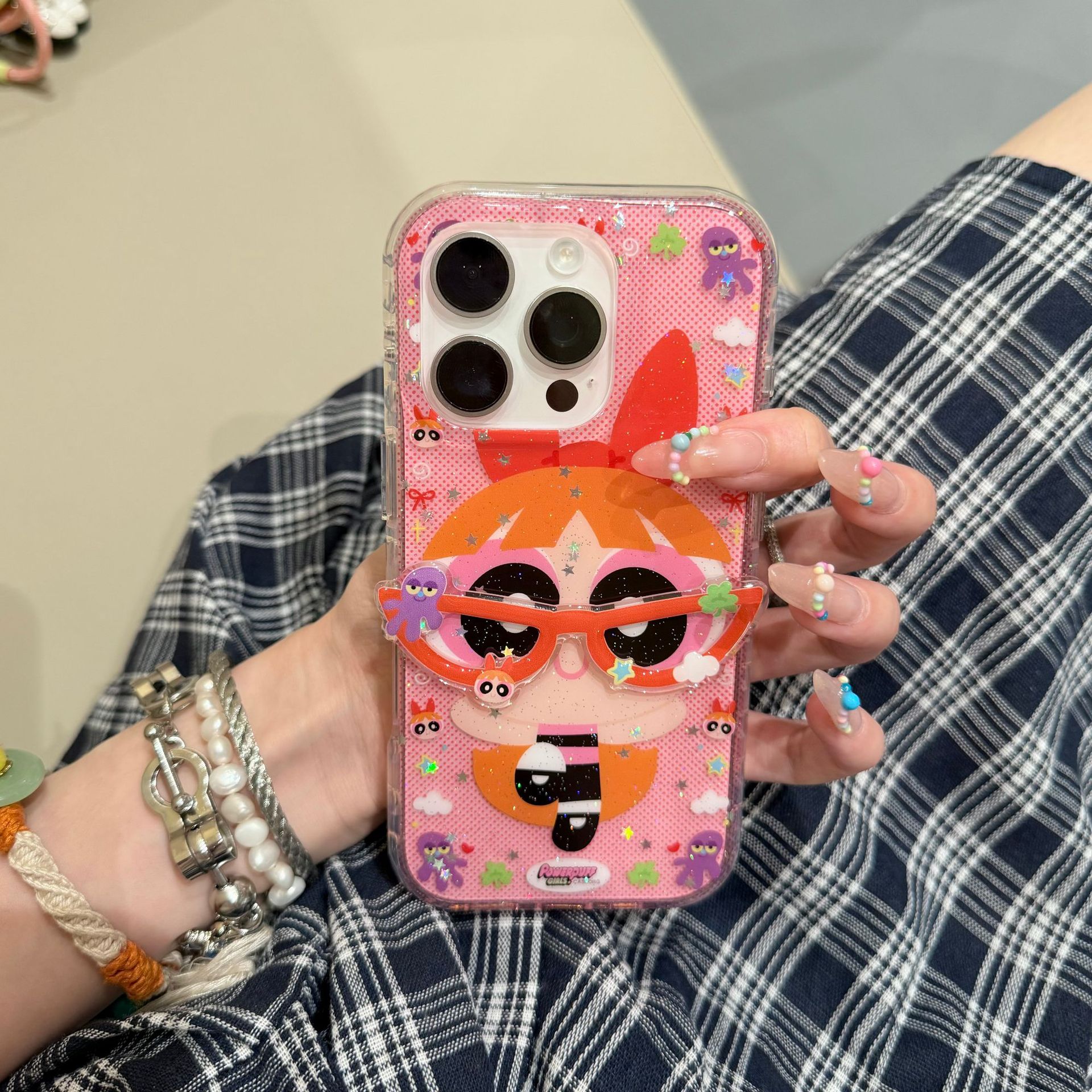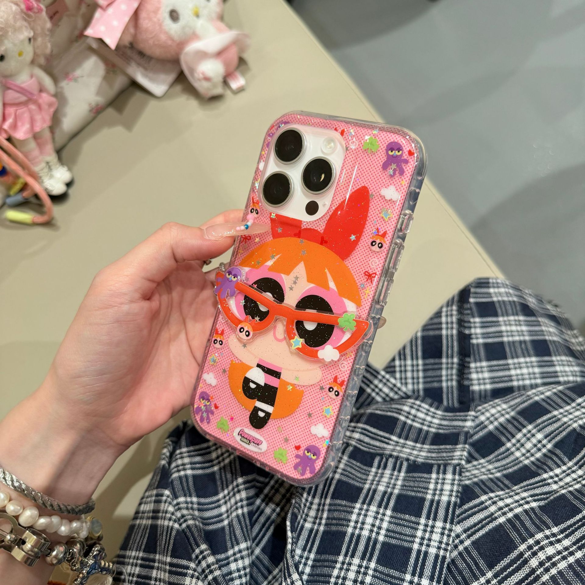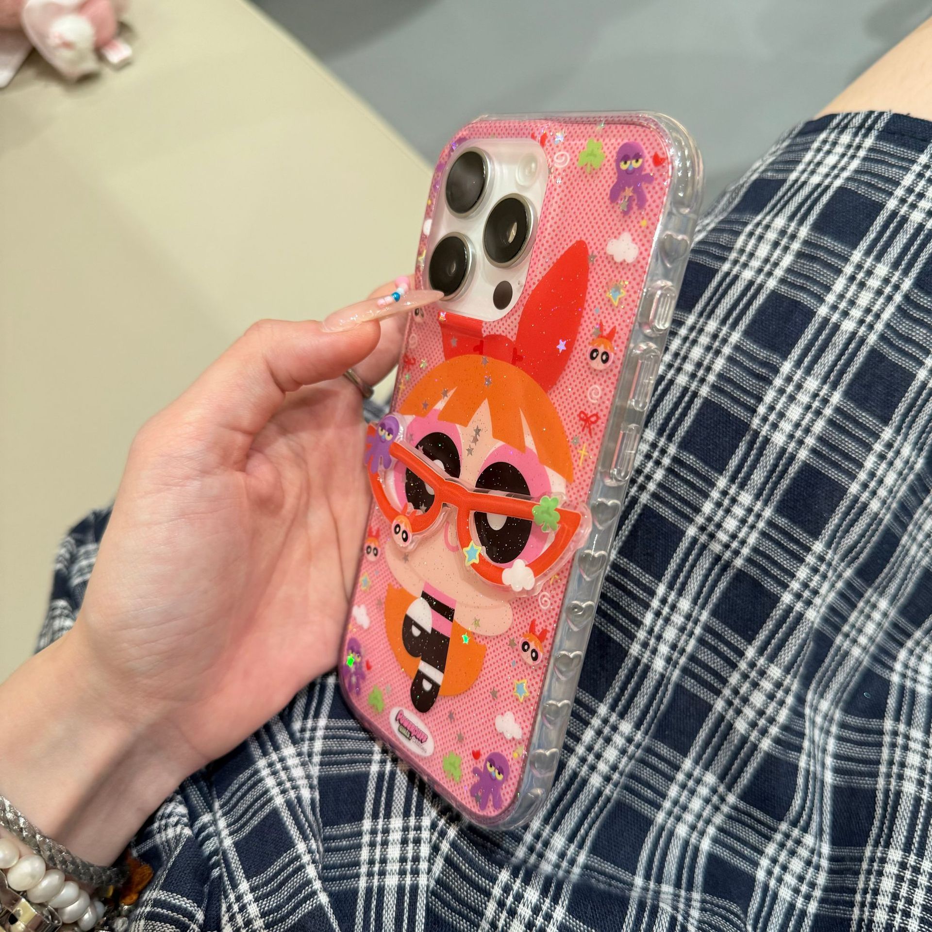 Gafas adorables para niña de dibujos animados para Apple 15Pro/16Pro funda para teléfono móvil 14ProMax estéreo 13P