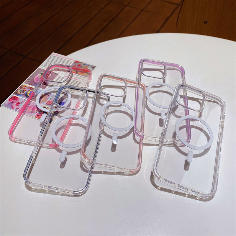 Funda de teléfono magnética transparente de color para Apple 16ProMax simple 15Pro pareja 14/13 nuevo 15PM