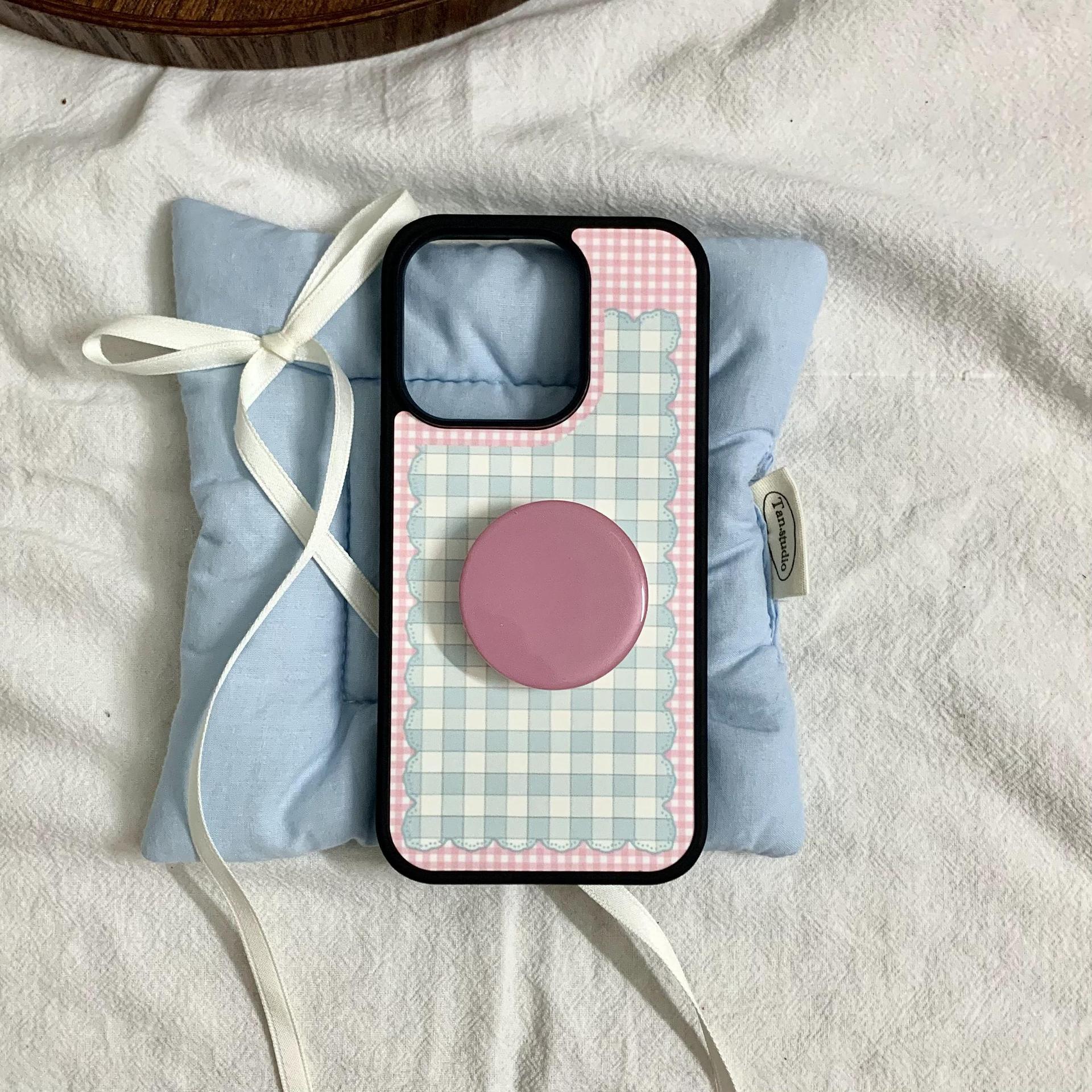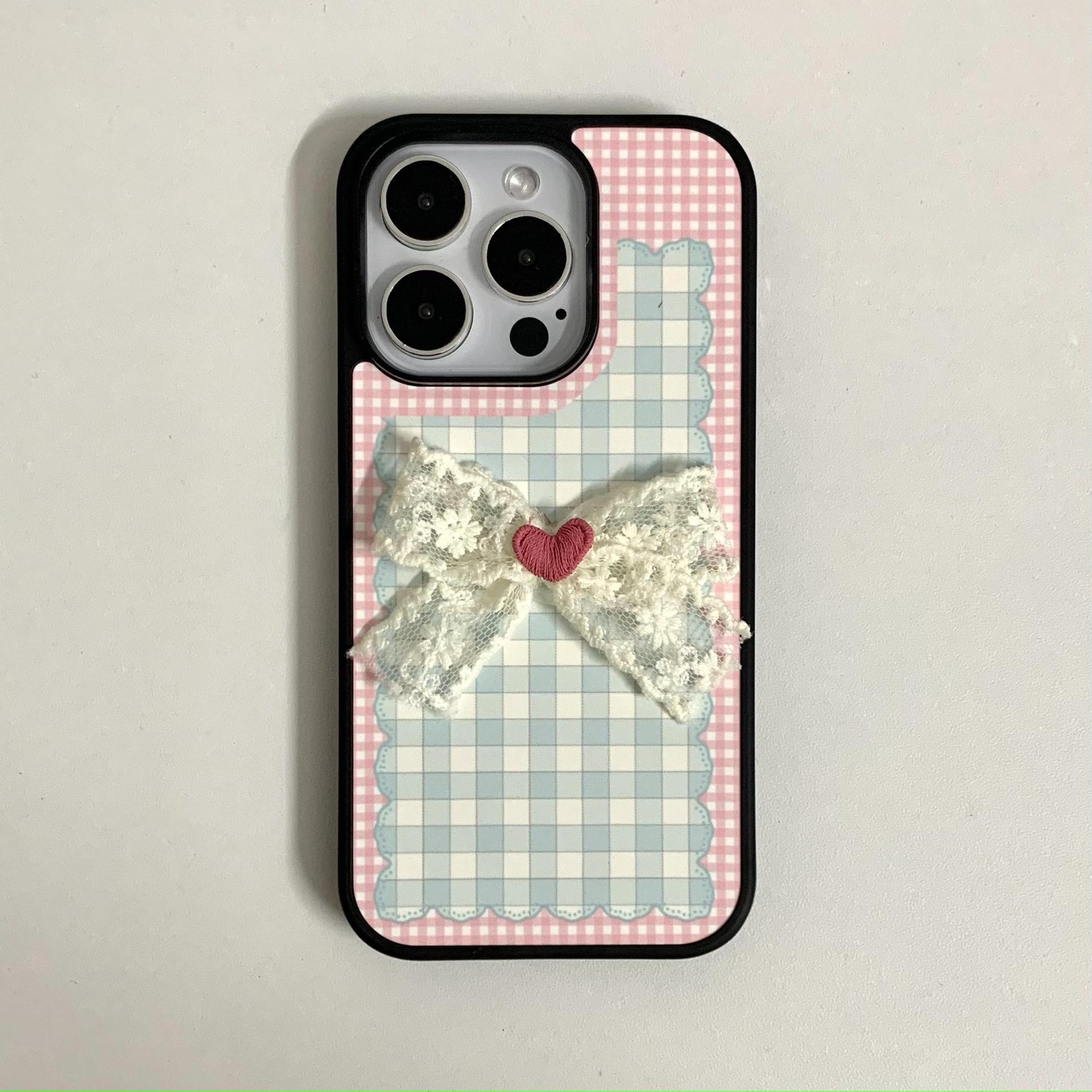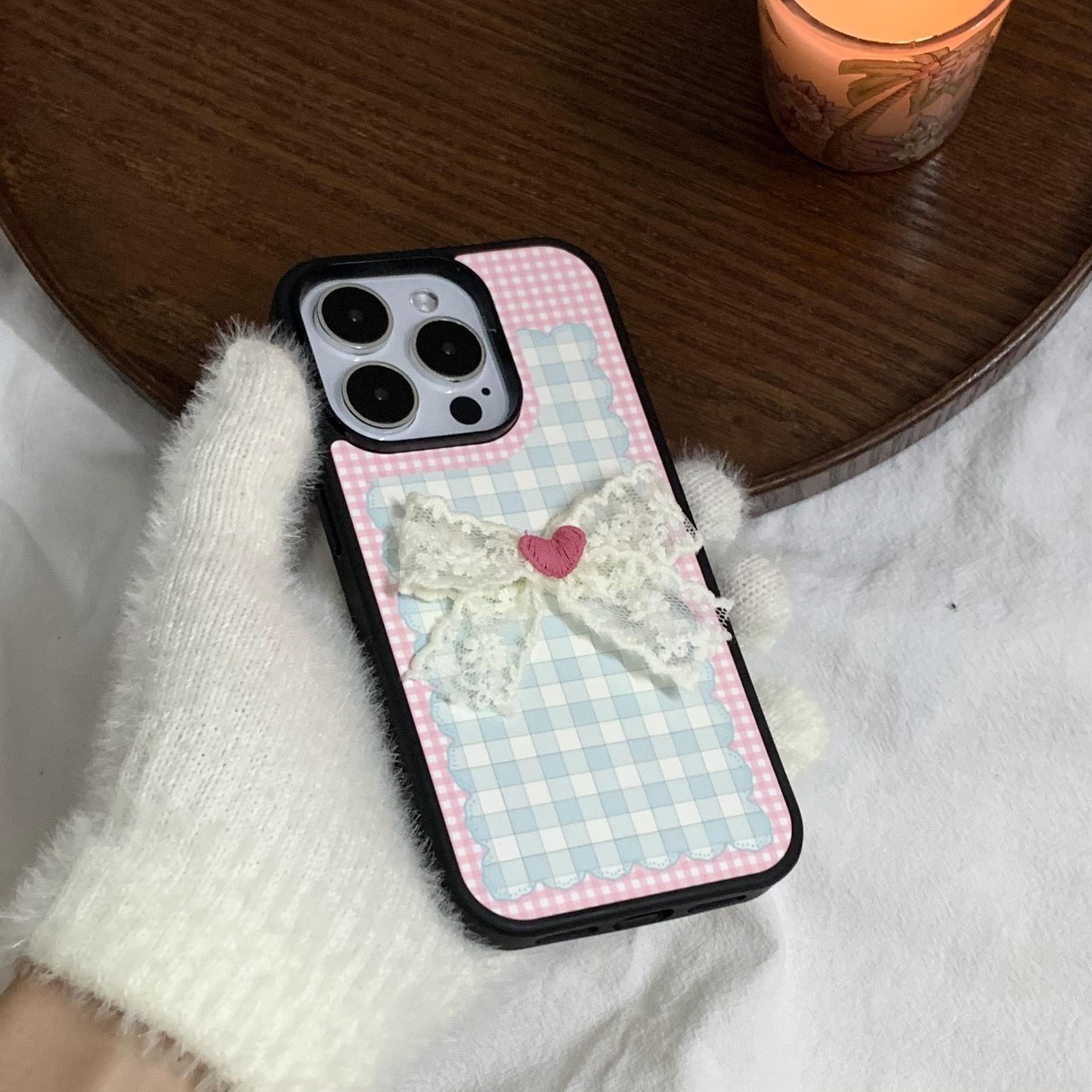 Pink girl corazón plaid lazo para Apple 16Pro pareja 15ProMax soporte 14/13 nuevo 16PM