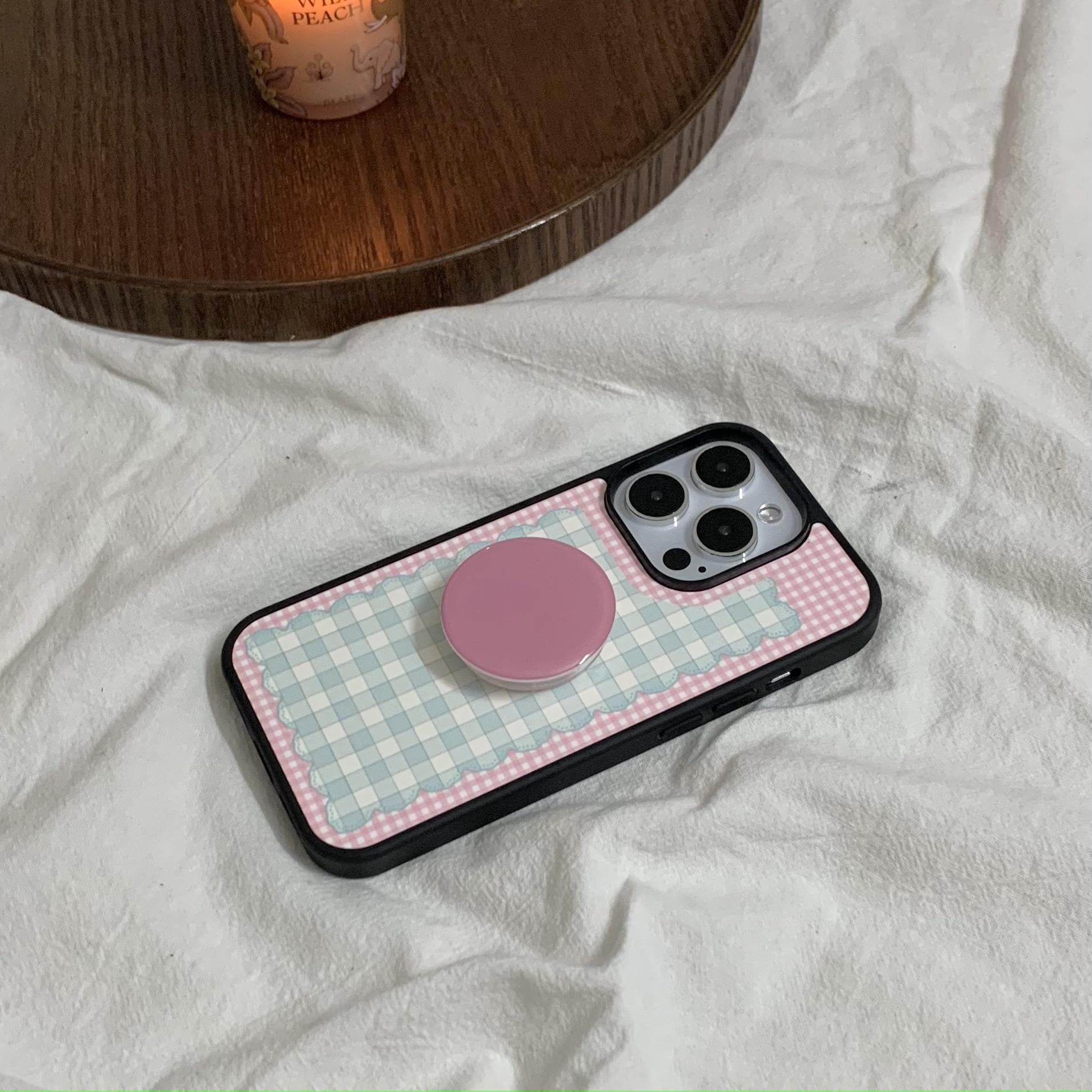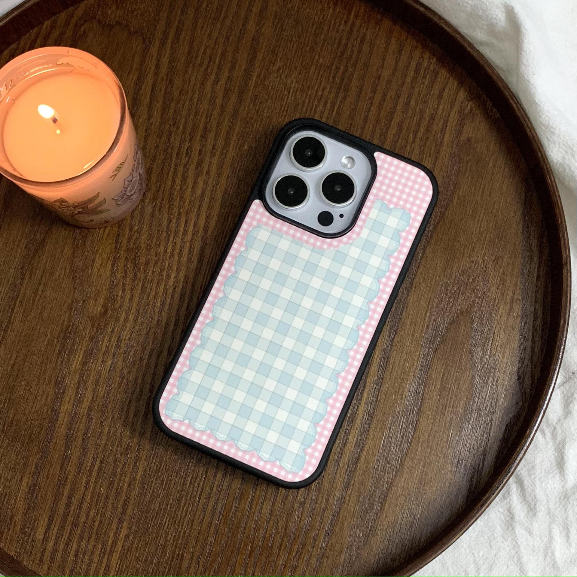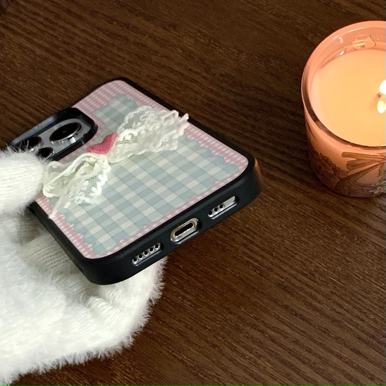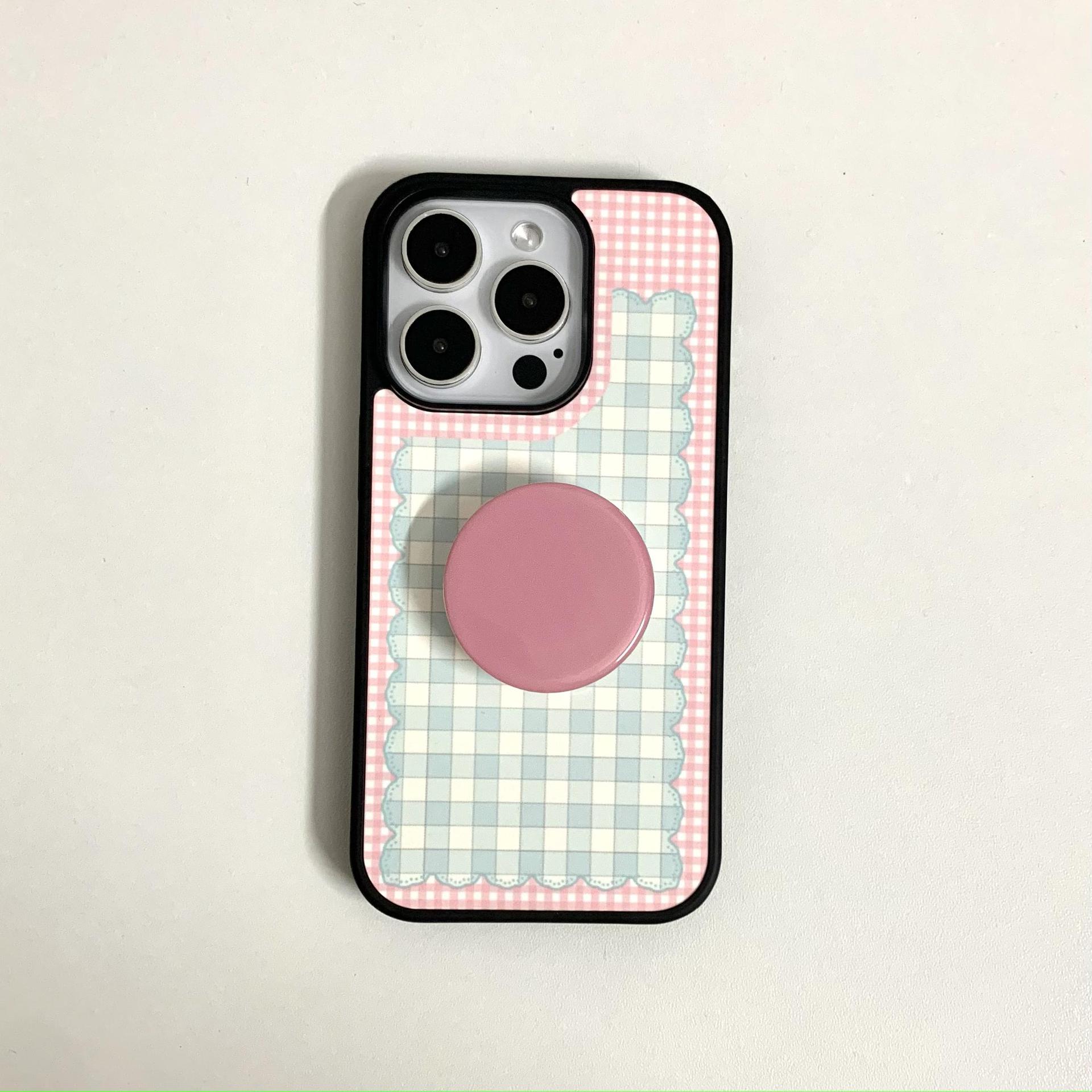 Pink girl corazón plaid lazo para Apple 16Pro pareja 15ProMax soporte 14/13 nuevo 16PM
