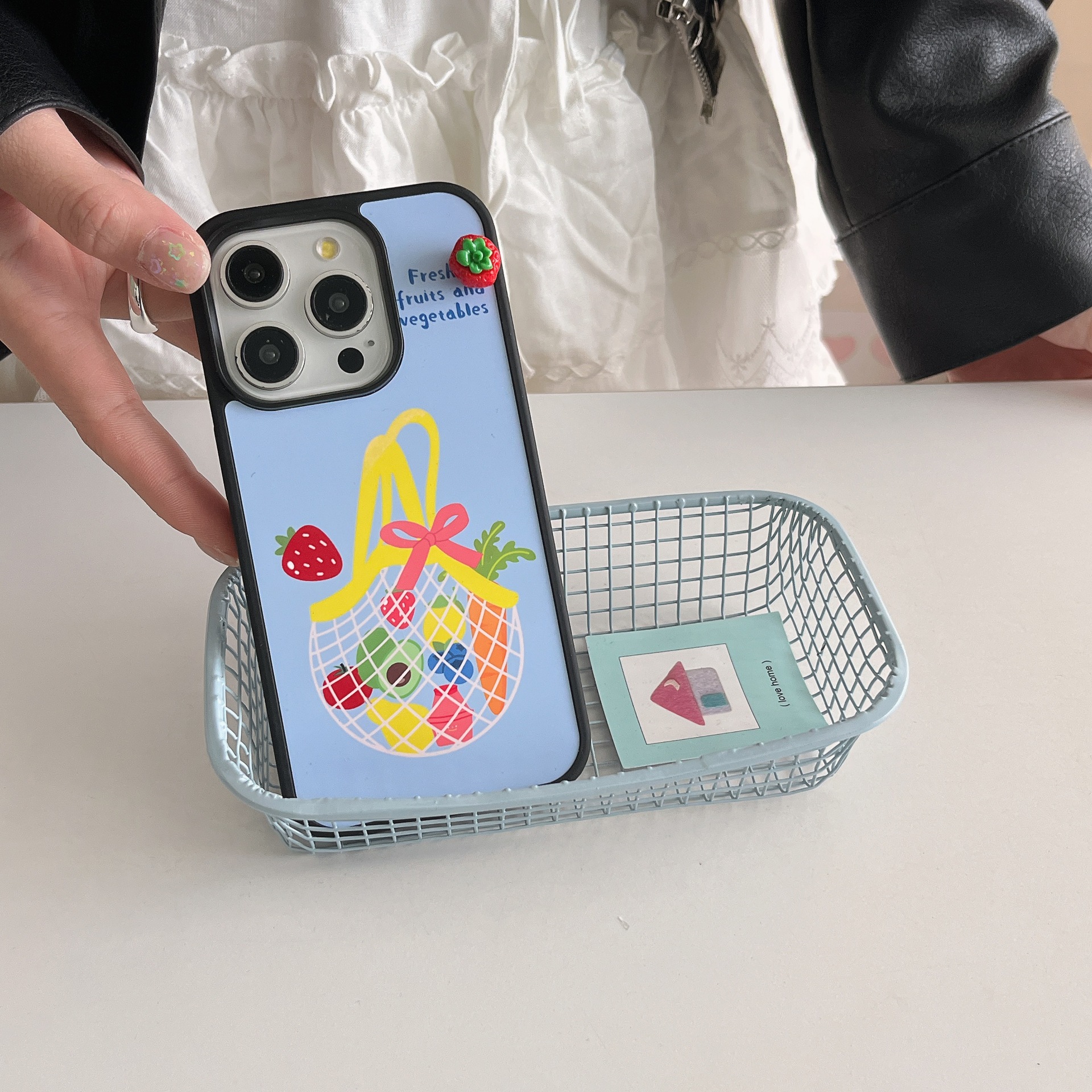 Bolsa de red de graffiti japonesa y coreana fruta para iPhone 15/16 funda para teléfono móvil 15ProMax verano 16PM mujer 14/13