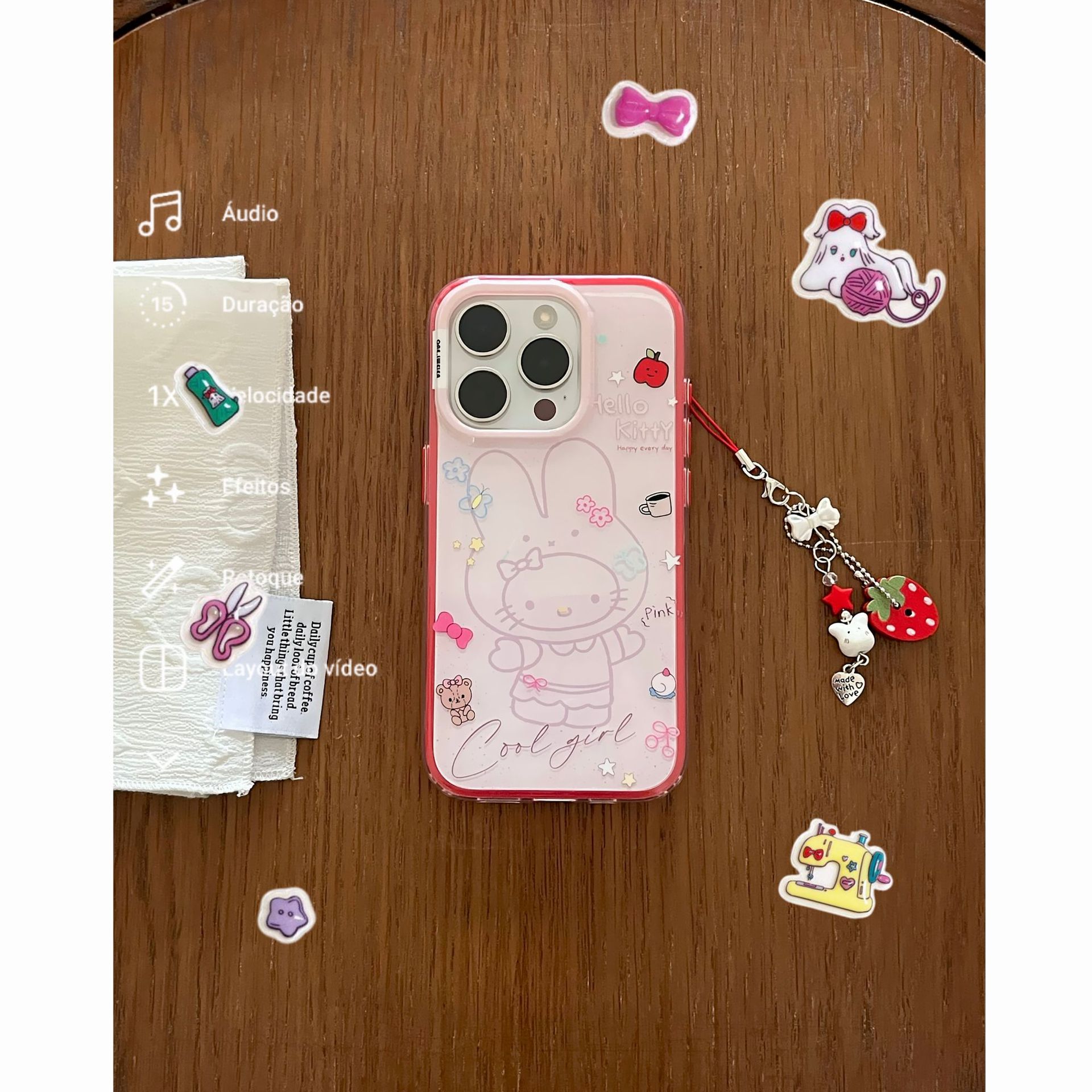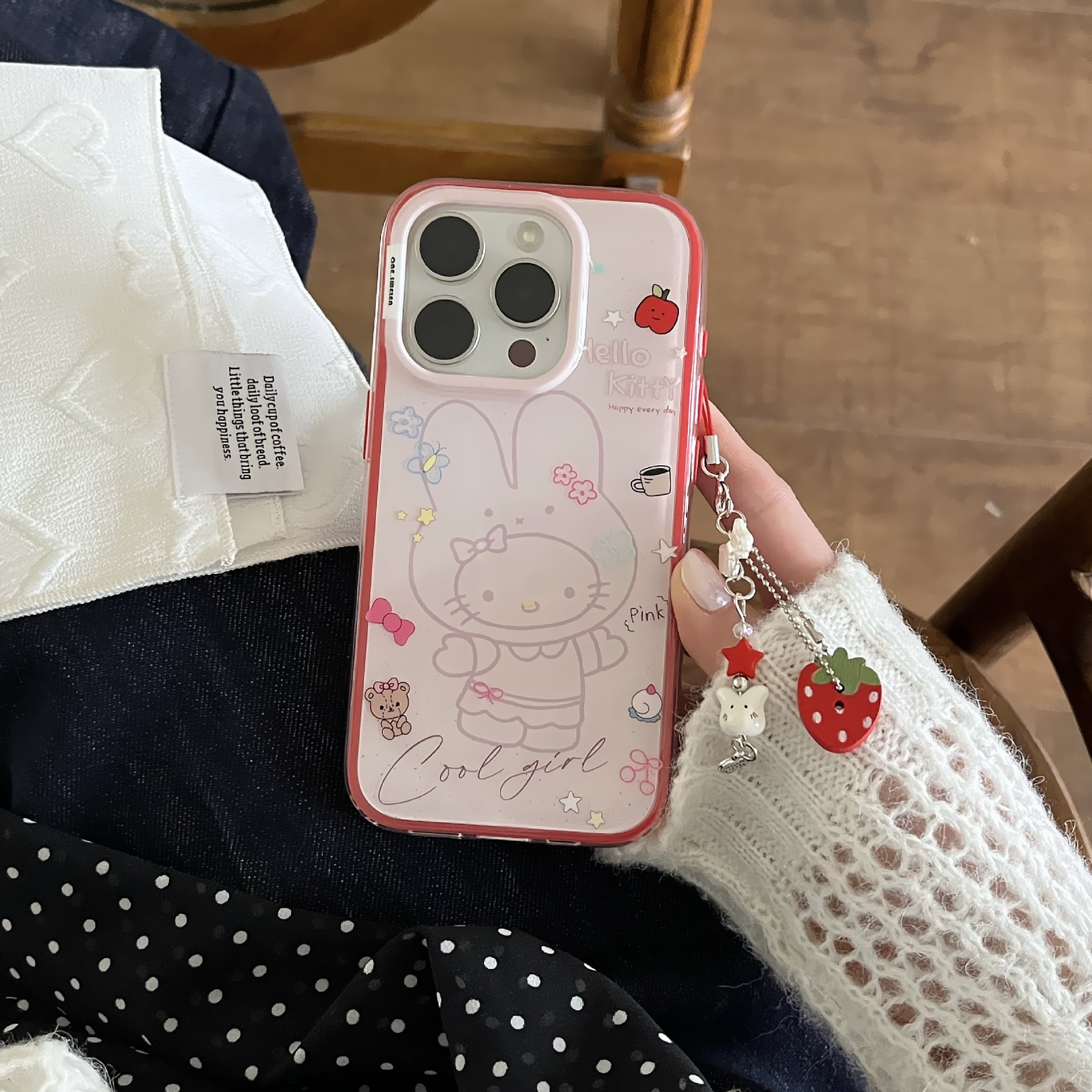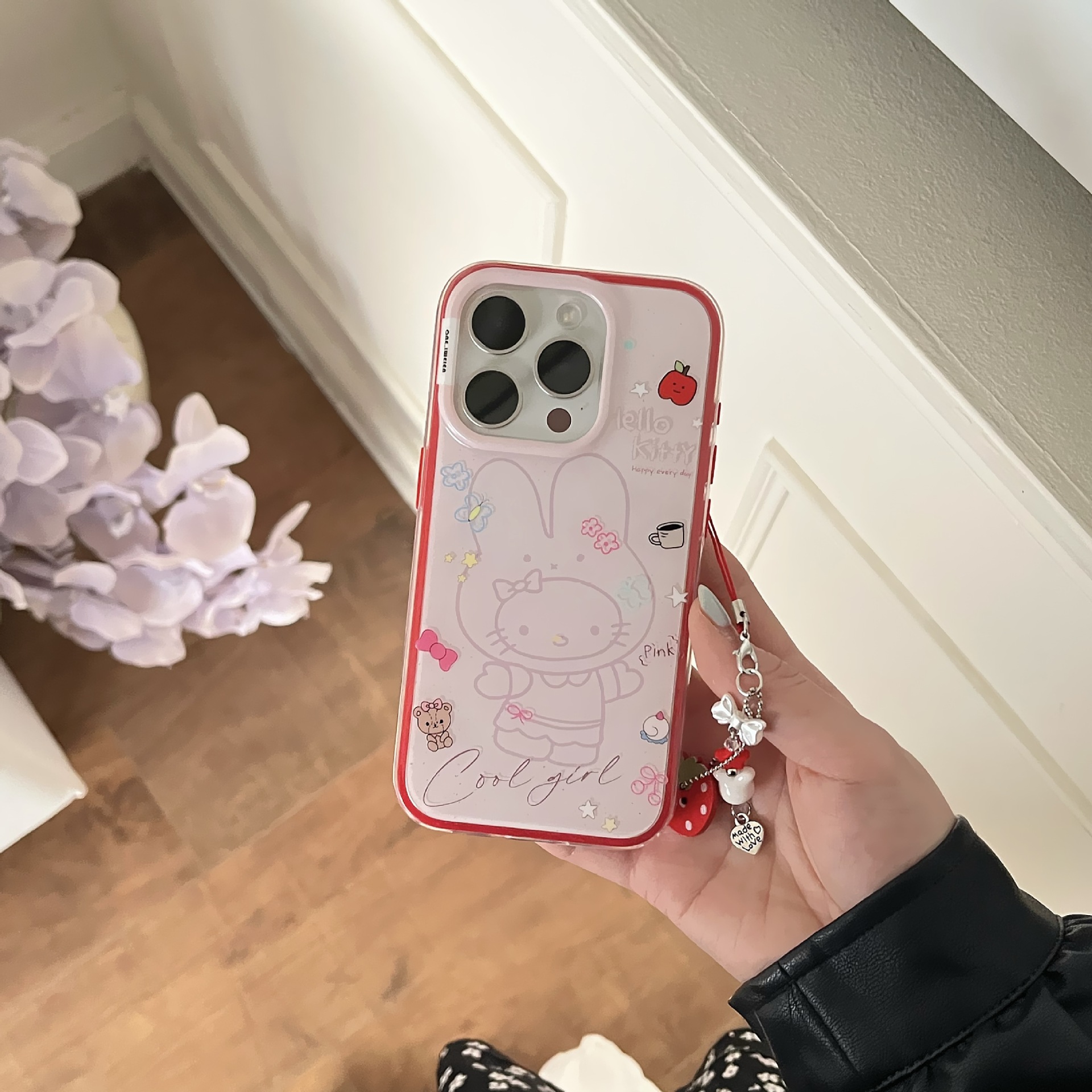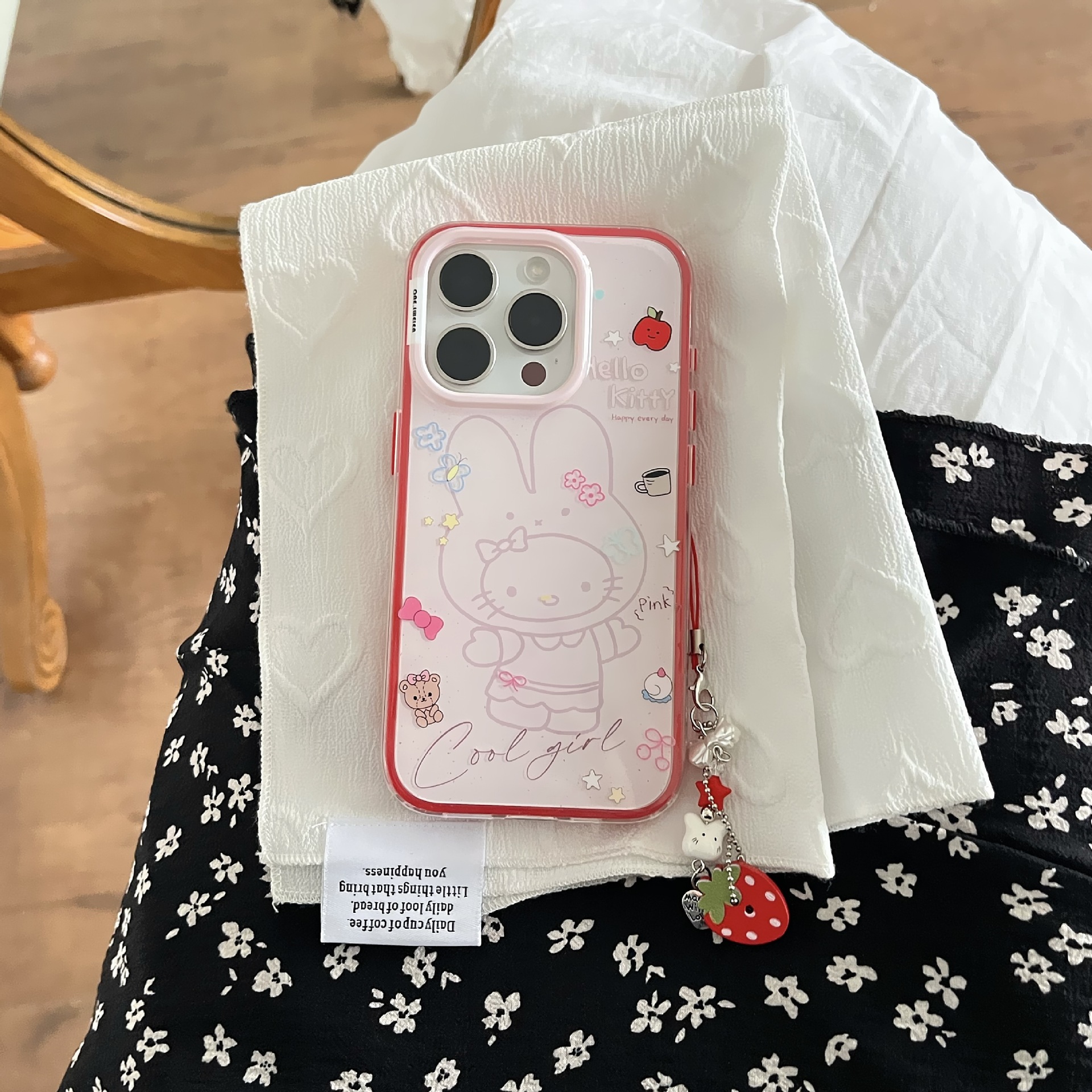 Divertido conejo de línea de corazón de niña para Apple 16Pro funda para teléfono móvil 15ProMax colgante 14/13 nuevo 16PM