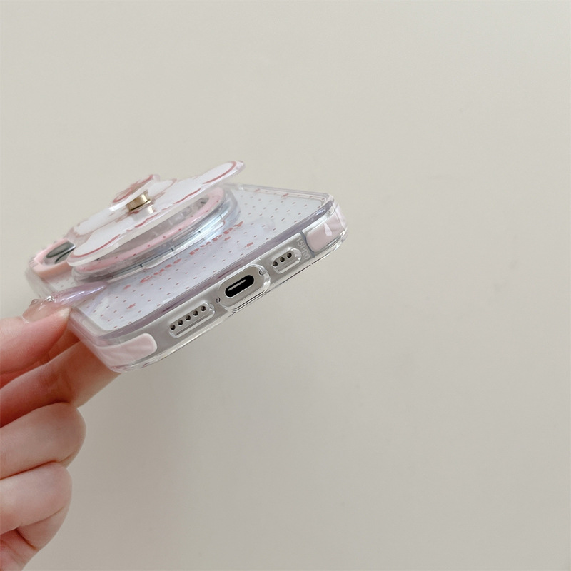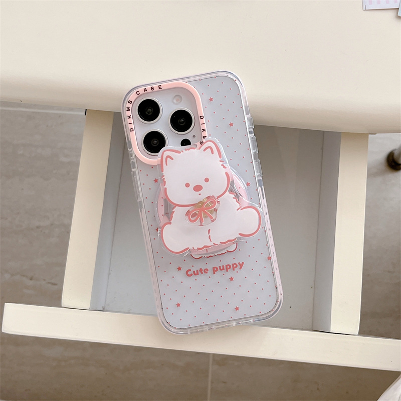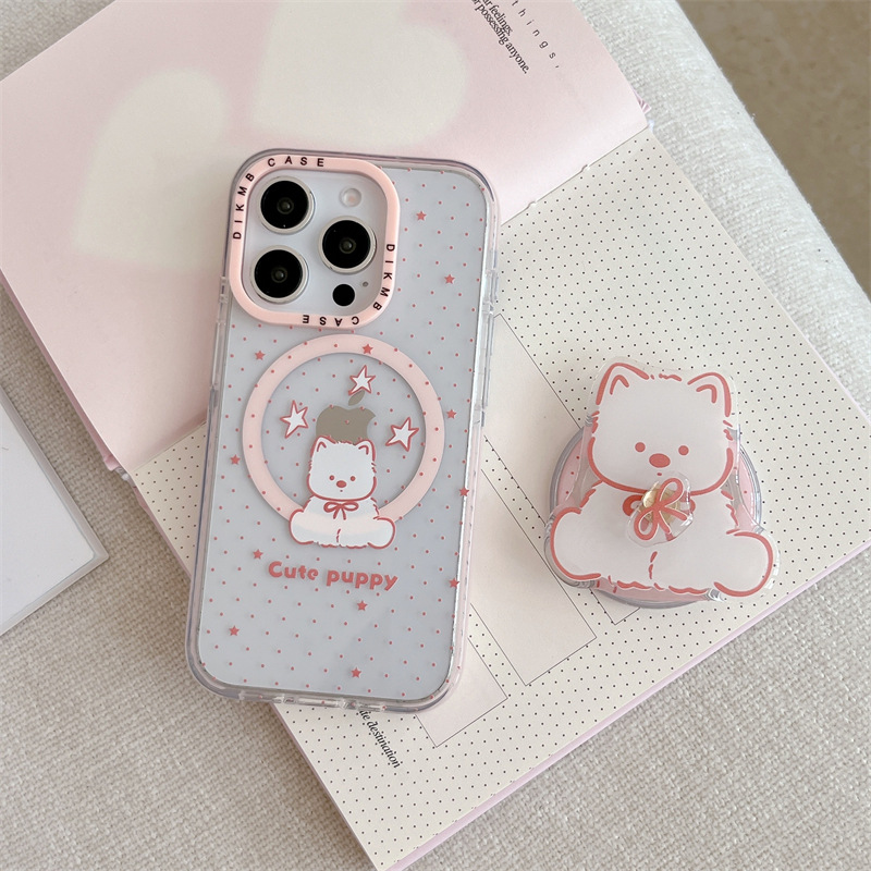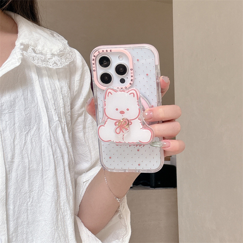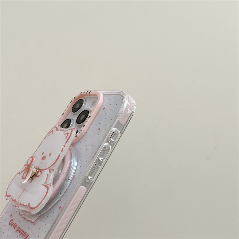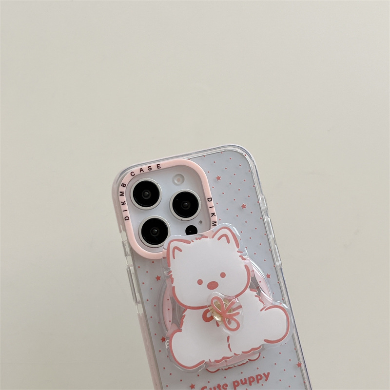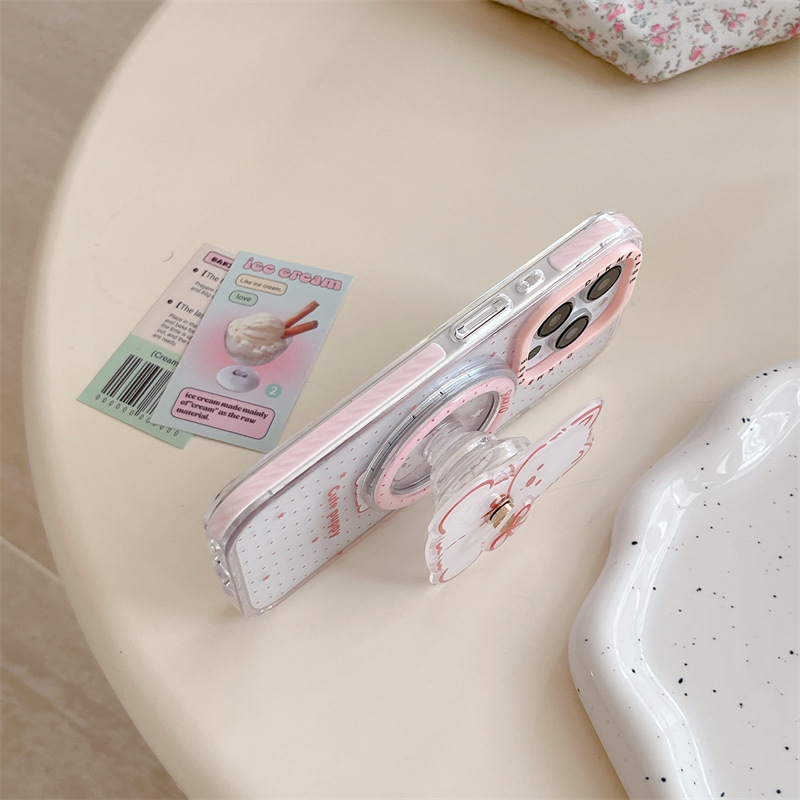 Oso de lazo de dibujos animados de lunares rosa para Apple 16ProMax funda para teléfono móvil 15Pro magnético 14/13 hembra