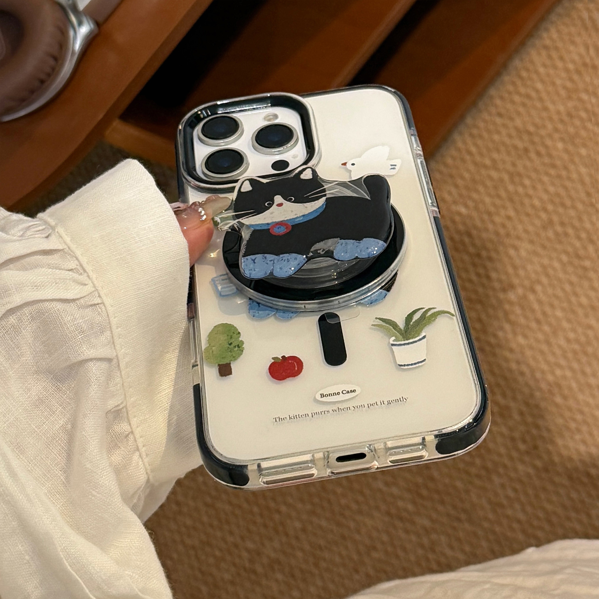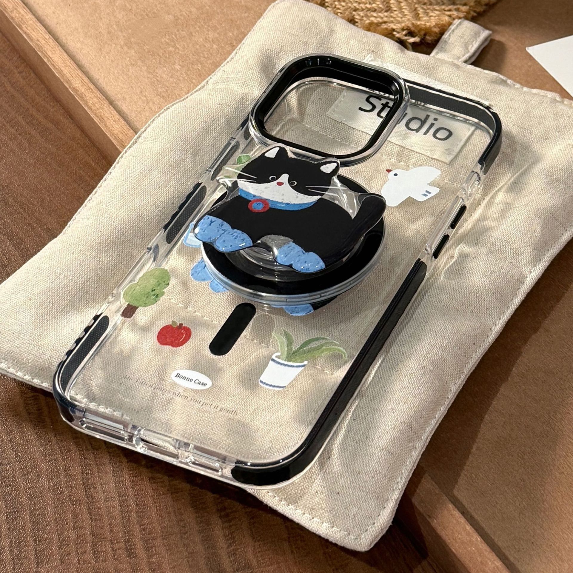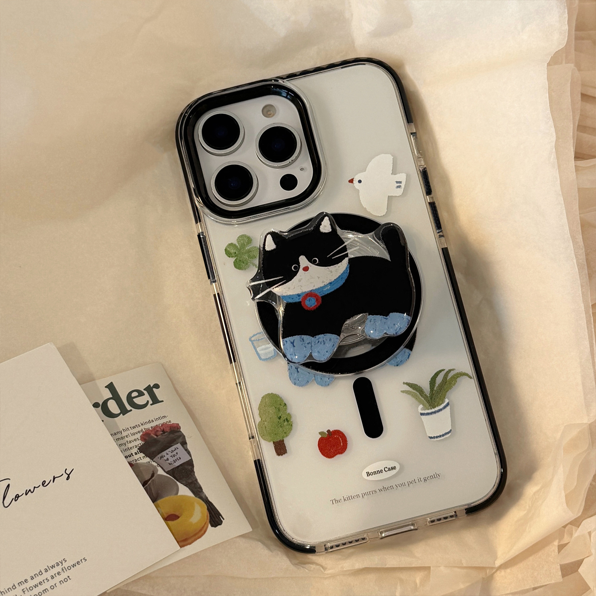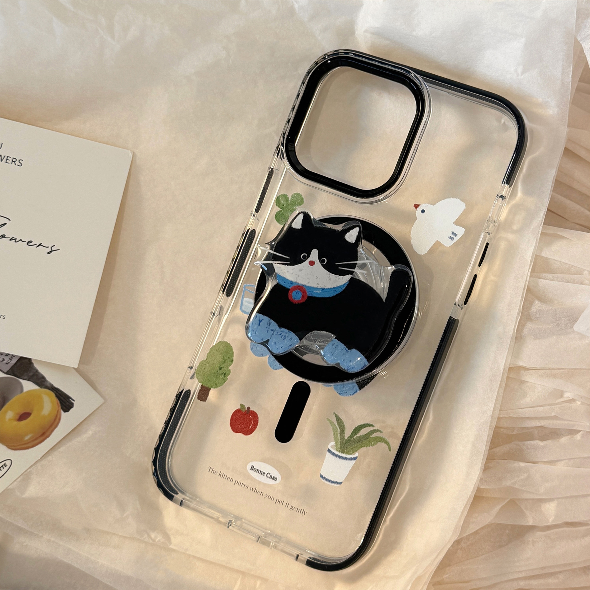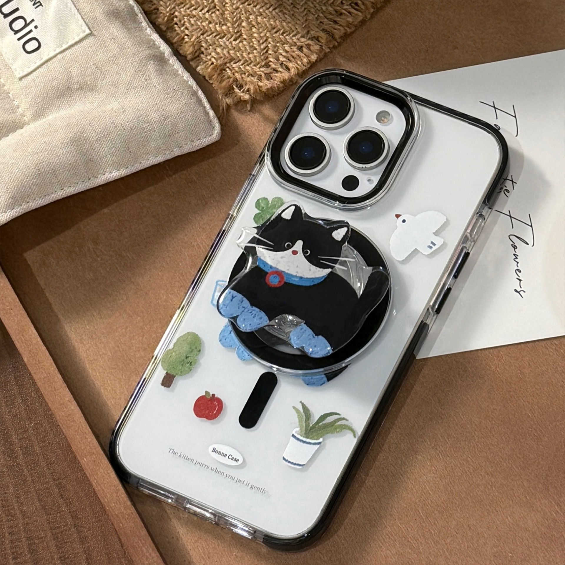 Lindo gato negro de dibujos animados para iPhone16 Apple 15ProMax funda para teléfono móvil 14Pro magnético 13 femenino 16P