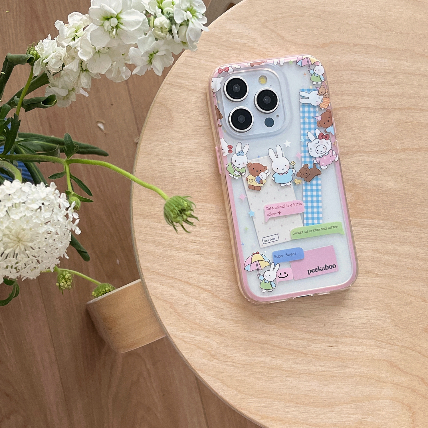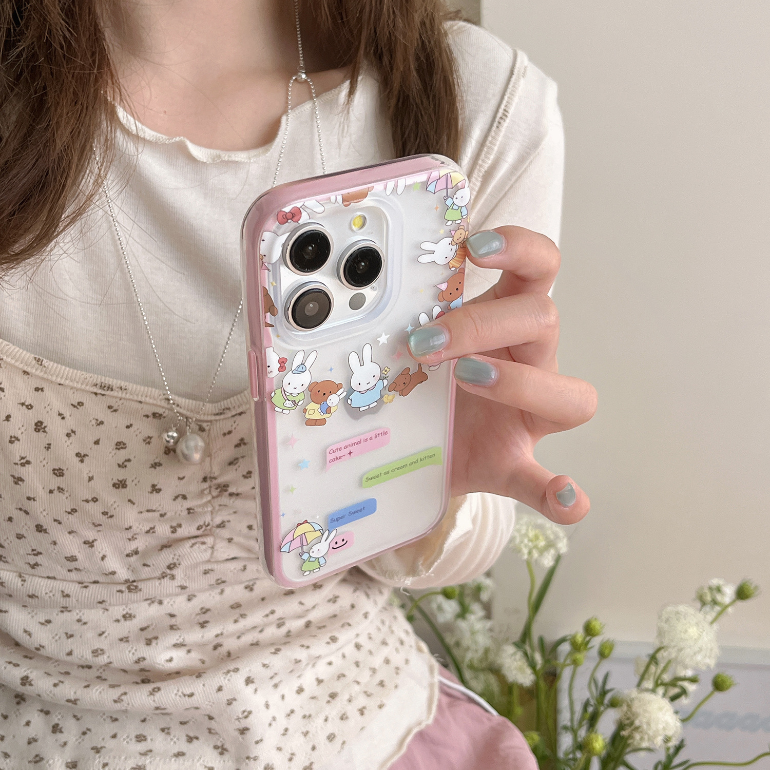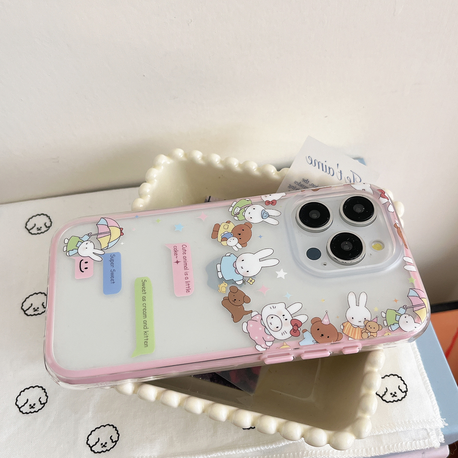 Dibujos animados lindo círculo conejo oso para Apple 16ProMax funda para teléfono móvil 15Pro niña 14/13 nuevo 15