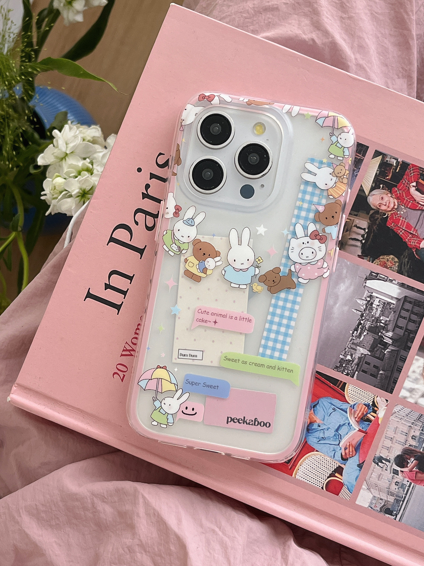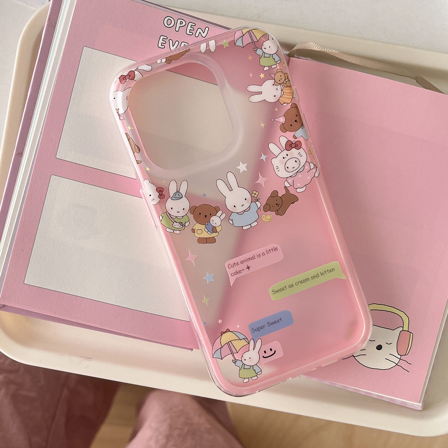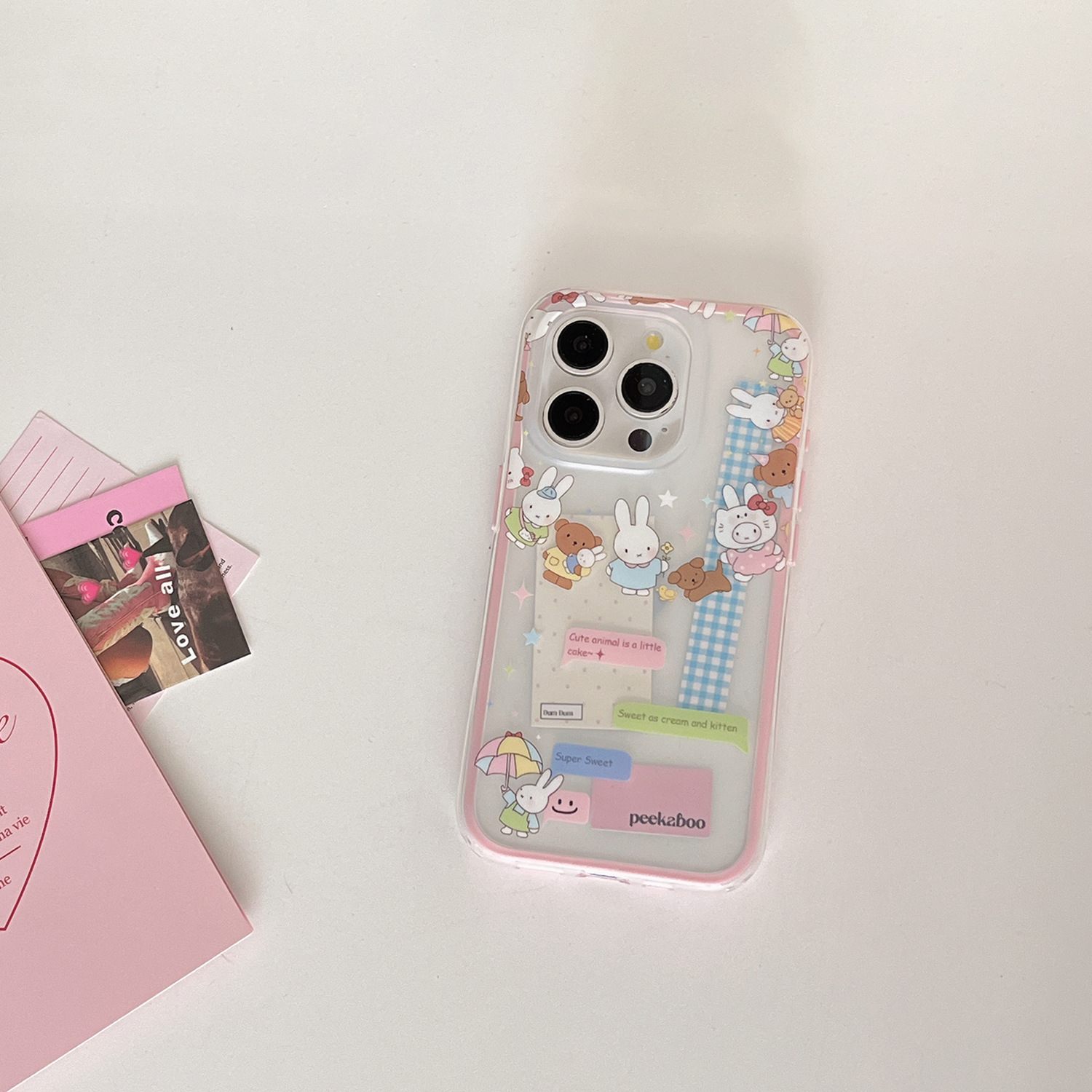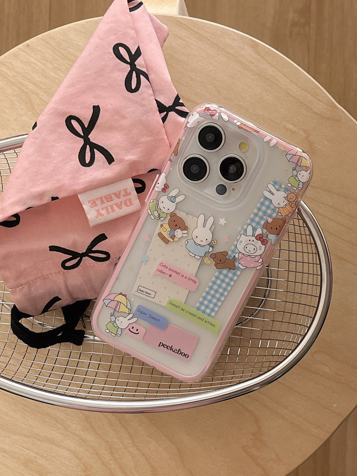 Dibujos animados lindo círculo conejo oso para Apple 16ProMax funda para teléfono móvil 15Pro niña 14/13 nuevo 15