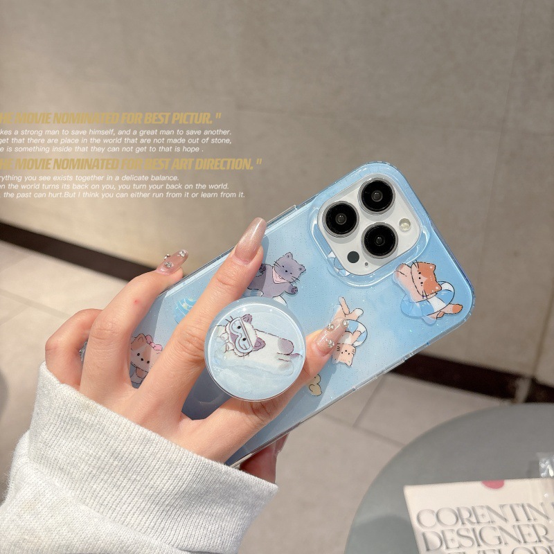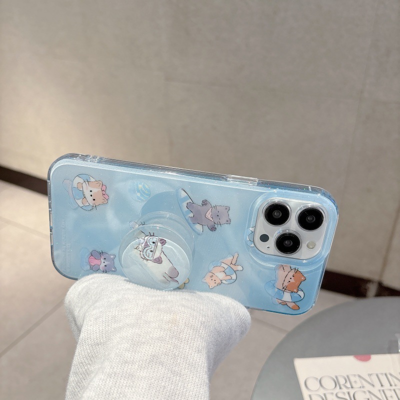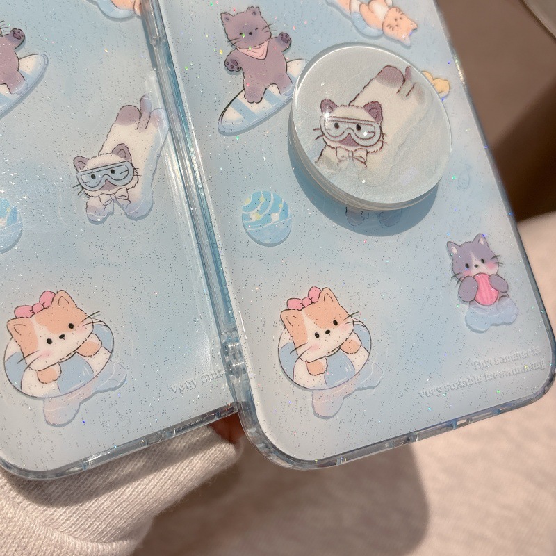 Verano pequeño gato nadador fresco para Apple 16ProMax funda para teléfono móvil 15Pro simple 14/13 nuevo 15