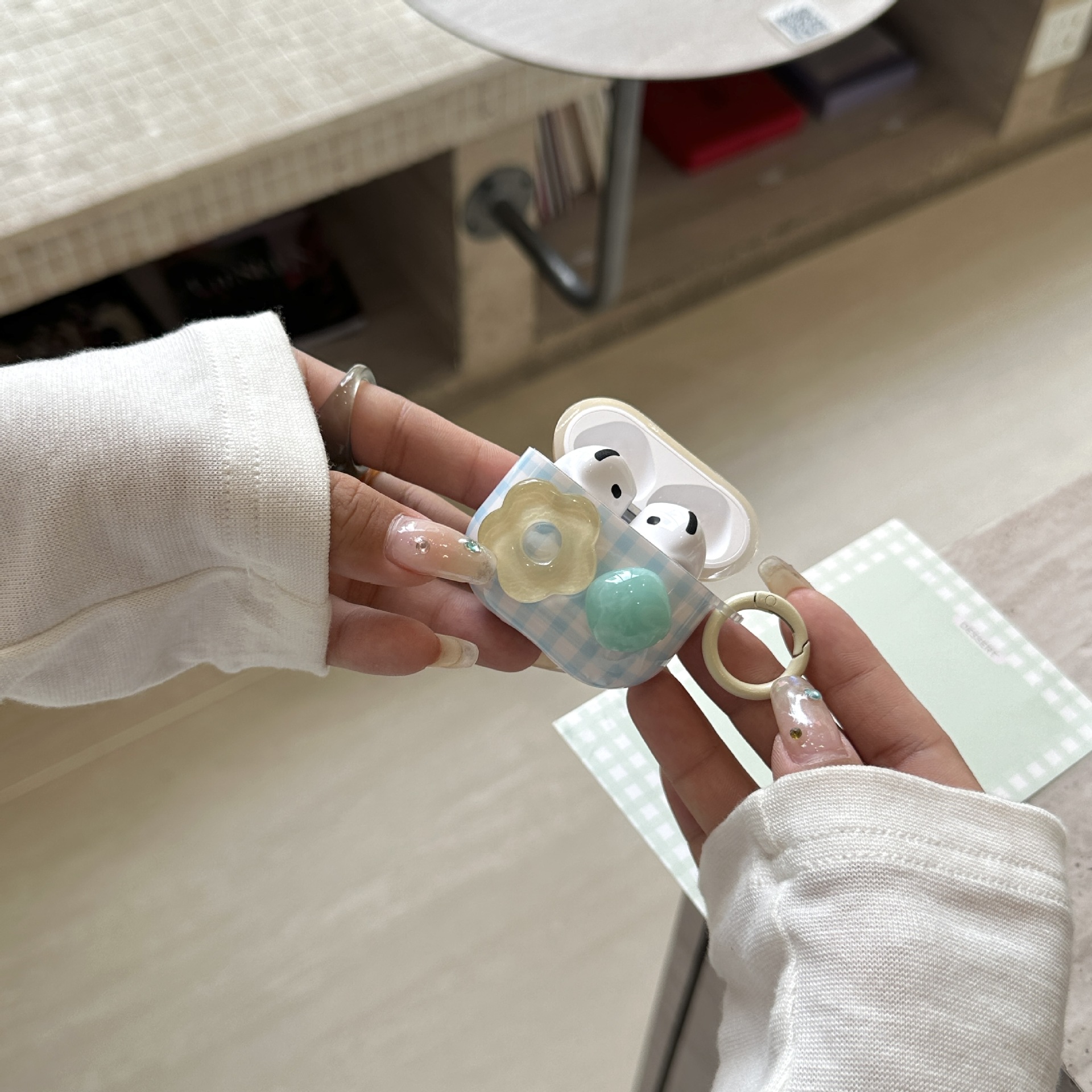 Las flores de cuadros azules frescas de verano son adecuadas para Airpods, nueva funda para auriculares inalámbricos Pro2 de 3/4 generación 1/2 generación