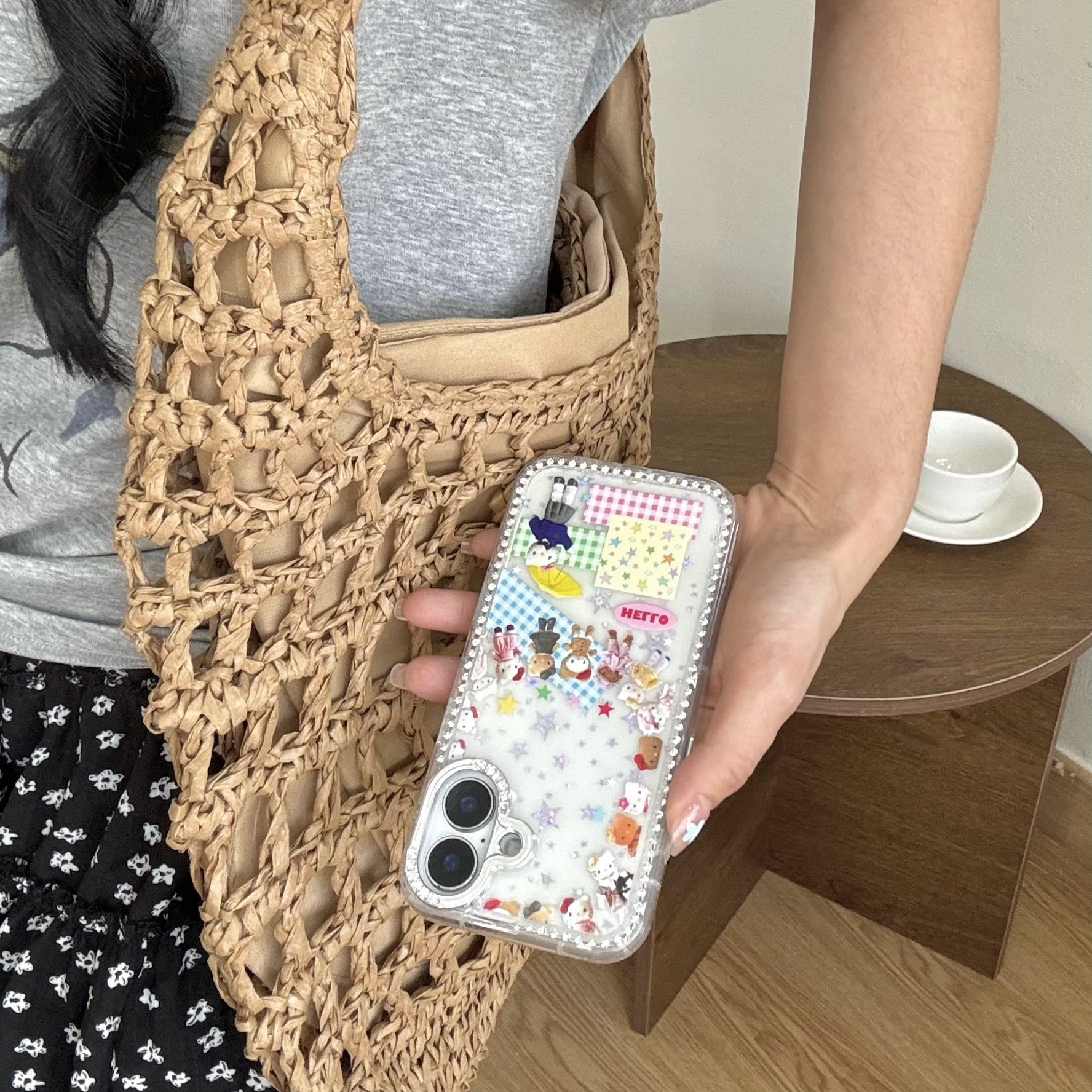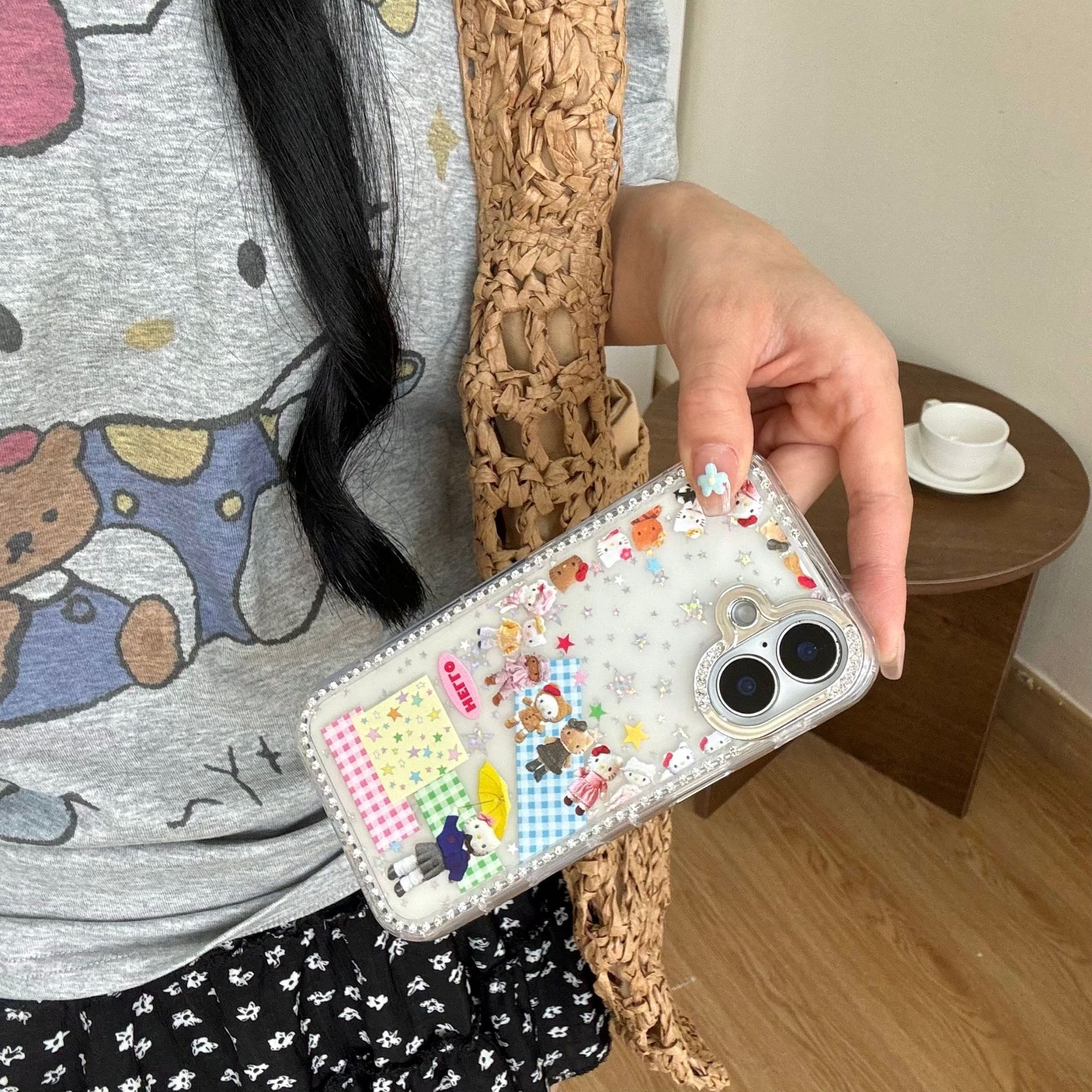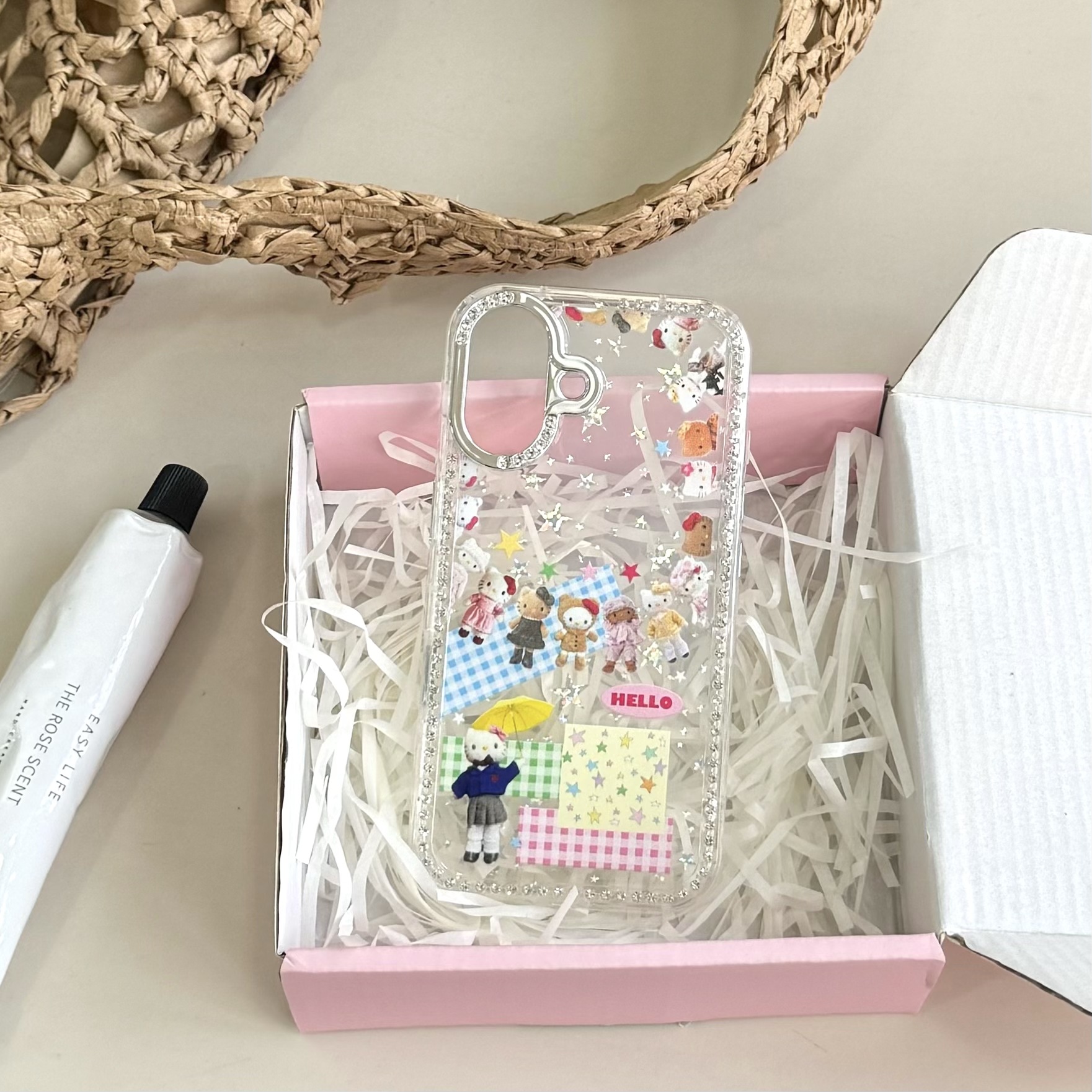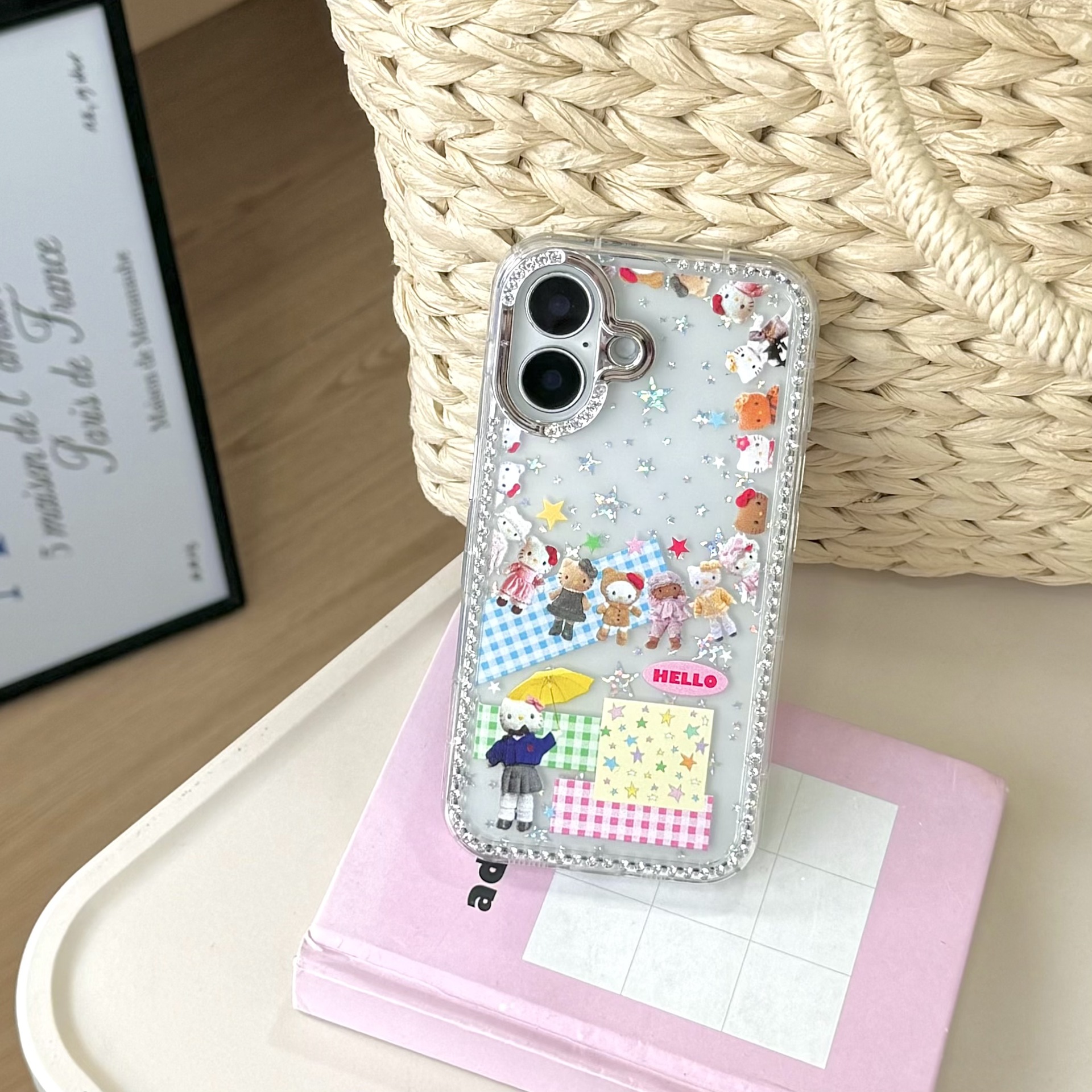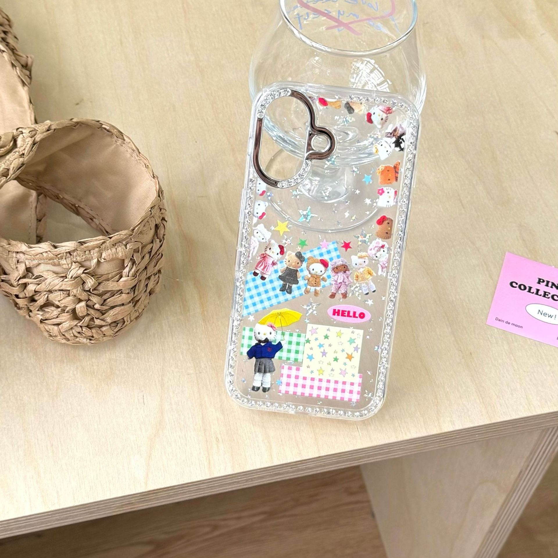 Girl Heart Flash Diamond Star KT Cat Adecuado para Apple 15ProMax Funda para teléfono móvil 16Pro a cuadros 14/13 Mujer 16PM