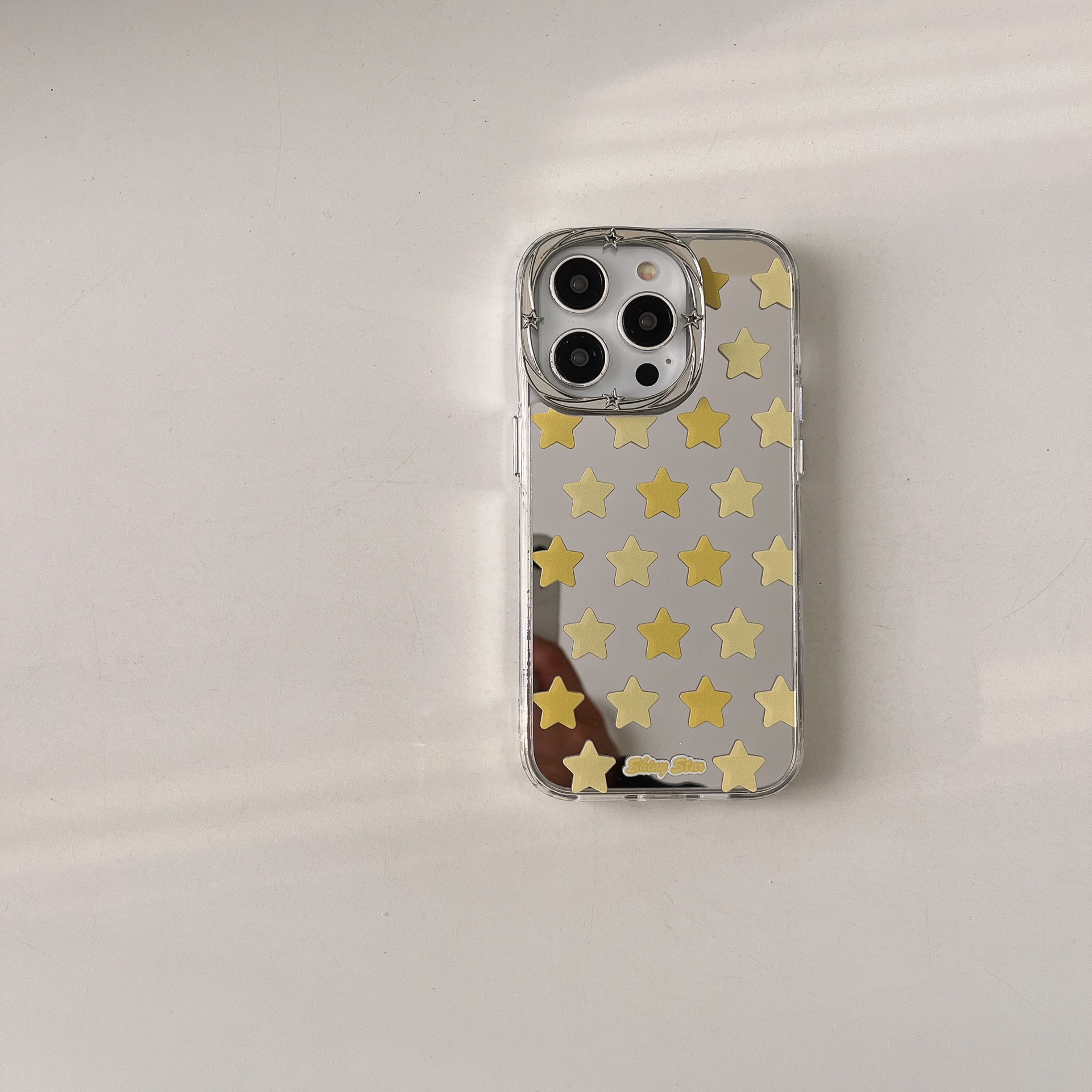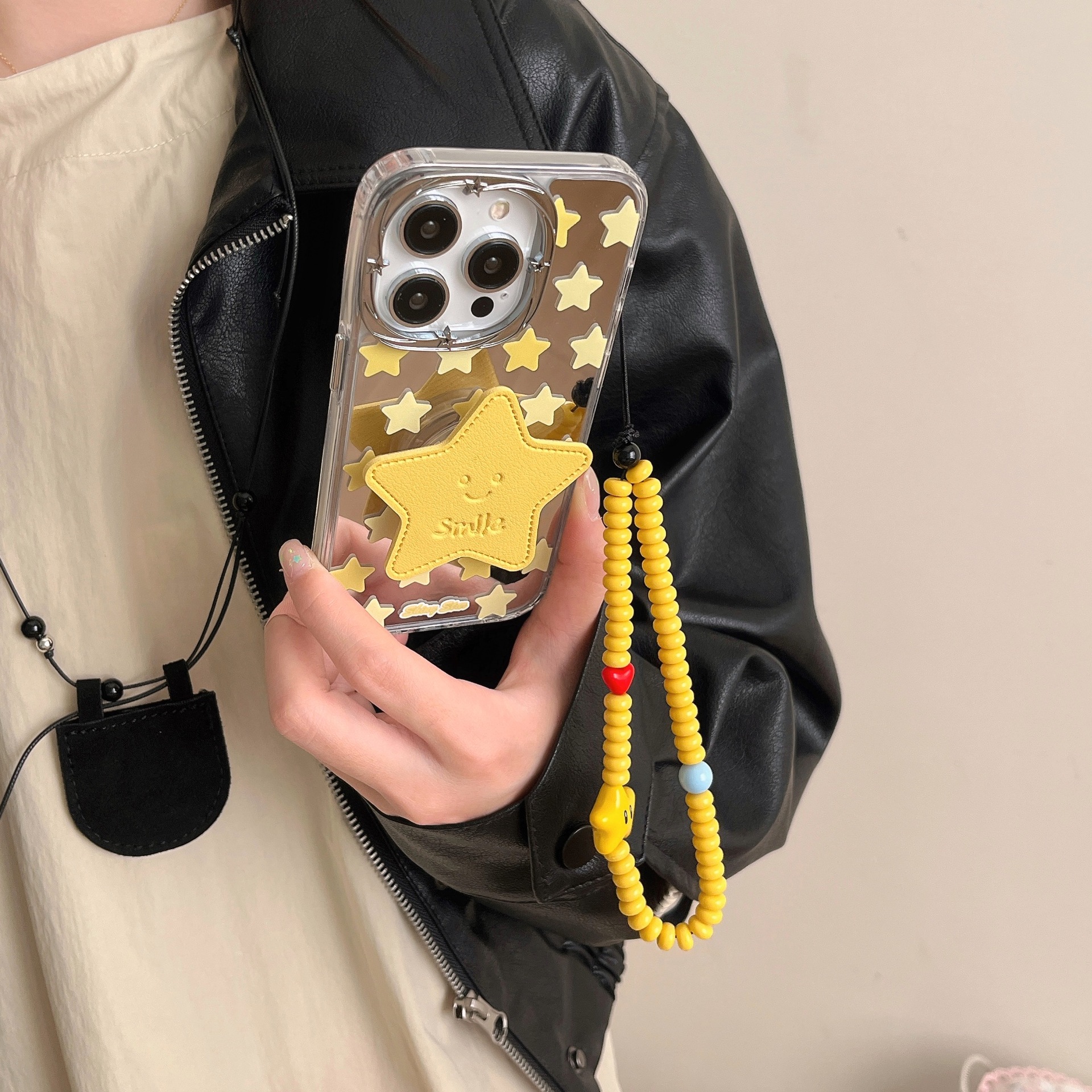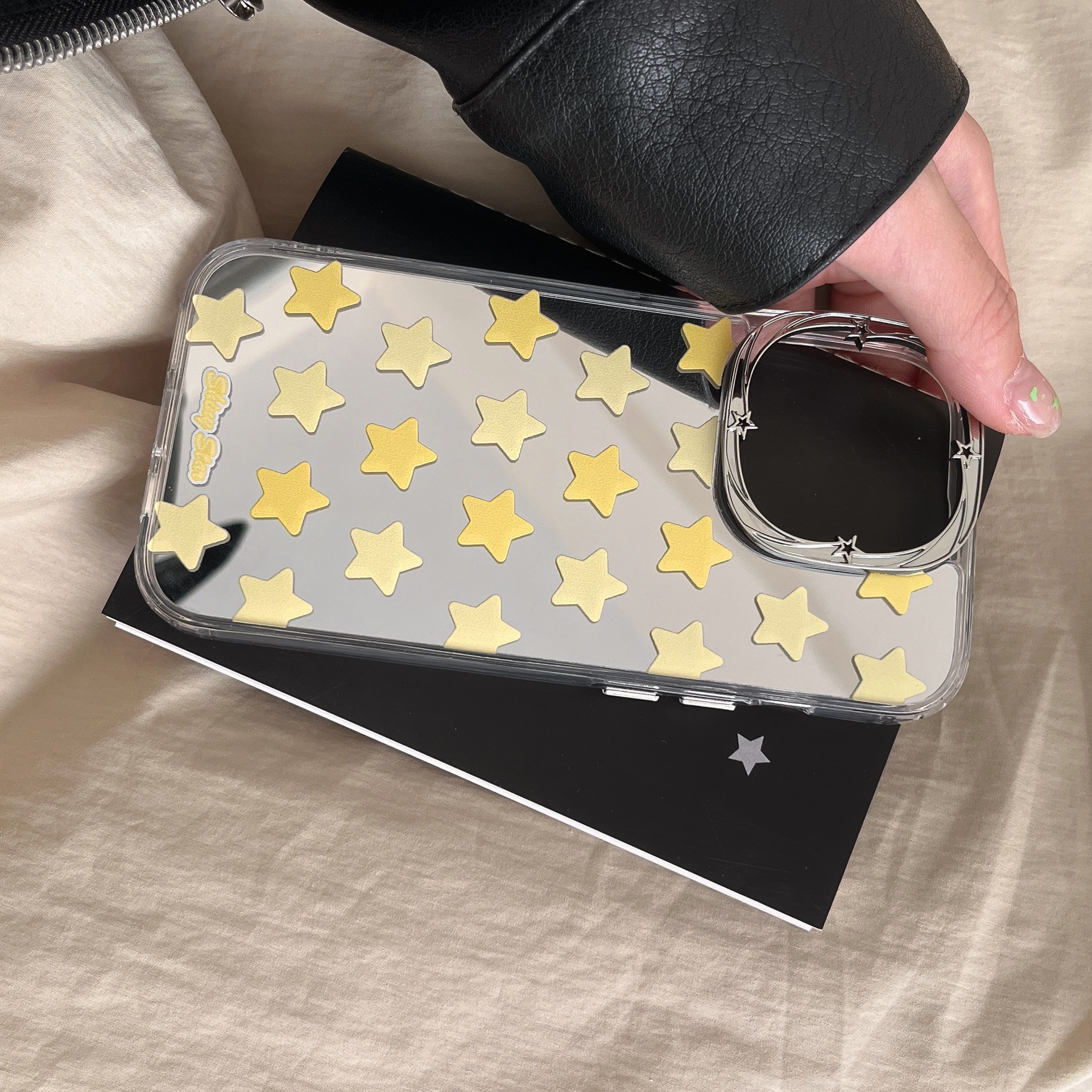 Espejo coreano estrella amarilla para Apple 16Pro funda para teléfono móvil 15ProMax nuevo 14/13 pareja 16PM