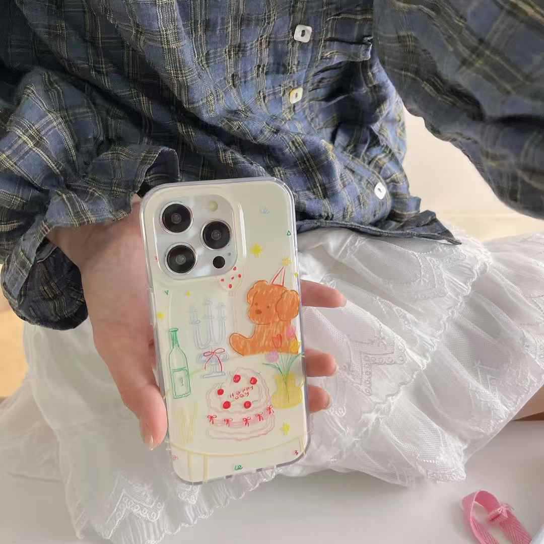 Dibujos animados graffiti cumpleaños cachorro adecuado 16ProMax pulsera iphone15 funda para teléfono 13 Apple 14 pareja 16