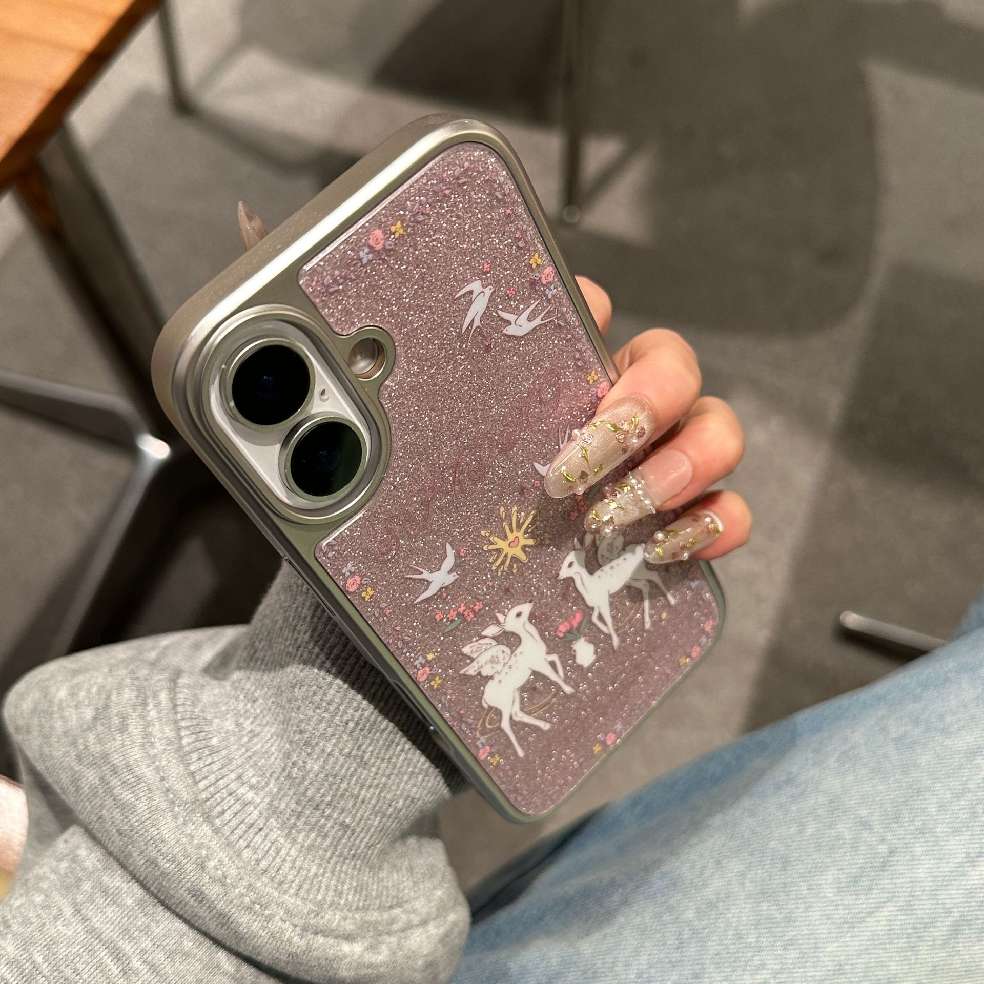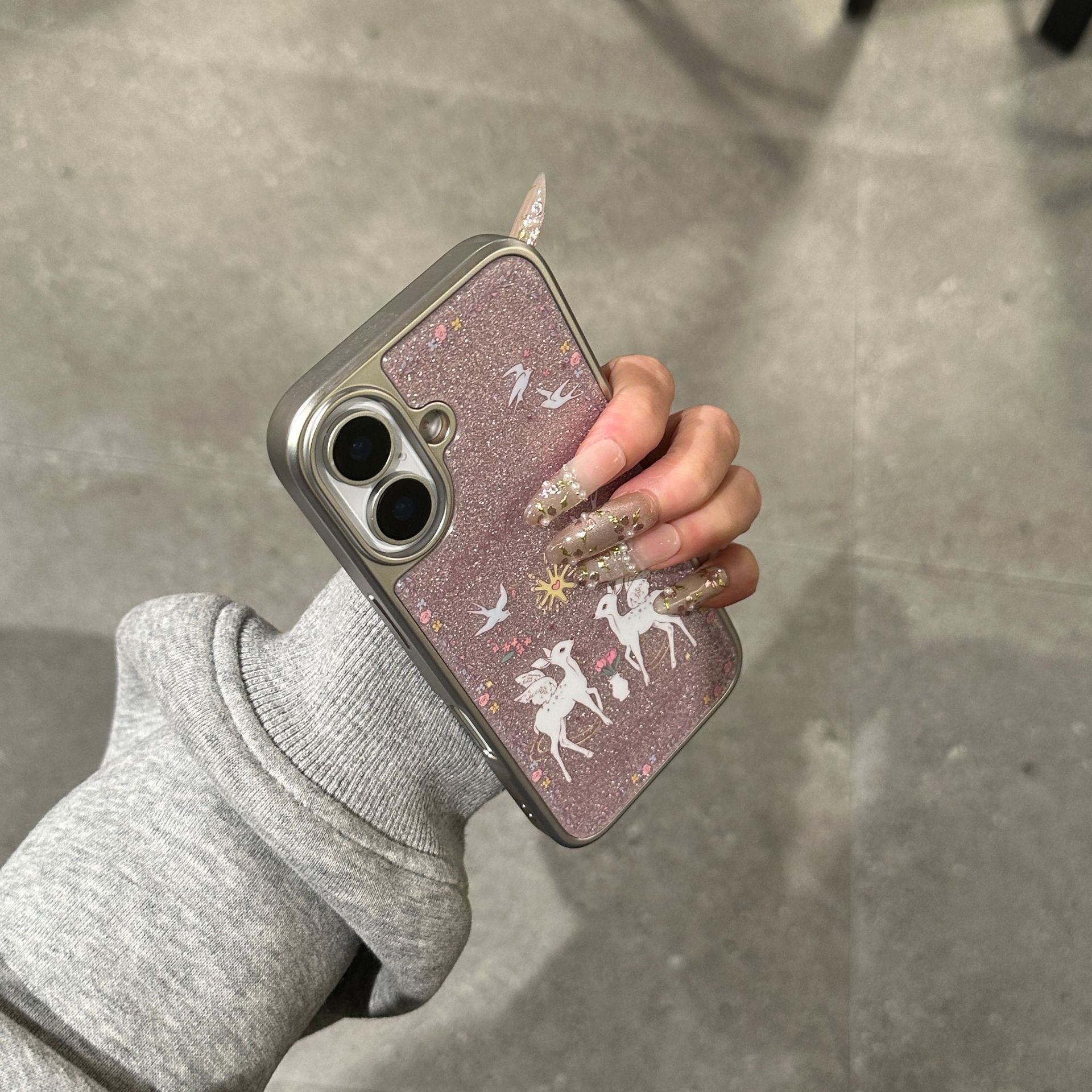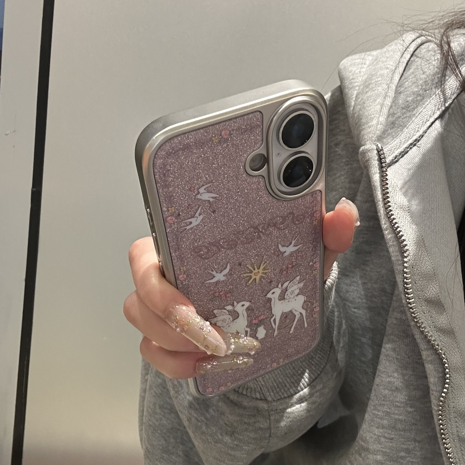 Fun Girl Heart Angel Cervatillo Adecuado para Apple 16ProMax Funda para teléfono móvil 15Pro/14Pro Flower 13 Mujer