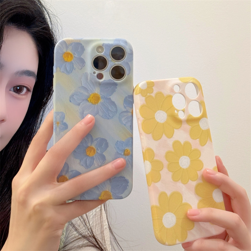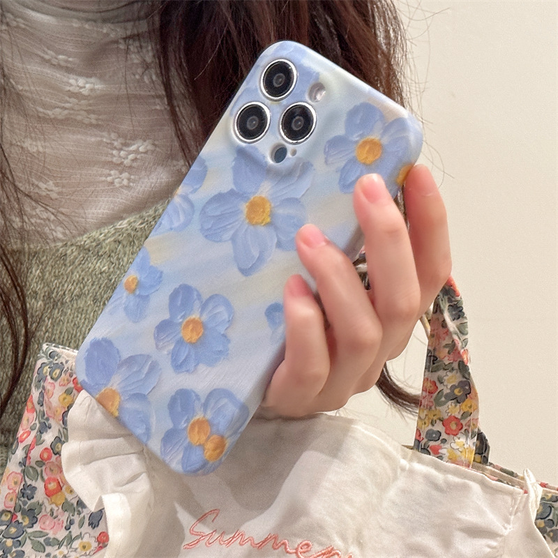 Pequeña pasta de agua fresca pintura al óleo flor apta para iphone14 Apple 15 funda para teléfono móvil 16ProMax femenino 13 suave 15PM