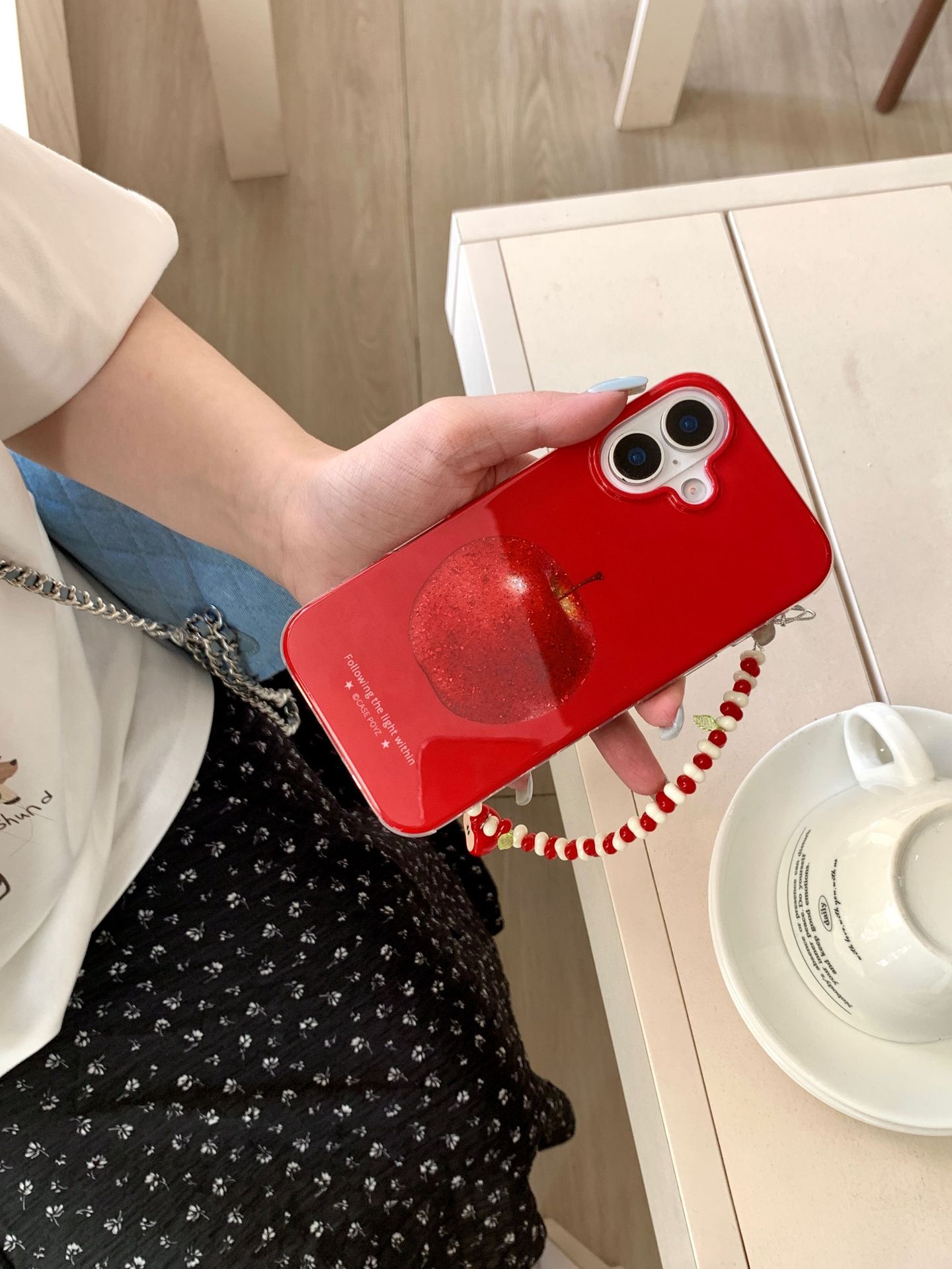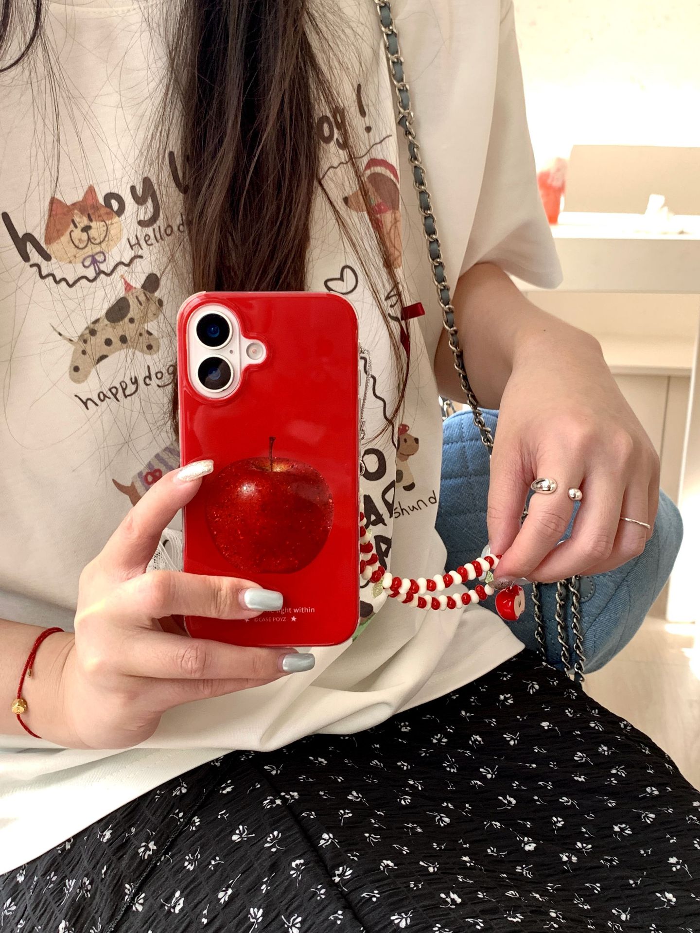 Nicho retro rojo Apple para iPhone15ProMax funda para teléfono móvil 16Pro cadena 14/13 femenino 16PM