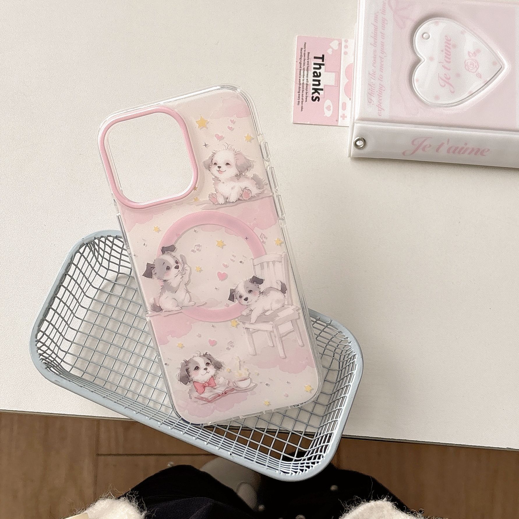 Cute dibujos animados base cachorro para Apple 15Pro/16Pro funda para teléfono móvil 14/13 atracción magnética 16ProMax hembra