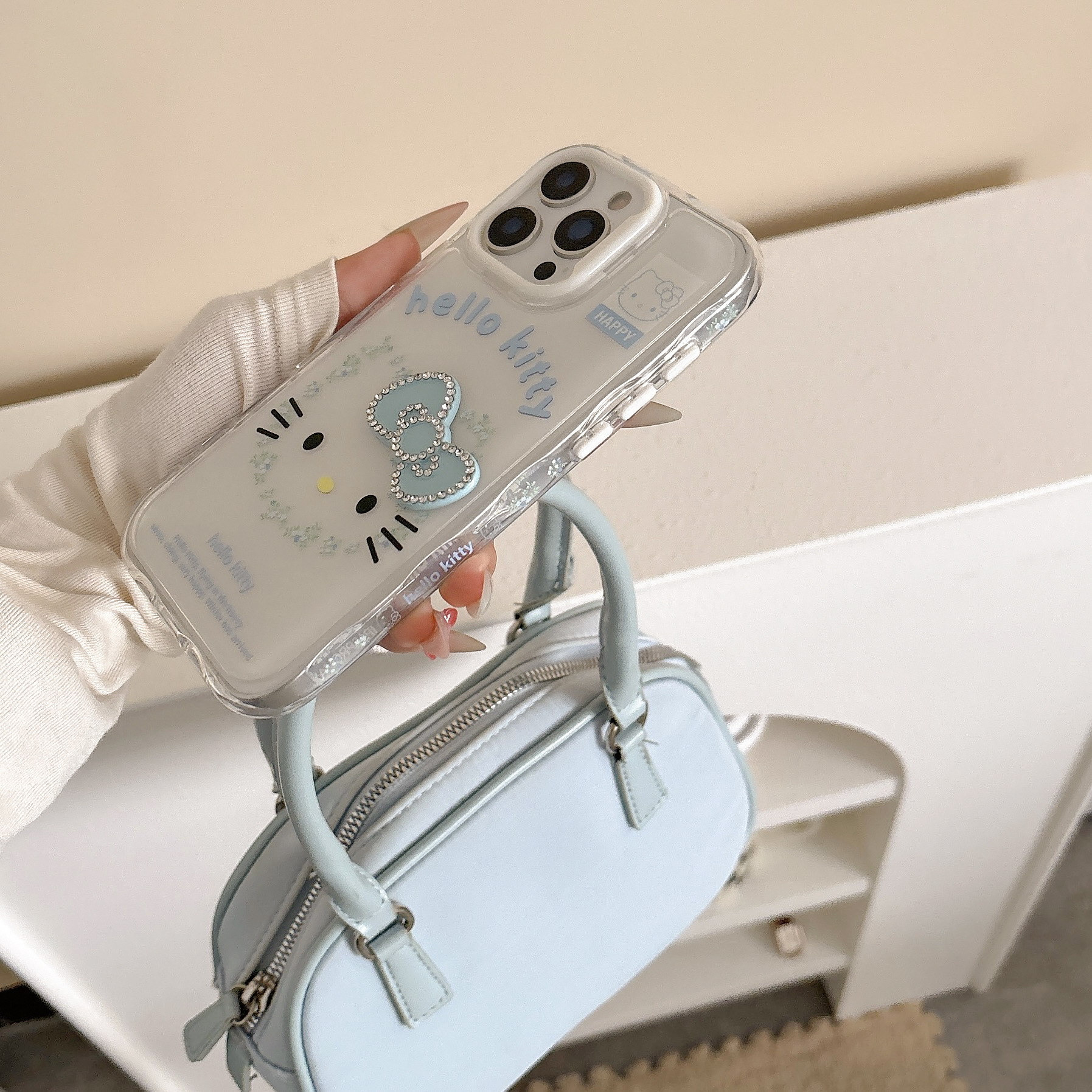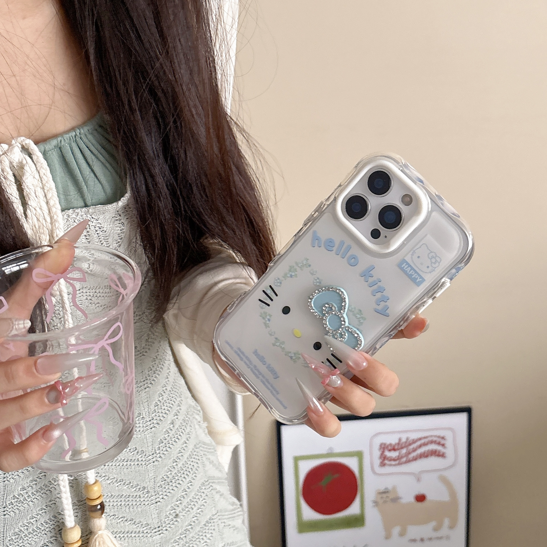 Corazón de niña destellando diamantes bowknot KT emoji para Apple 16ProMax funda para teléfono móvil 15Pro nuevo 14/13 mujer