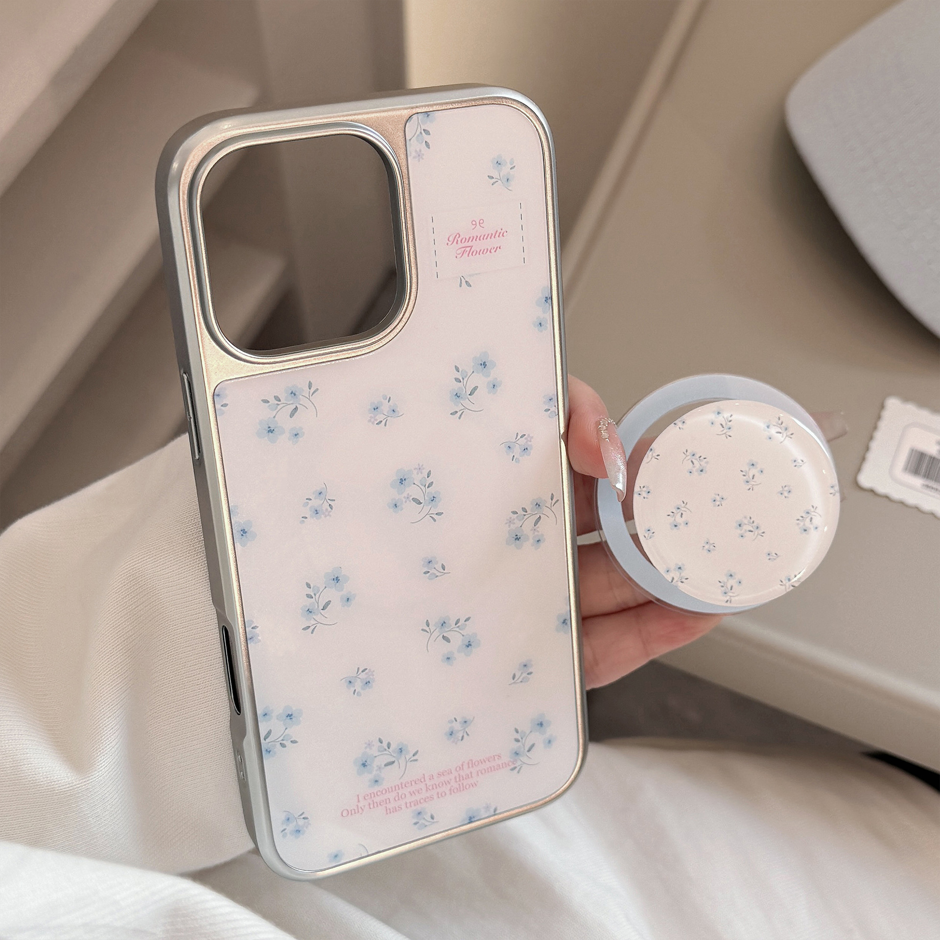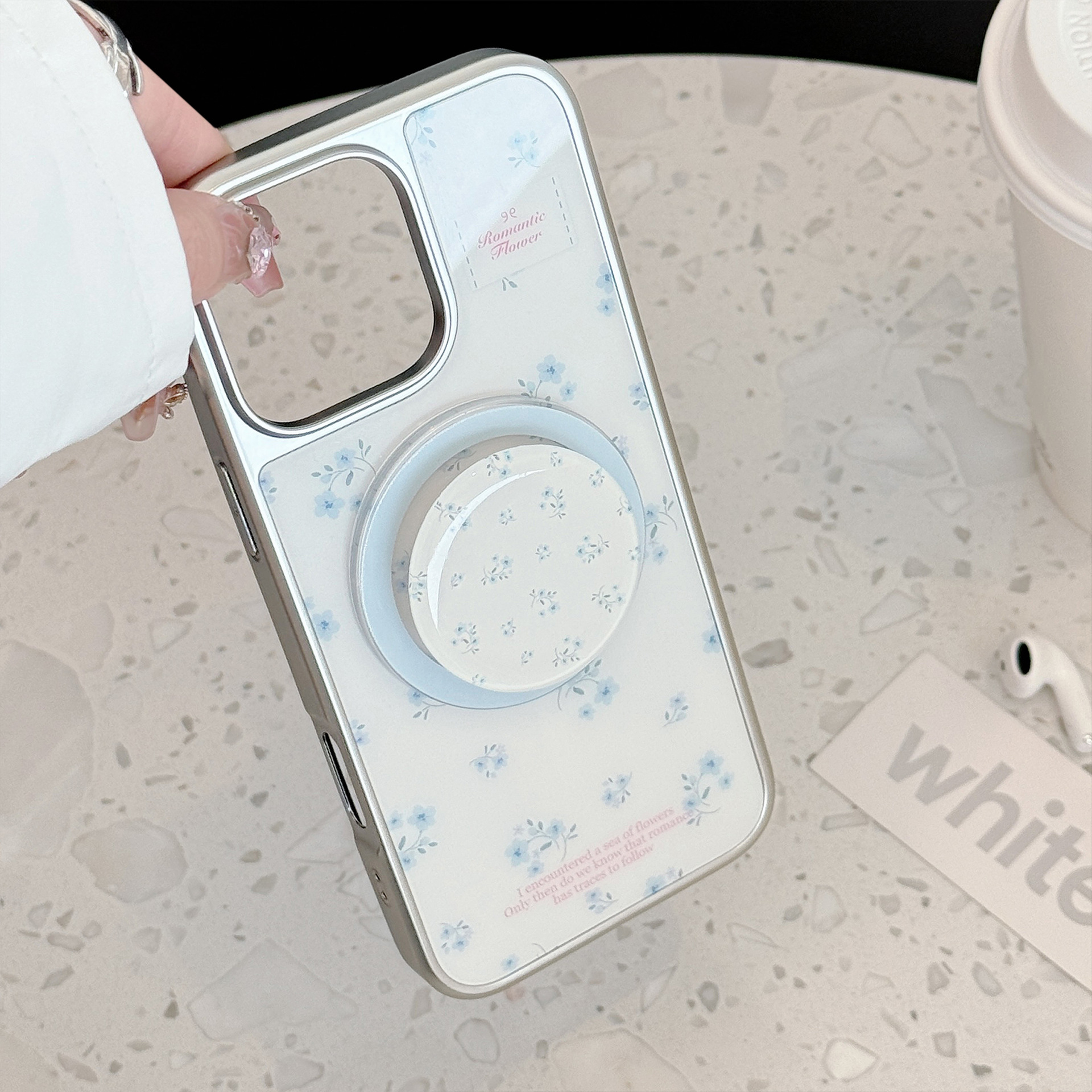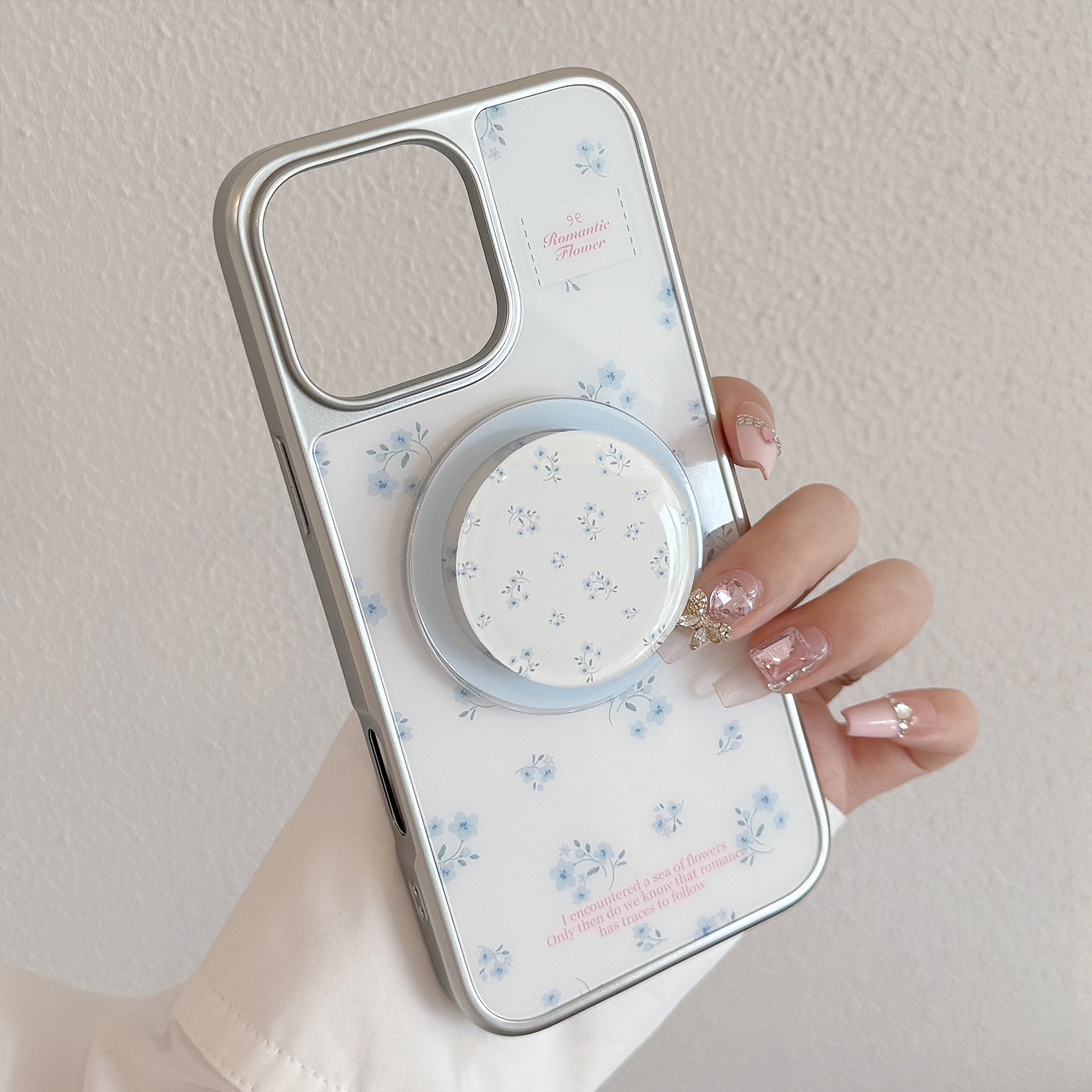 Soporte magnético de epoxi de borde plateado: fondo blanco pantalla completa pequeña flor azul TX