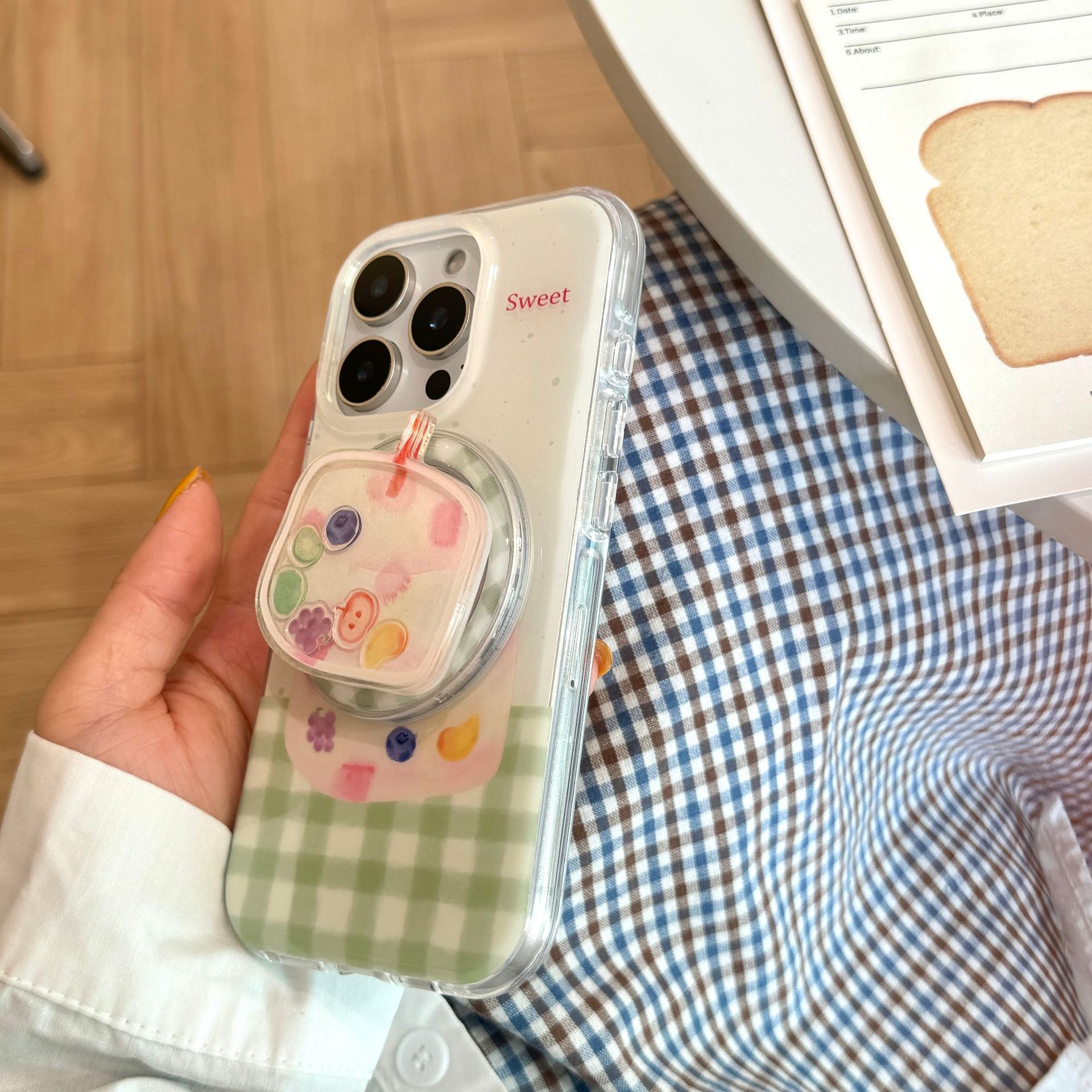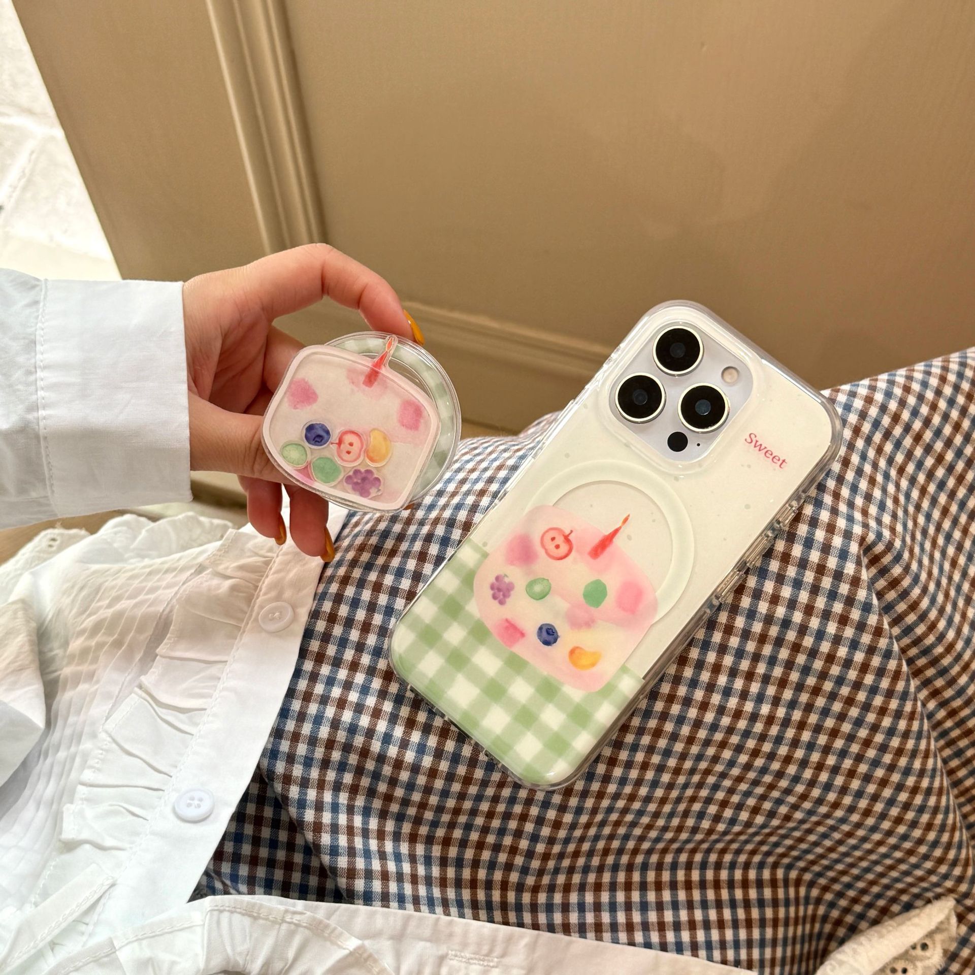 | Colores | Pastel de frutas con costuras a cuadros verdes de una sola cáscara de succión magnética YM,Soporte magnético pintado a mano a cuadros verdes empalme pastel de frutas YM |