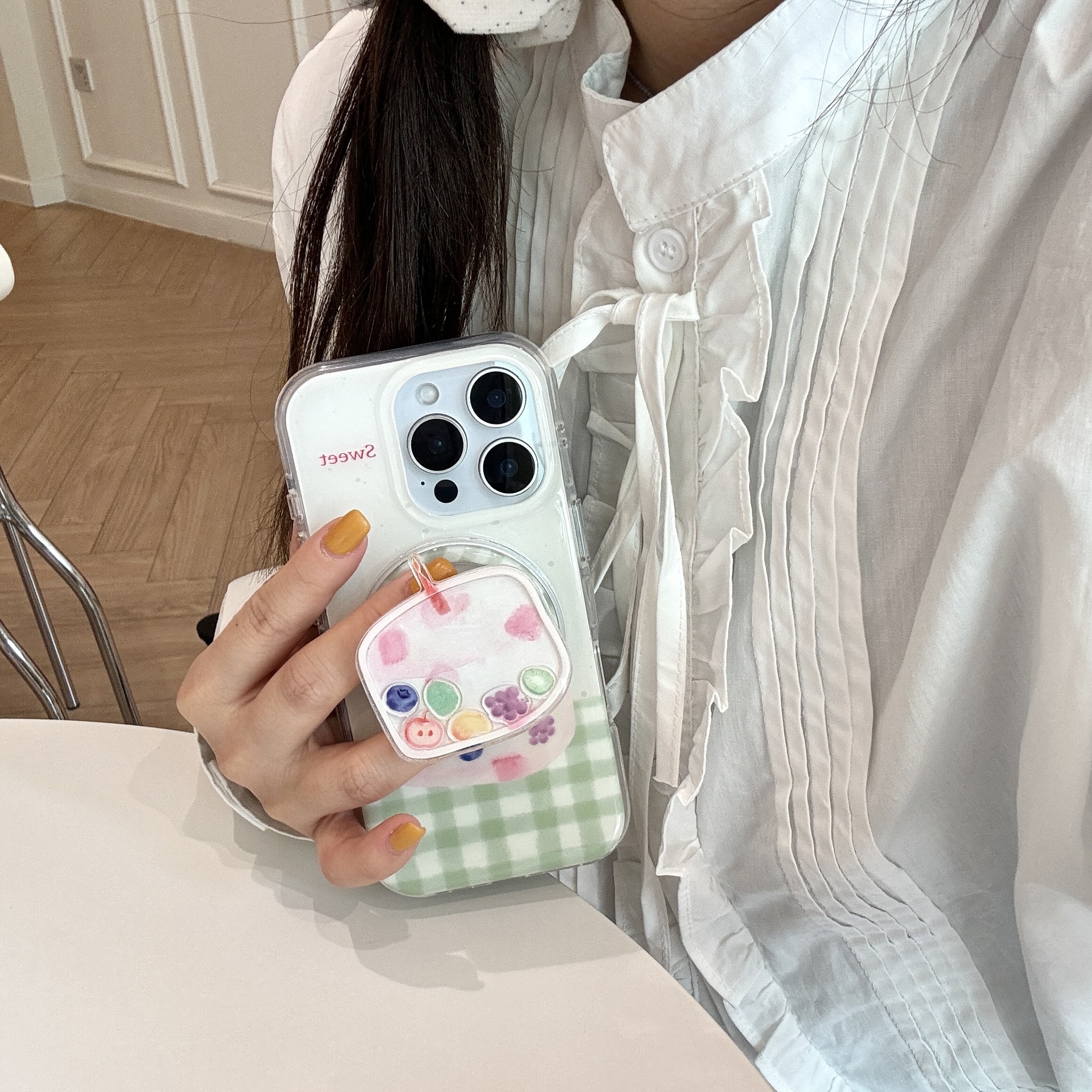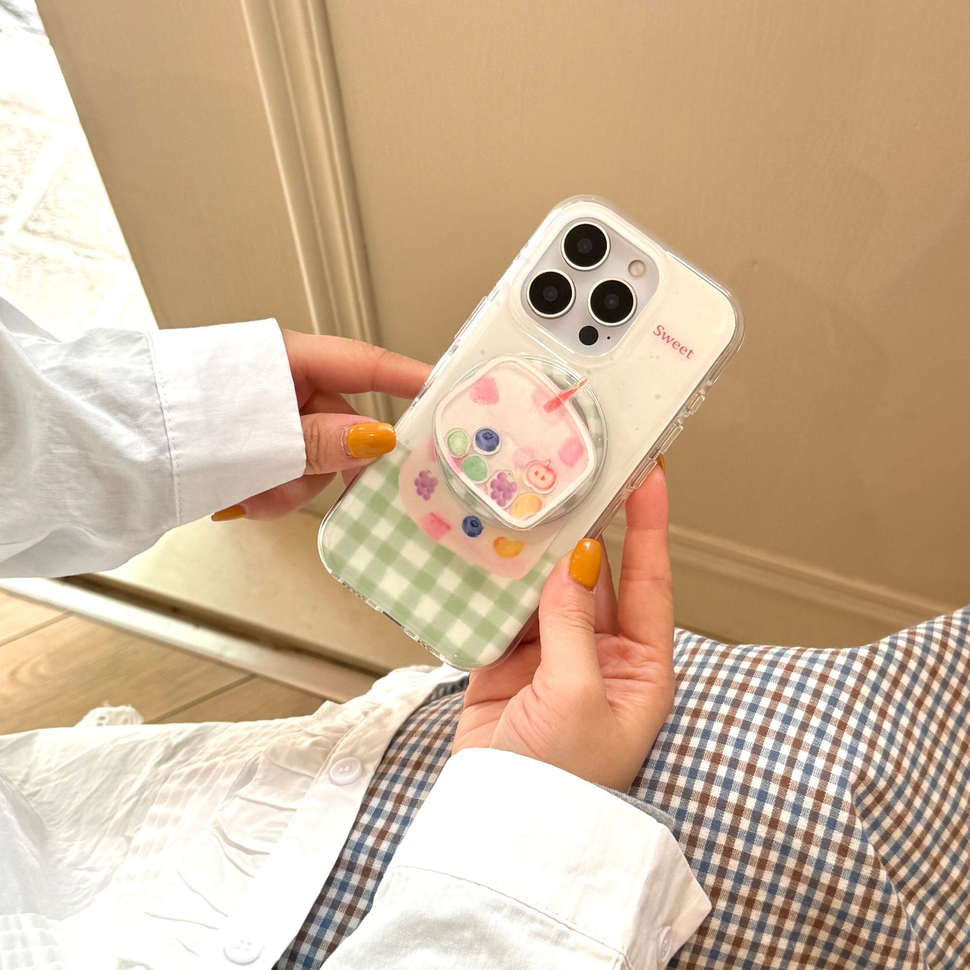 Funda para teléfono móvil Apple 16ProMax divertida y linda tarta de frutas a cuadros 15/14 nicho 15Pro mujer 13