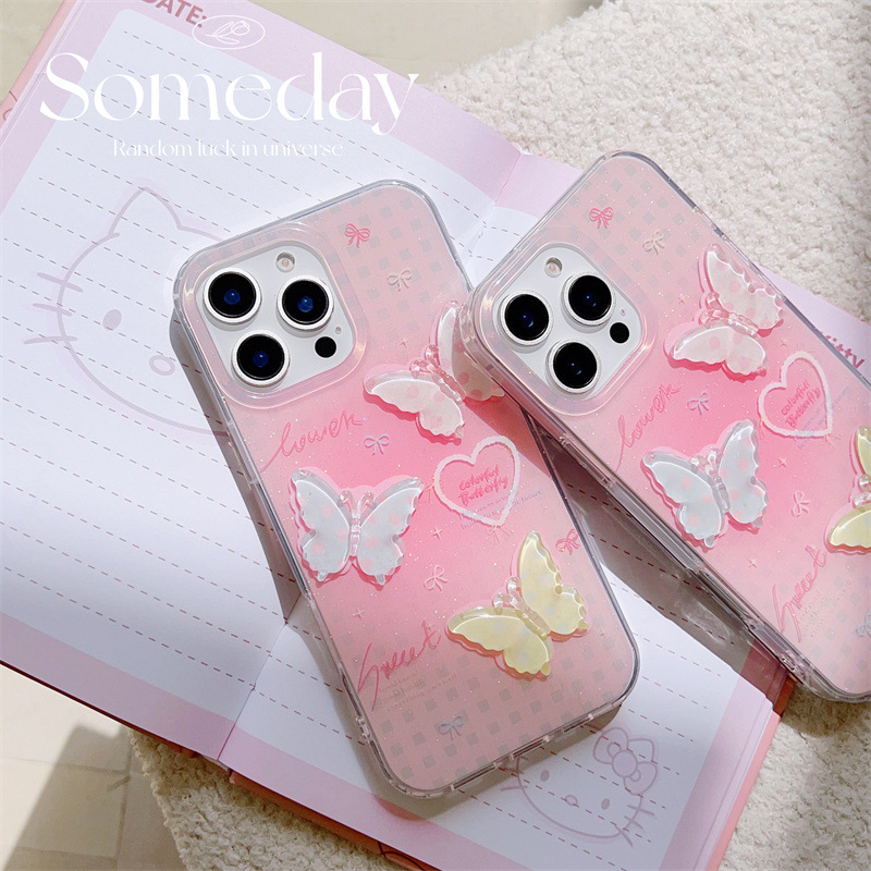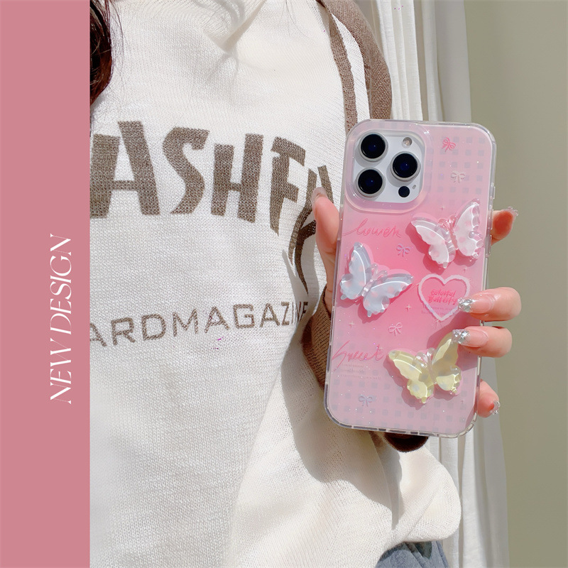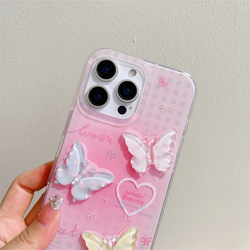 Girl ins brillo mariposa tridimensional para Apple 16pm funda para teléfono móvil iphone13/14 nuevo 15ProMax