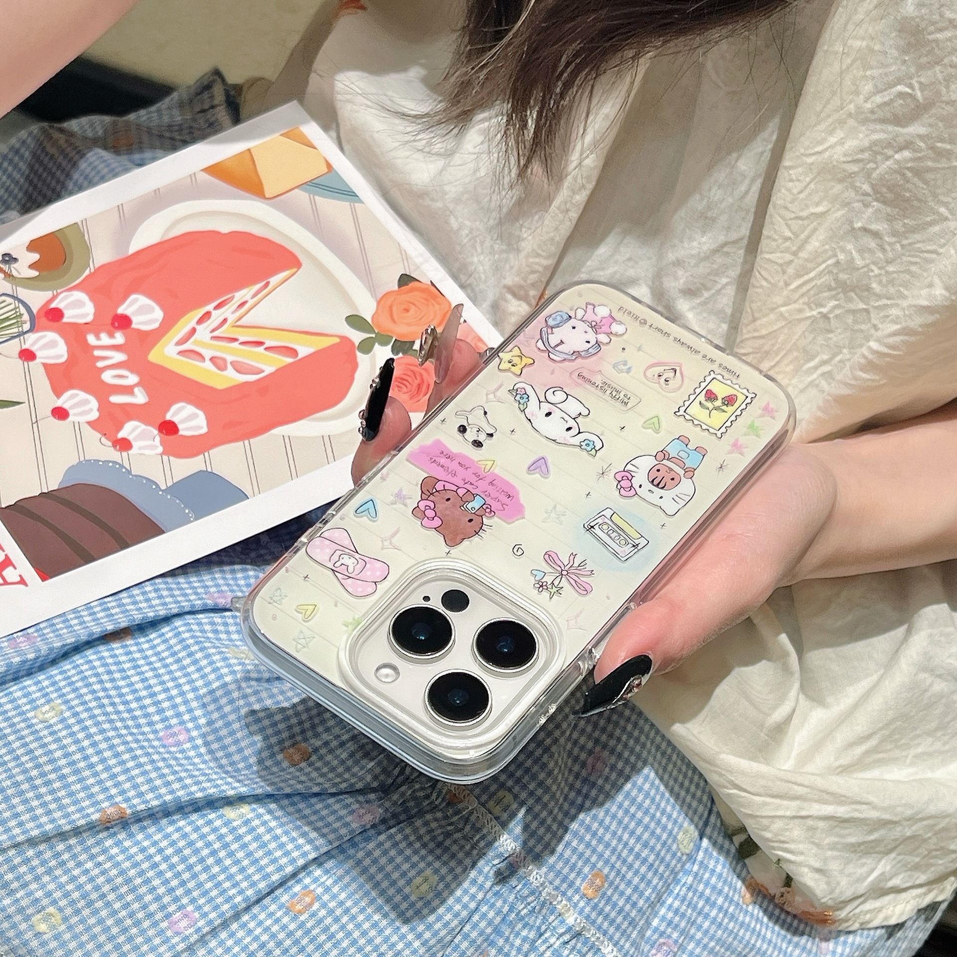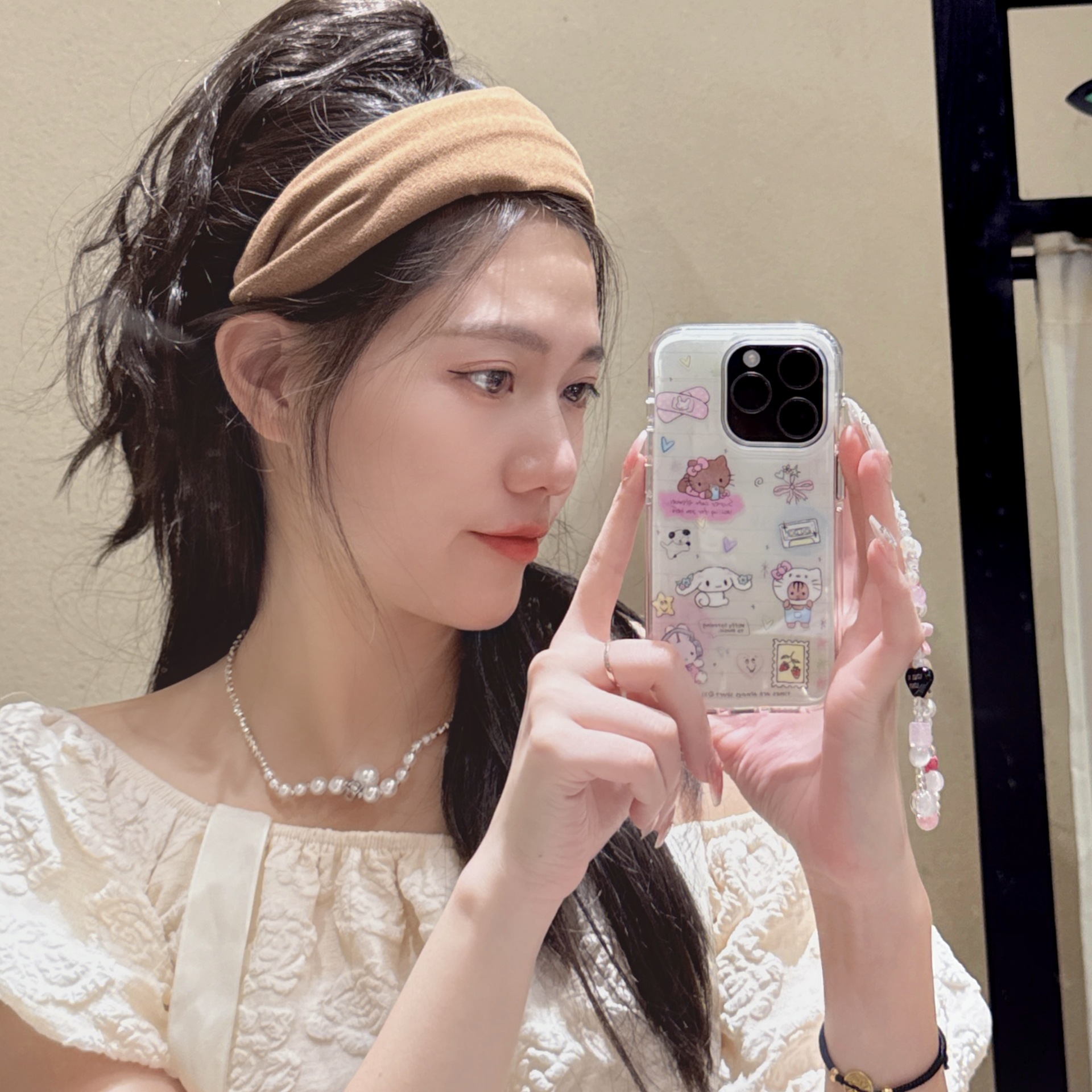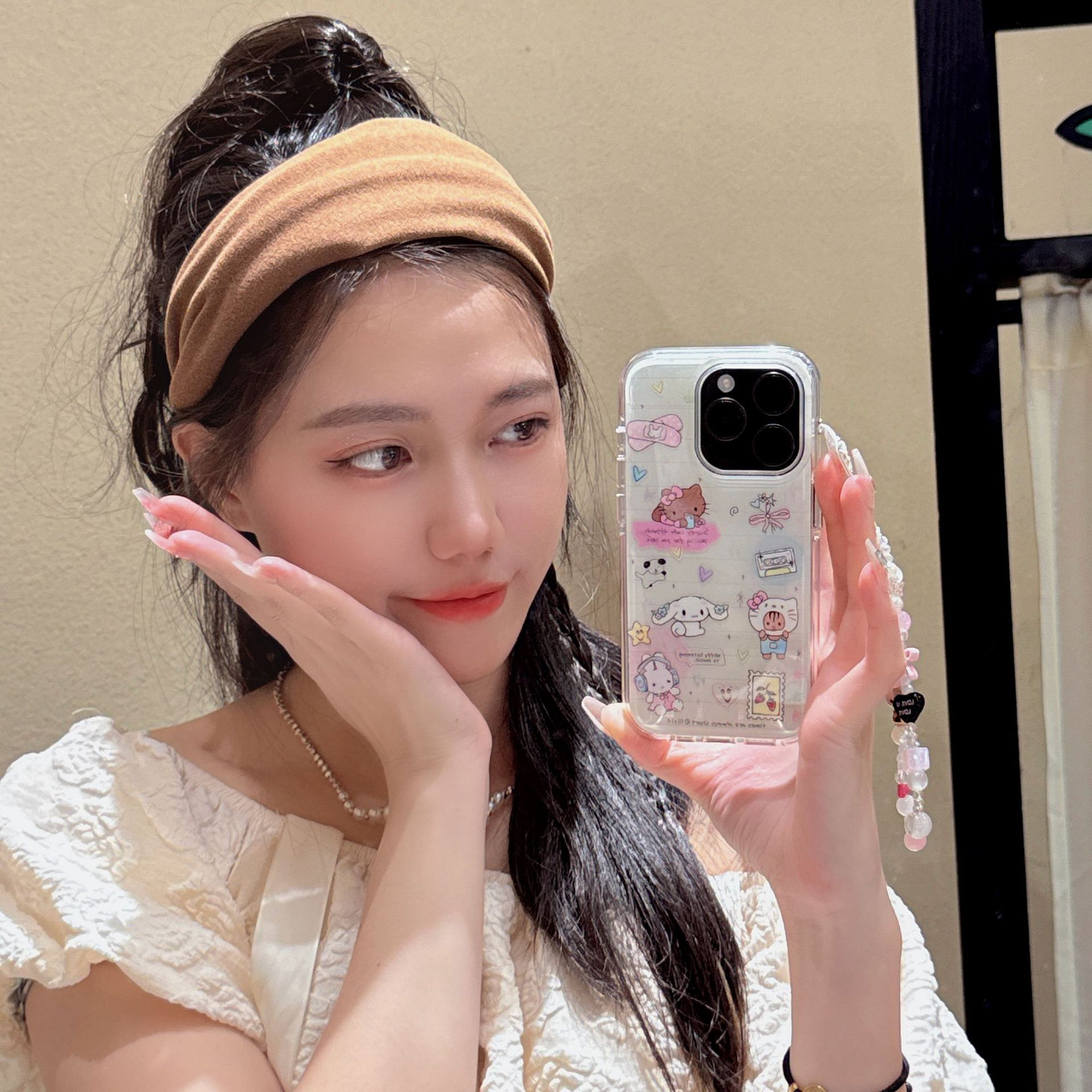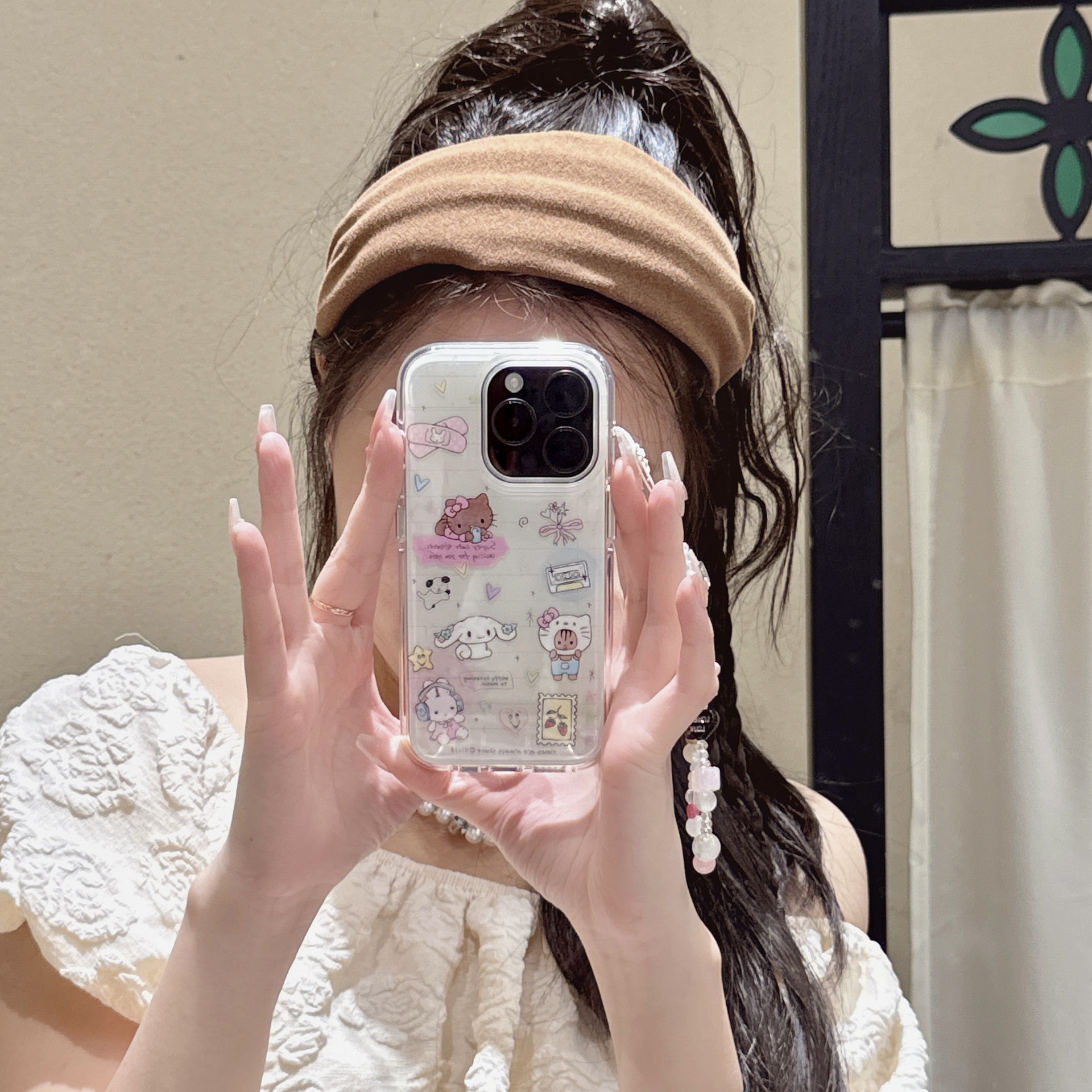 Corazón de niña de nicho de dibujos animados para Apple 15PorMax funda para teléfono móvil 16Pro verano cuero negro KT gato 14/13 mujer