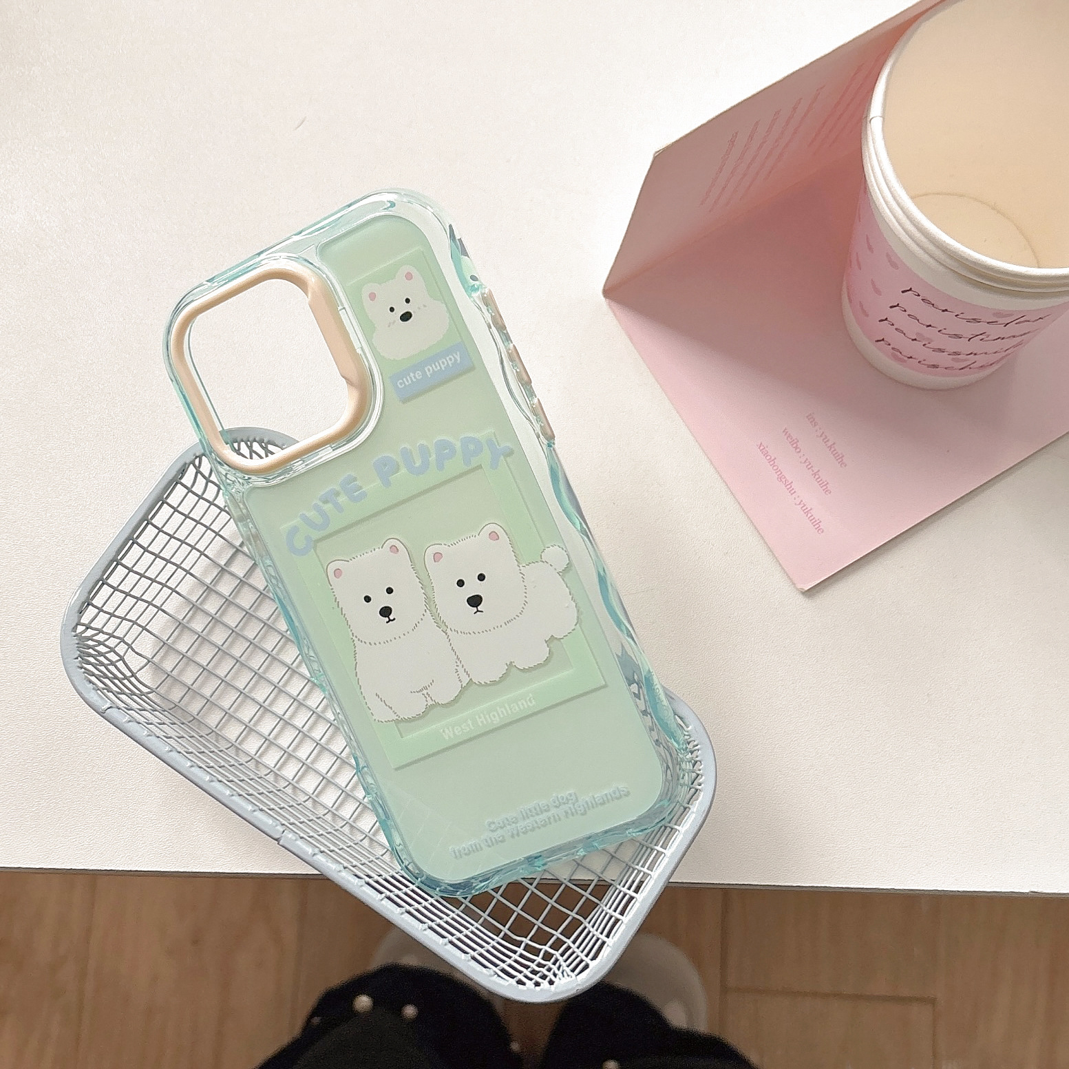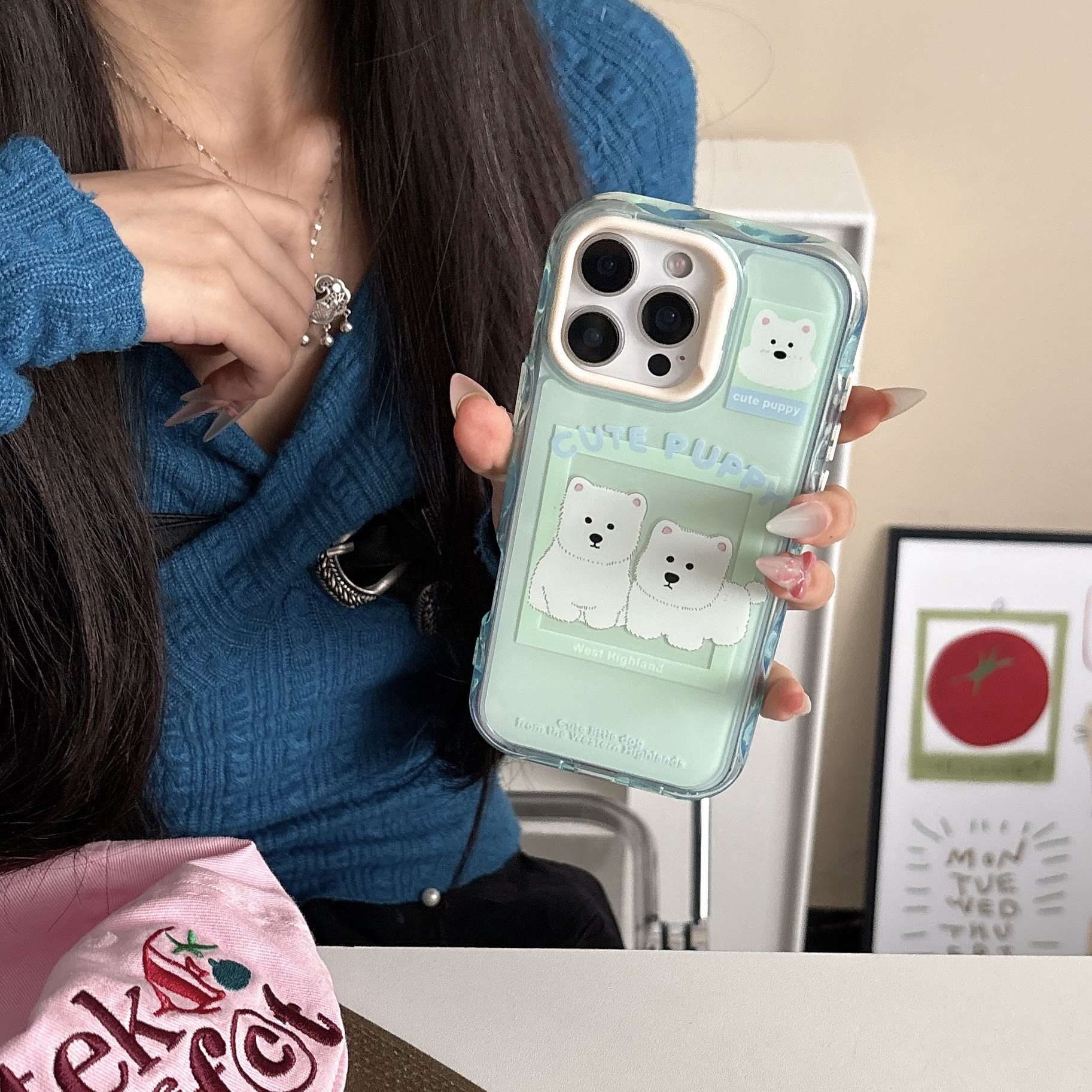Dibujos animados coreanos Graffiti Little White Dog Adecuado para Apple 16proMax Funda para teléfono móvil 15Pro Verano 14/13 Mujer 15PM