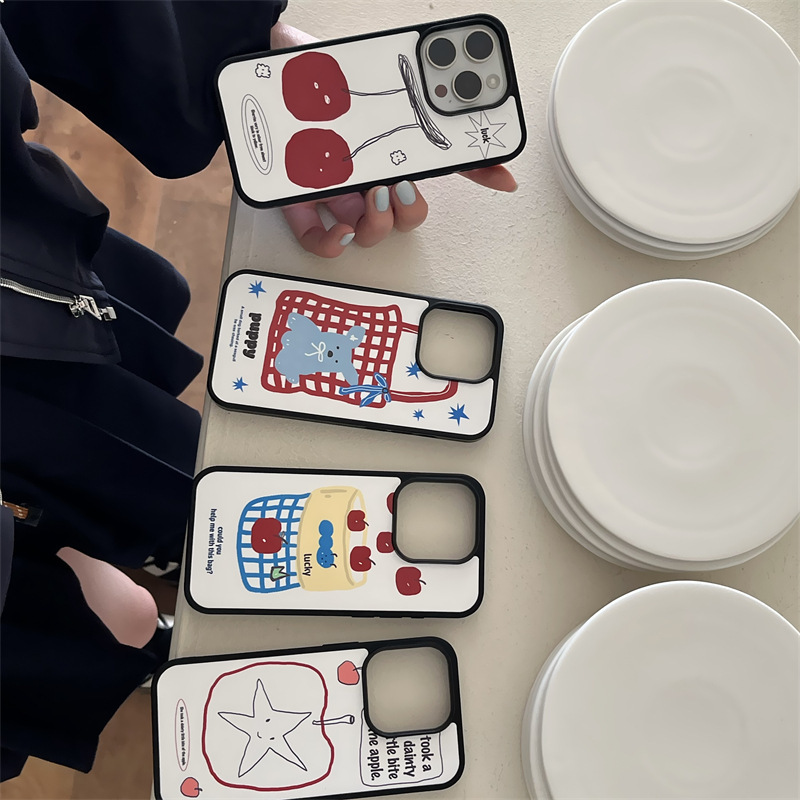 | Colores | Líneas Apple Star English-Black Back one,Línea dos cerezas-borde negro one,Canasta blanca manzana-borde negro uno,Bolso de perrito a cuadros rojo-borde negro uno |