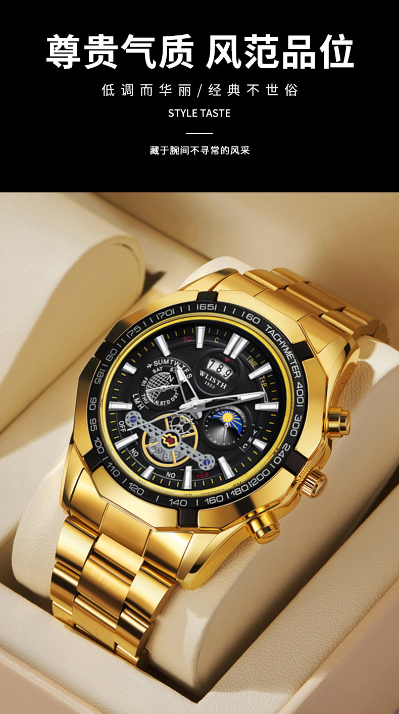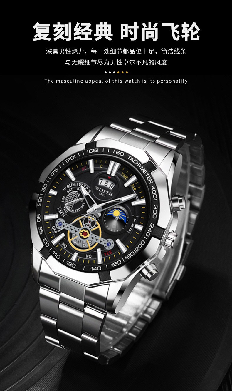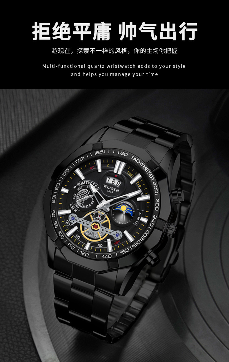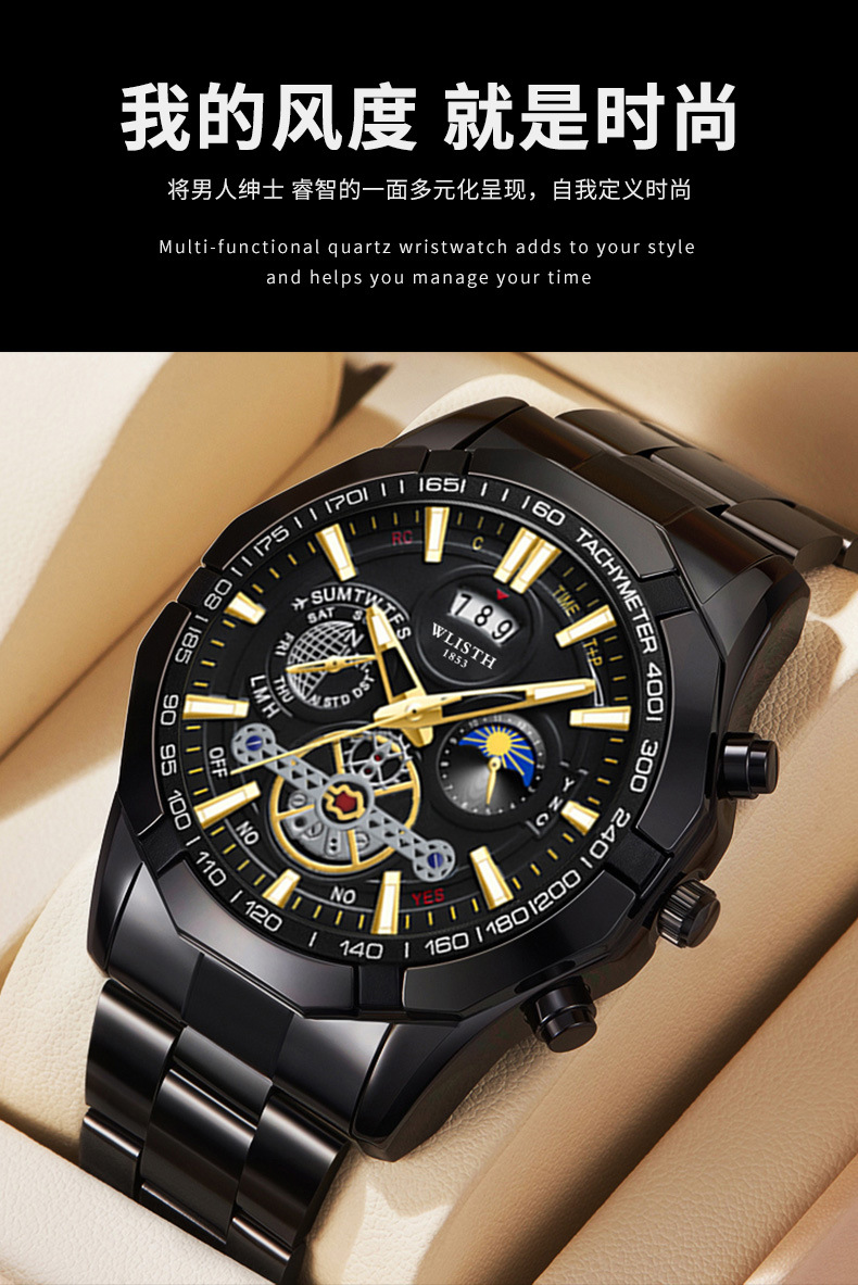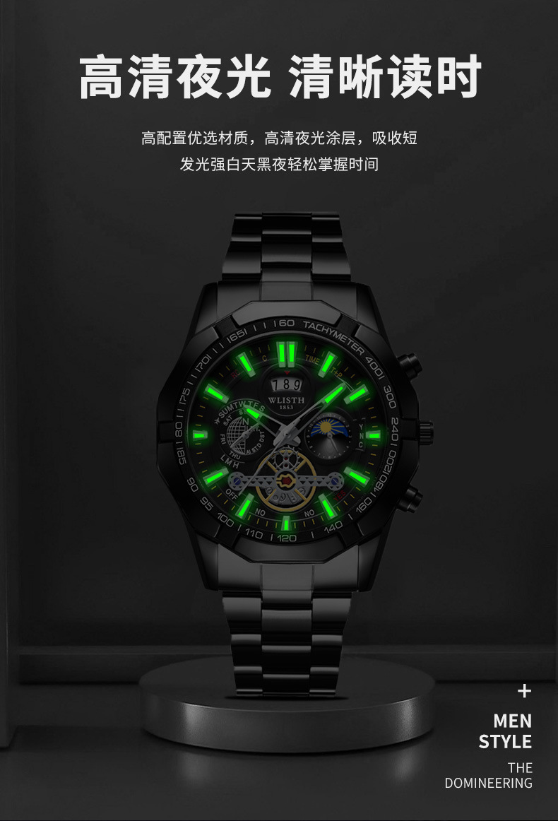 WLISTH Reloj para hombre de la marca suiza Reloj de cuarzo impermeable luminoso con esfera grande Reloj para hombre con calendario de banda de acero Reloj de comercio exterior