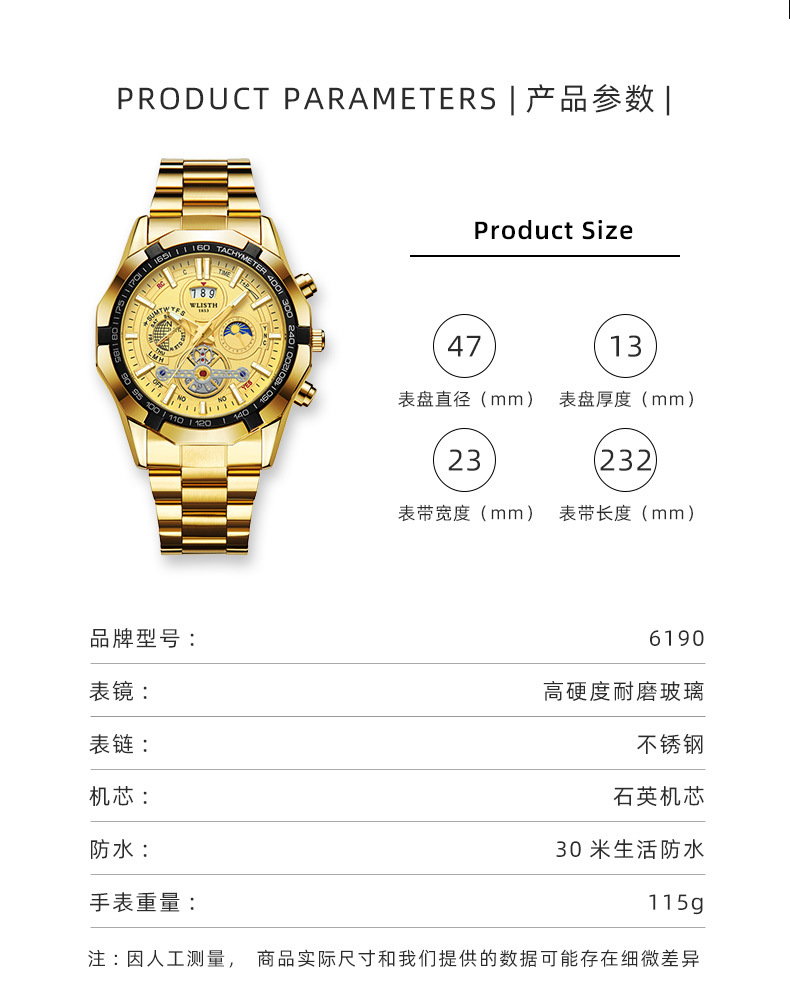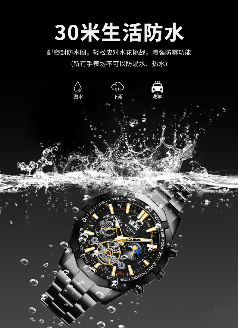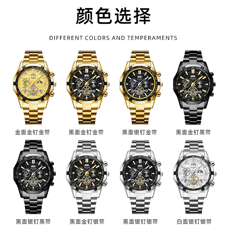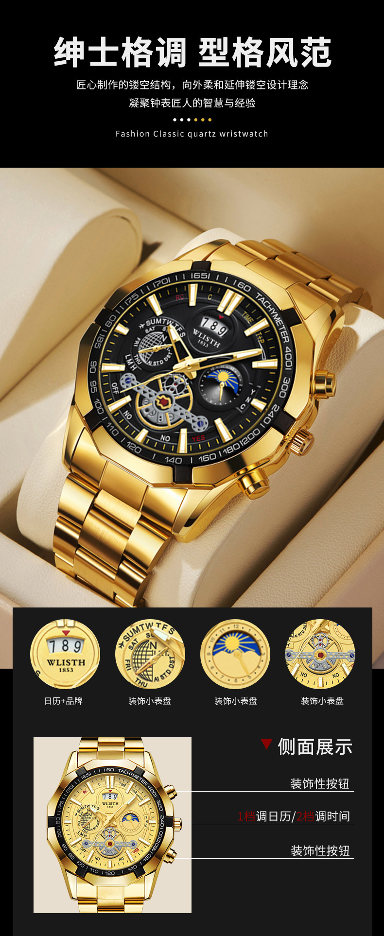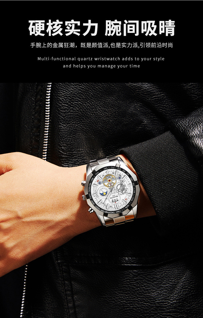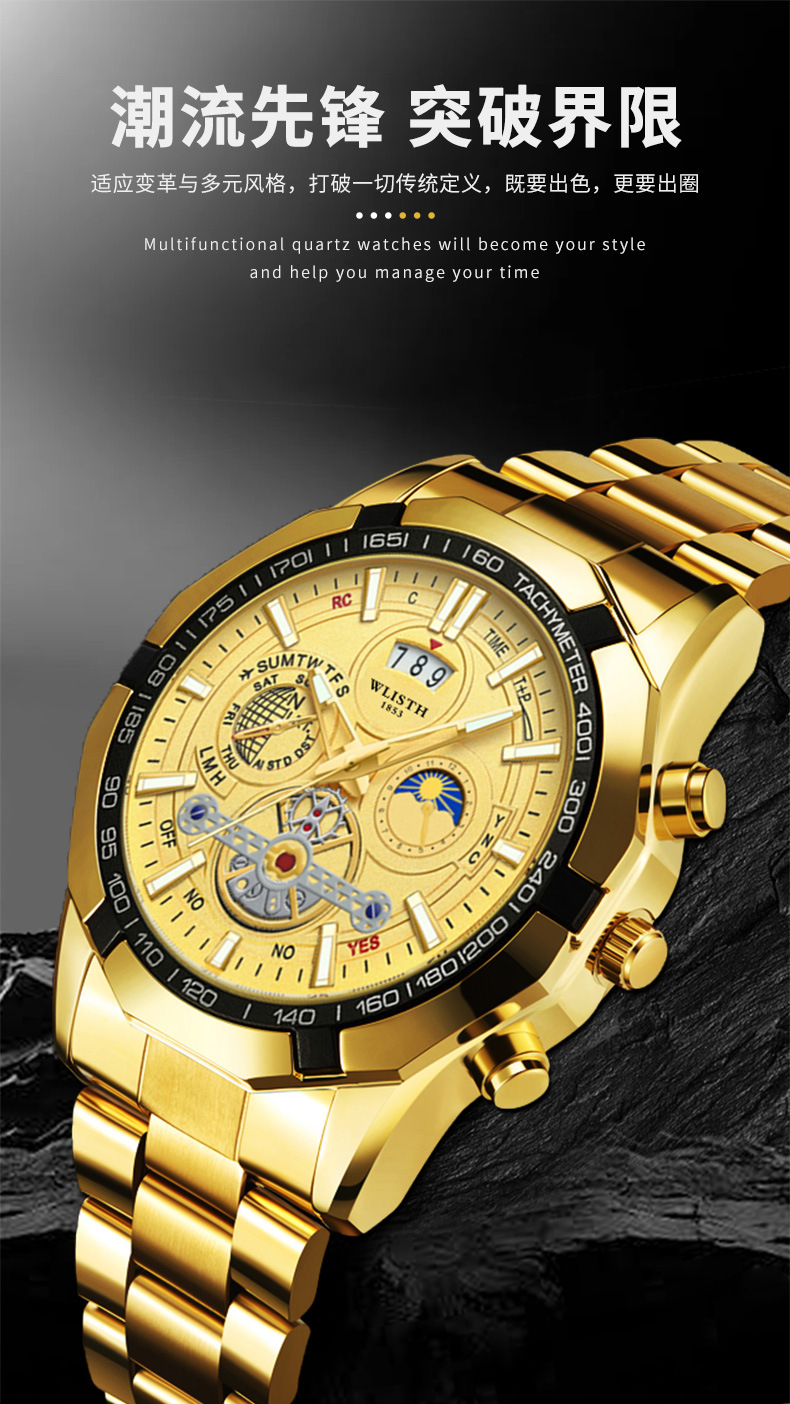 WLISTH Reloj para hombre de la marca suiza Reloj de cuarzo impermeable luminoso con esfera grande Reloj para hombre con calendario de banda de acero Reloj de comercio exterior