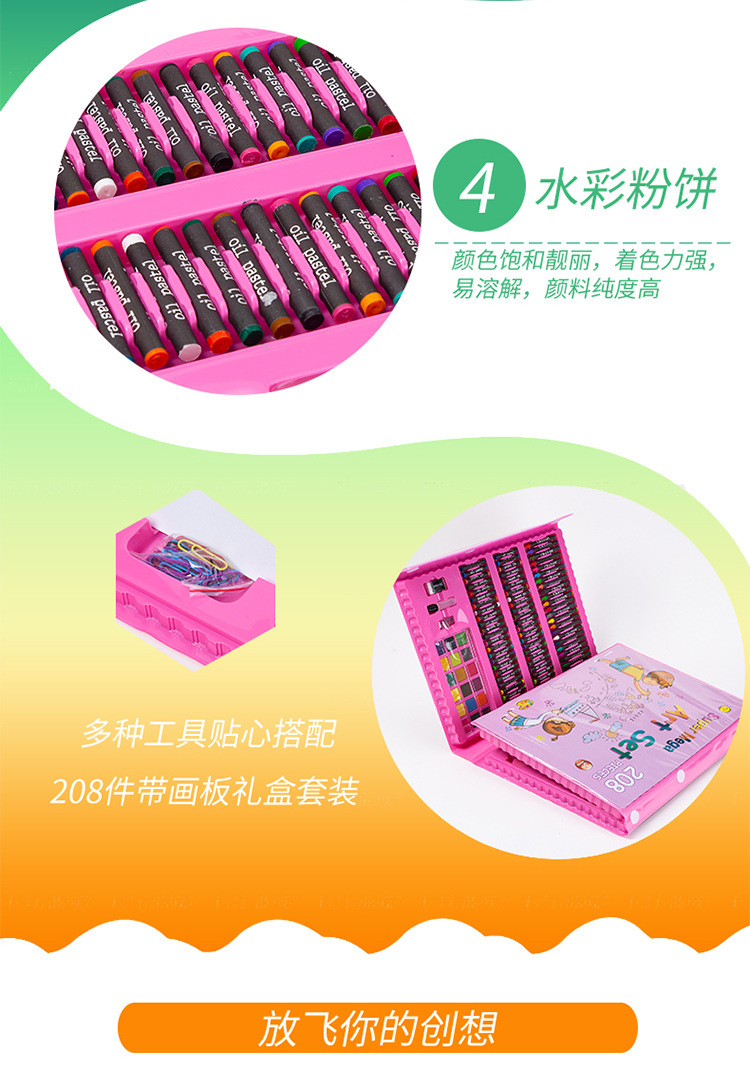 208 pinceles, rotuladores, crayones, colores, juegos de plomo, juegos de pintura de regalo, soporte de bolígrafo de acuarela, una pieza