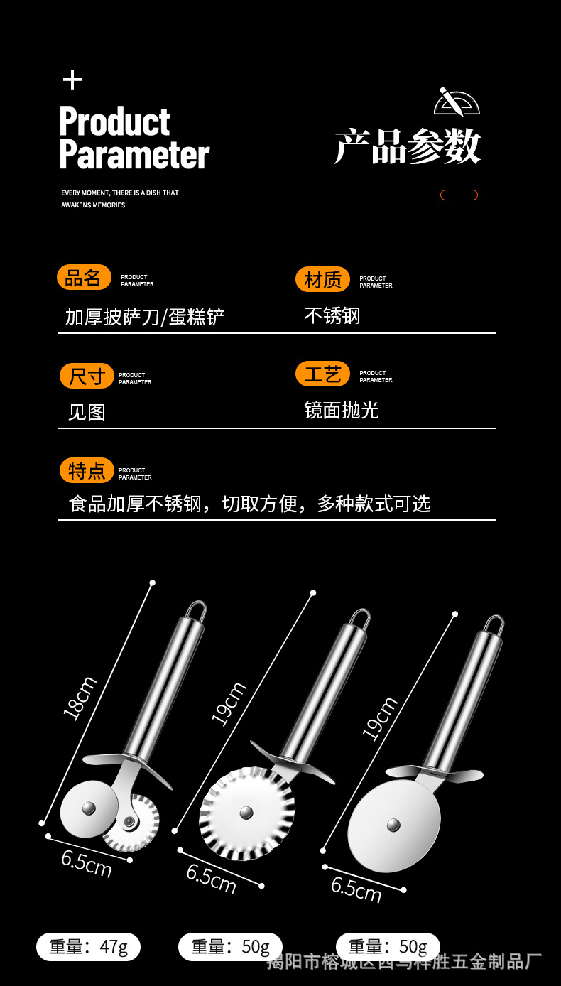 Herramientas para hornear de cocina Cortador de pizza de una sola rueda de acero inoxidable Mango de tubo redondo Cuchillo de rueda de pizza de encaje de doble rueda Pala para pastel