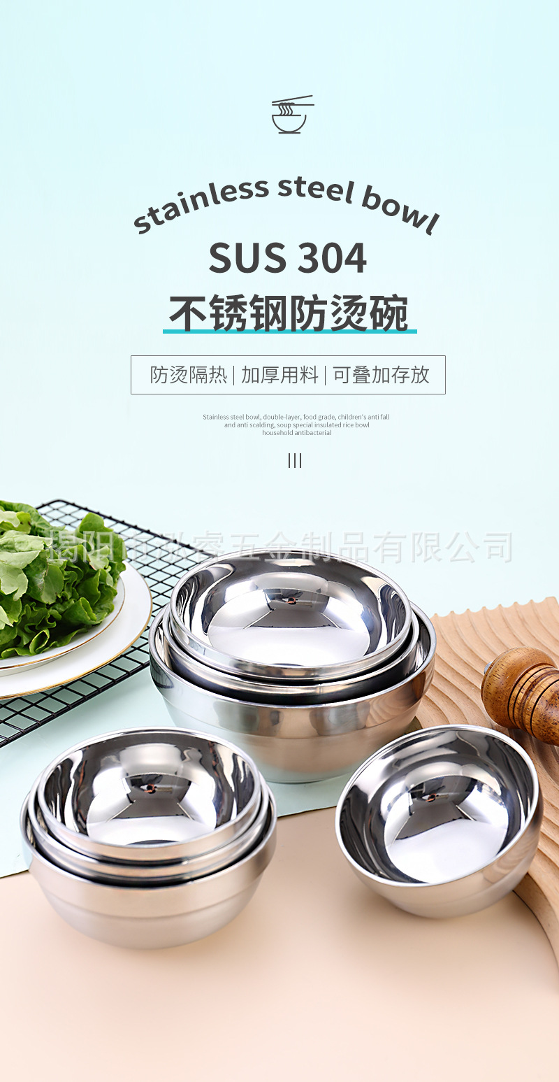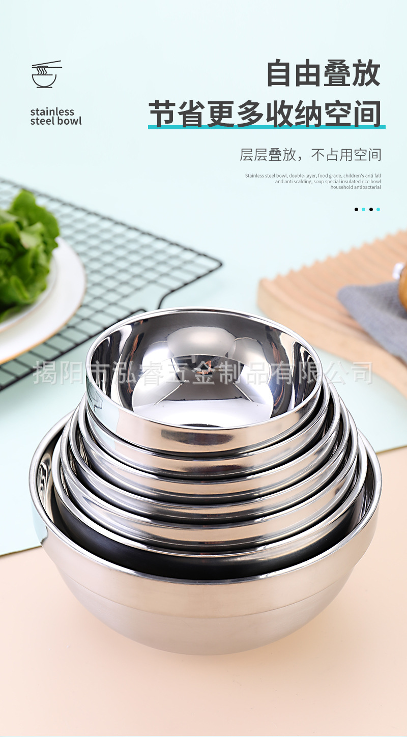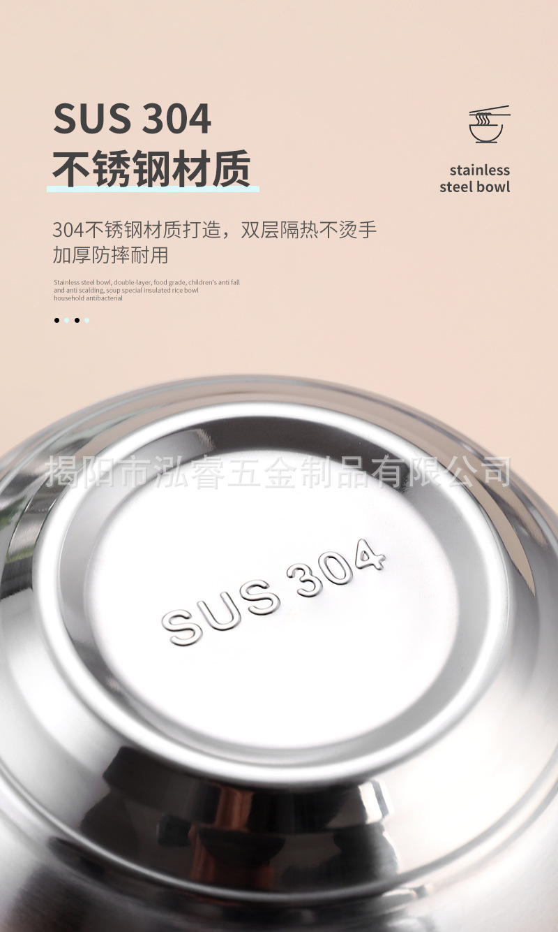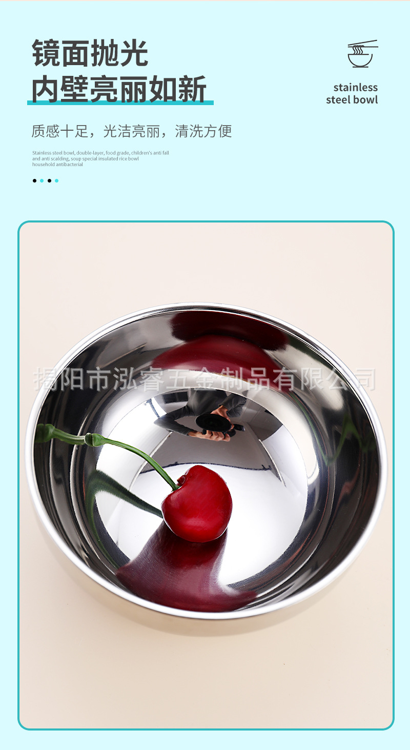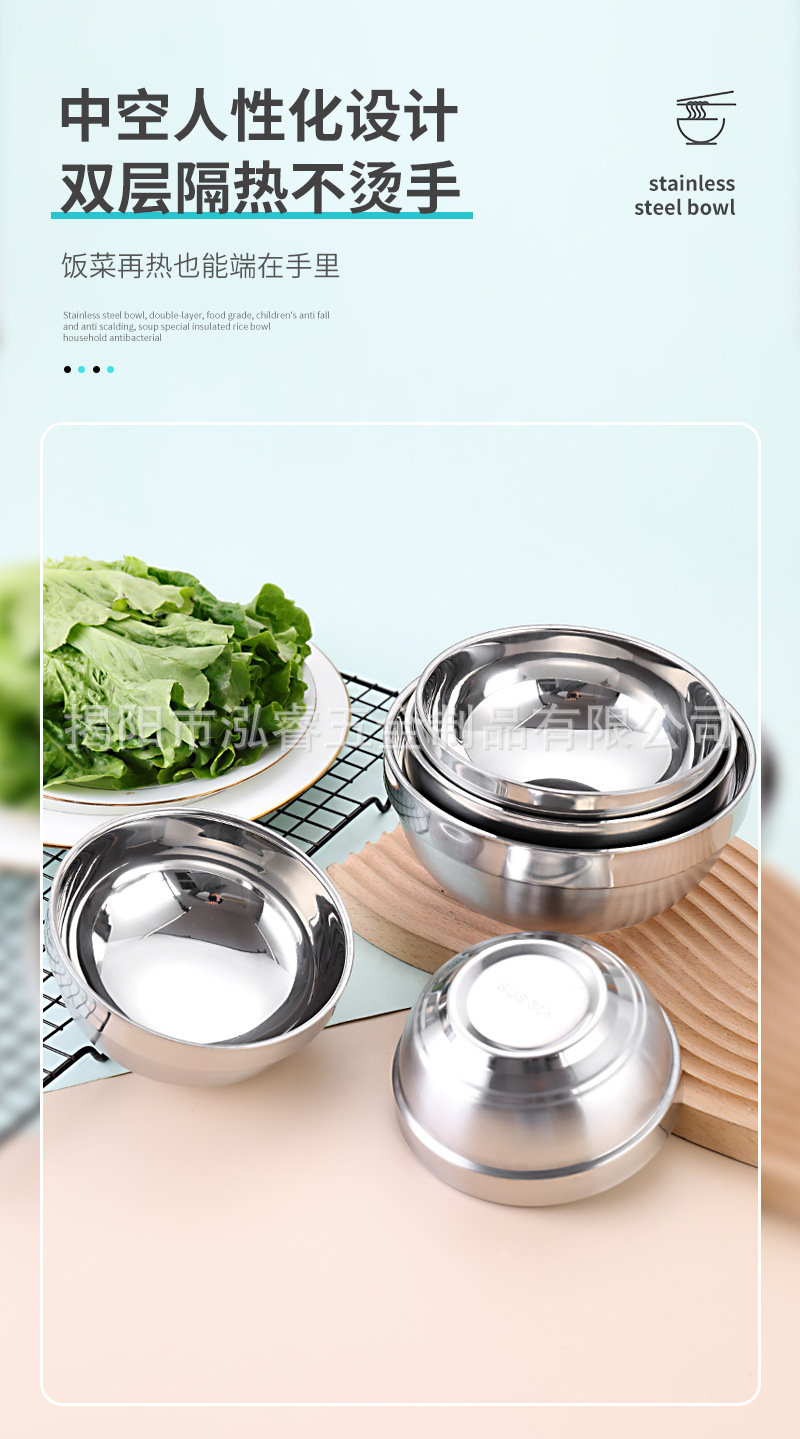 Cuenco de platino personalizado Cuenco de acero inoxidable 304 Cuenco de arroz doméstico anti-escaldado de doble capa Cuenco de arroz Cuenco de sopa anti-caída Cuenco para niños