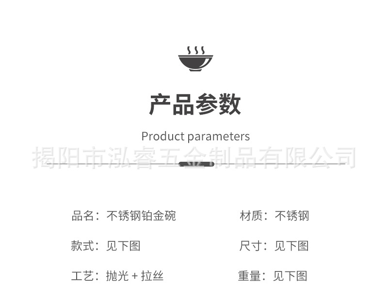 | Colores | Tazón de platino 201 (interior y exterior 201),Cuenco de platino 304 (interior 304 exterior 201),Tazón de platino 304 (interior y exterior 304) |