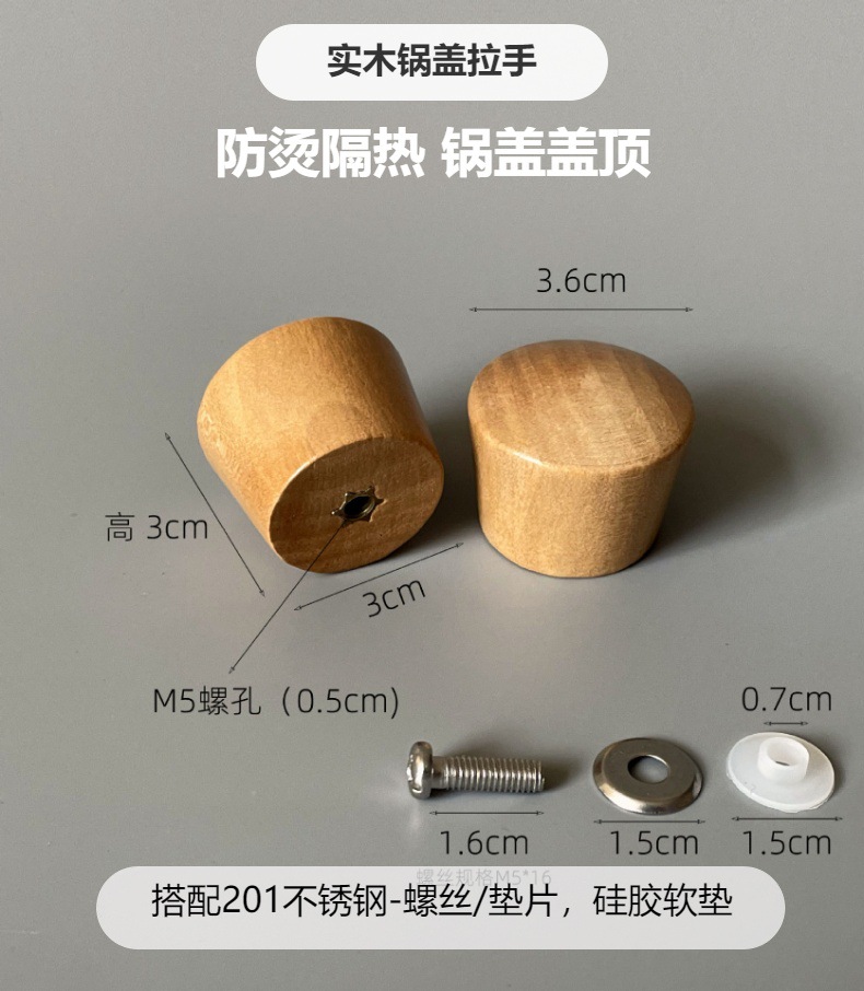 Aislamiento térmico antiescaldado Manija de madera maciza cuentas superiores Tapón de olla universal Manija Accesorios de tapa Tapa de vidrio Tapa de asa Tapa de asa