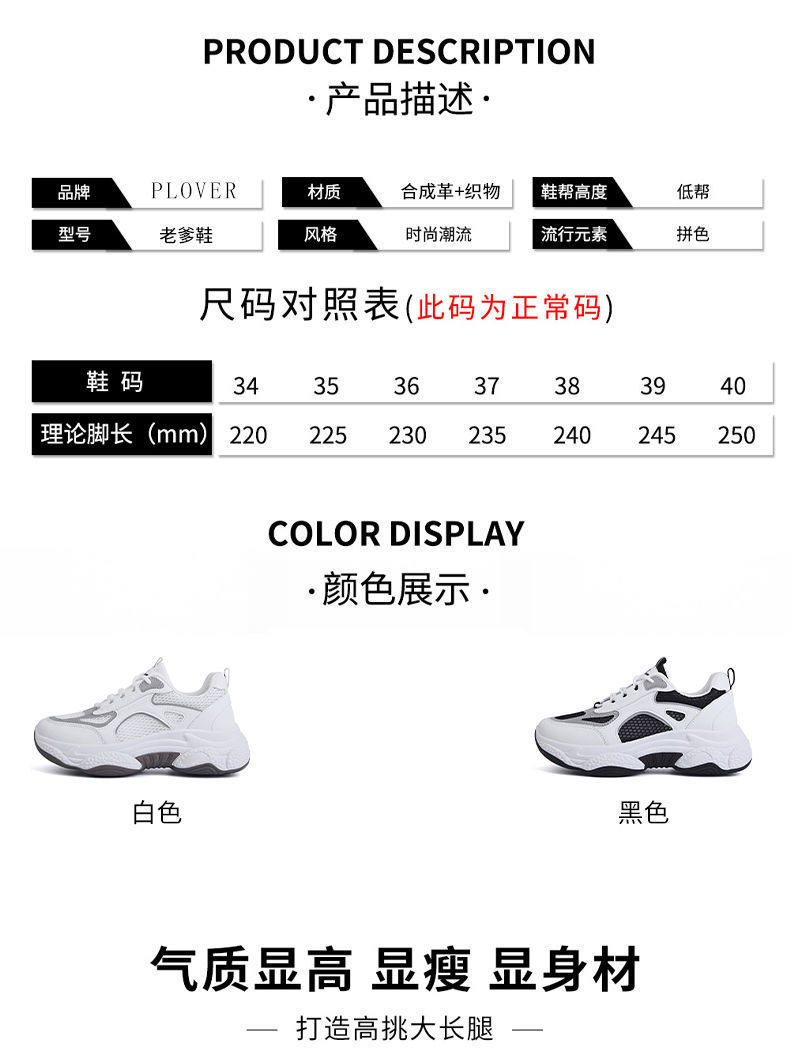 PLOVER Woodpecker Daddy Shoes Mujer de moda 2025 verano nuevo estilo transpirable con pies pequeños zapatos deportivos de malla para correr