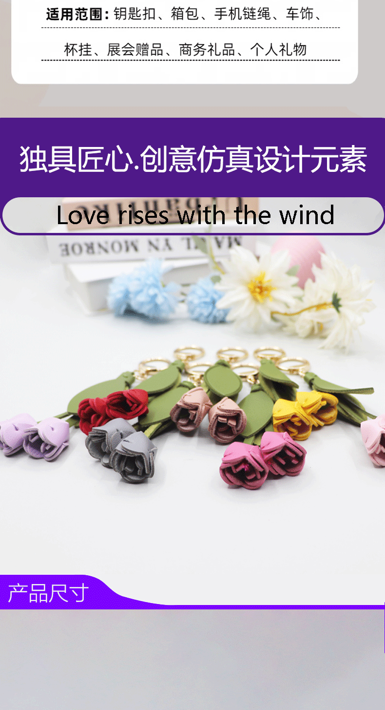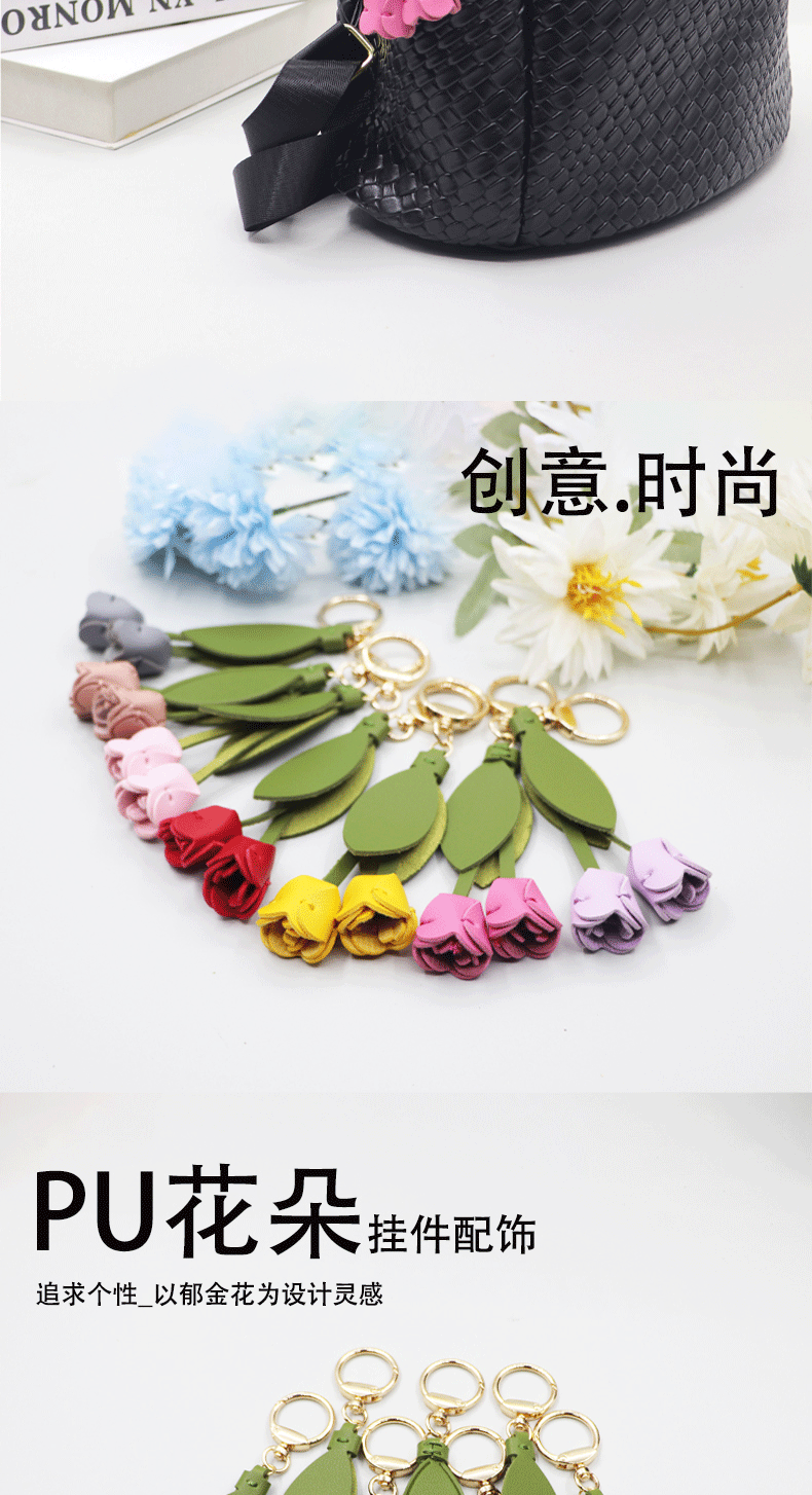 Xiaohongshu mismo estilo llavero de tulipán lindo y personalizado bolso de llaves de coche colgante logotipo impreso ventas directas de fábrica