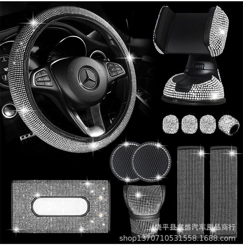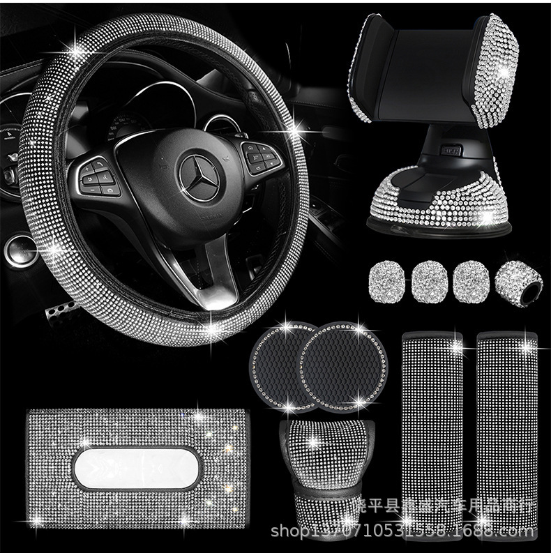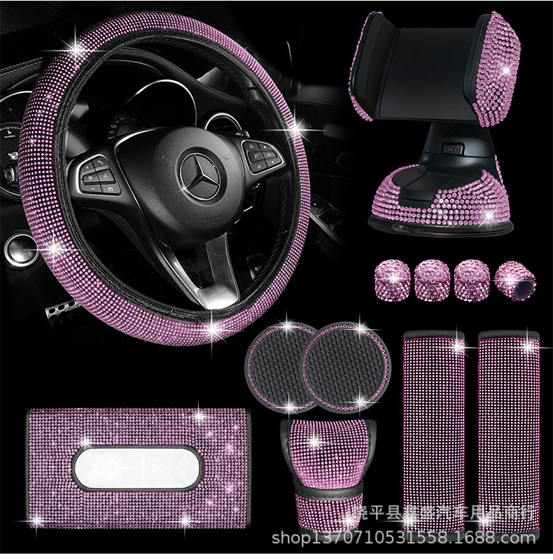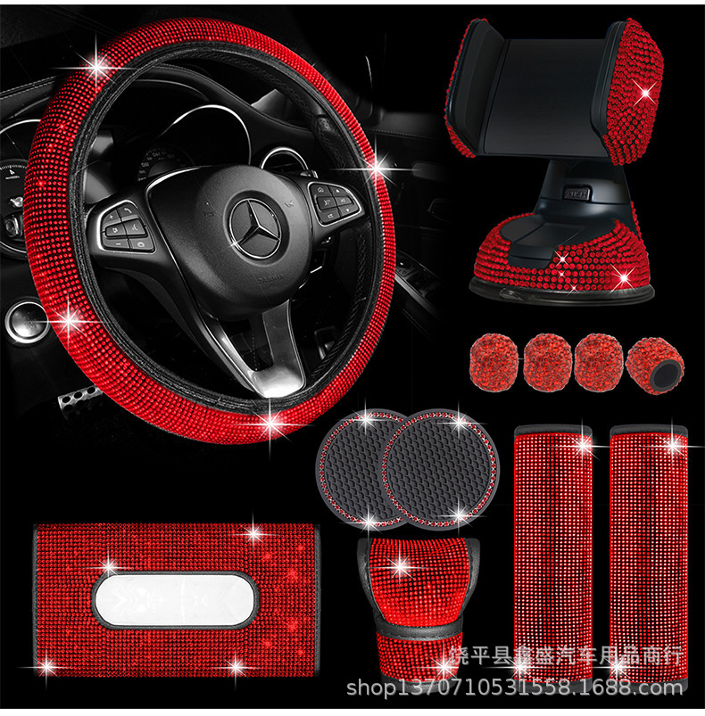 Piezas de automóvil de diamantes de imitación transfronterizos Juego de 12 piezas Funda para hombros Almohadilla para reposabrazos Funda para freno de mano Juego de tela interior de diamante