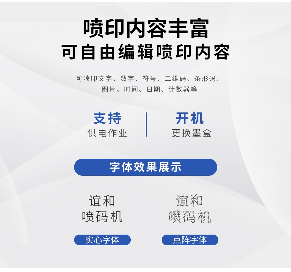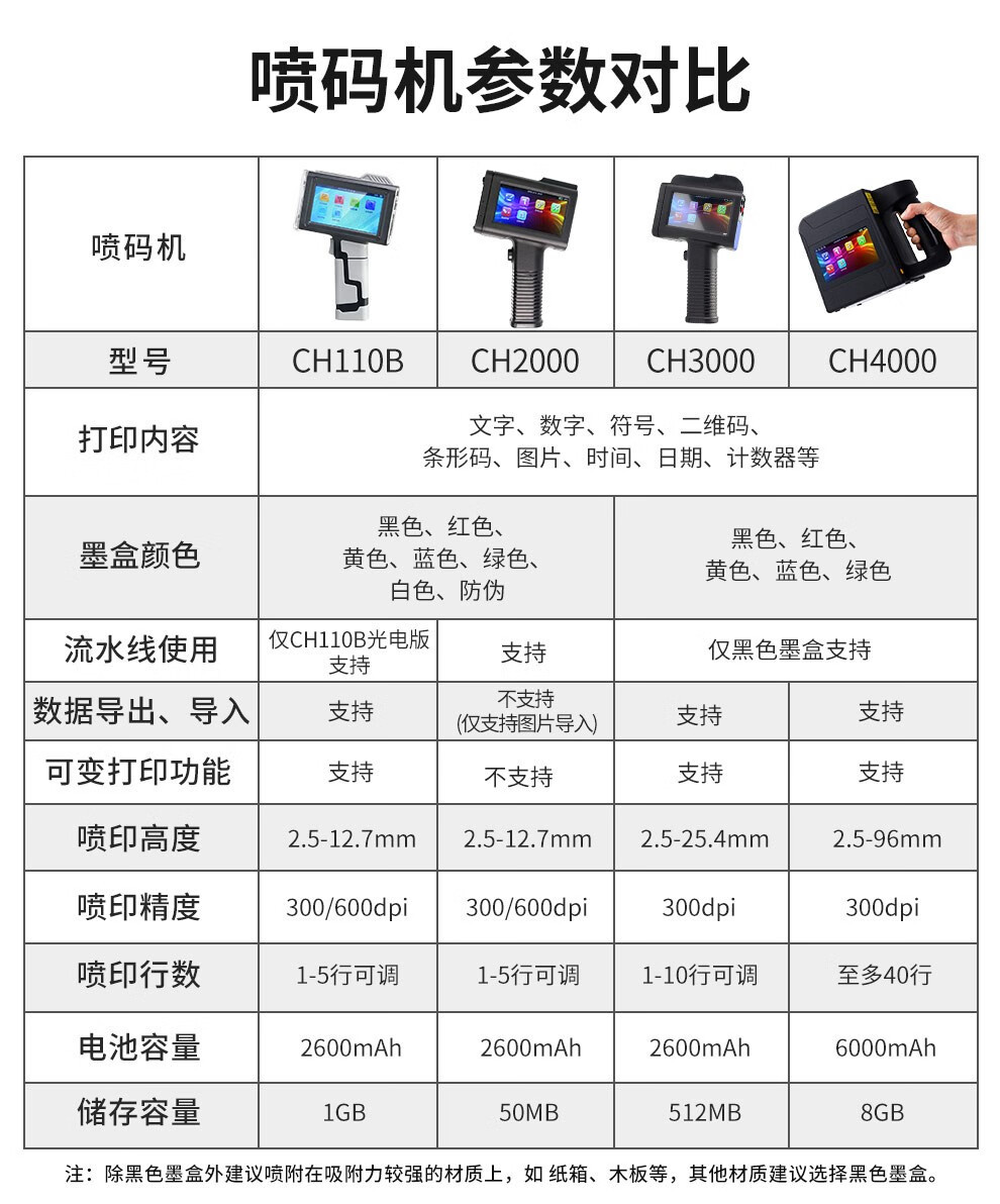 | Tipo | Pequeña boquilla CH110B cartucho a base de agua 2-12.7mm,Pequeña boquilla ch110B cartucho de secado rápido 2-12.7MM,Cartucho de secado rápido con boquilla pequeña ch110B versión fotoeléctrica,Tinta grande ch3000 cartucho de secado rápido 2-25,4mm,Cabezal grande ch4000 cartucho de secado rápido alto 2-100MM,Cartucho de tinta a base de agua [adecuado para boquillas pequeñas serie CH110B],Cartucho de tinta de secado rápido [para boquillas pequeñas serie CH110B],Cartucho de tinta de secado rápido [para boquillas grandes],Cartucho de tinta de secado rápido actualizado [para boquillas pequeñas CH2000],Cartucho de tinta de secado rápido para caja de aluminio CH110B,Actualización de pantalla capacitiva CH2000 [2 ~ 12,7mm],Cartucho de tinta de alta adherencia mejorado TH510A+ |