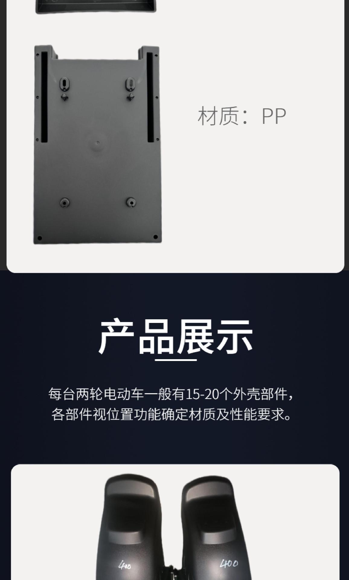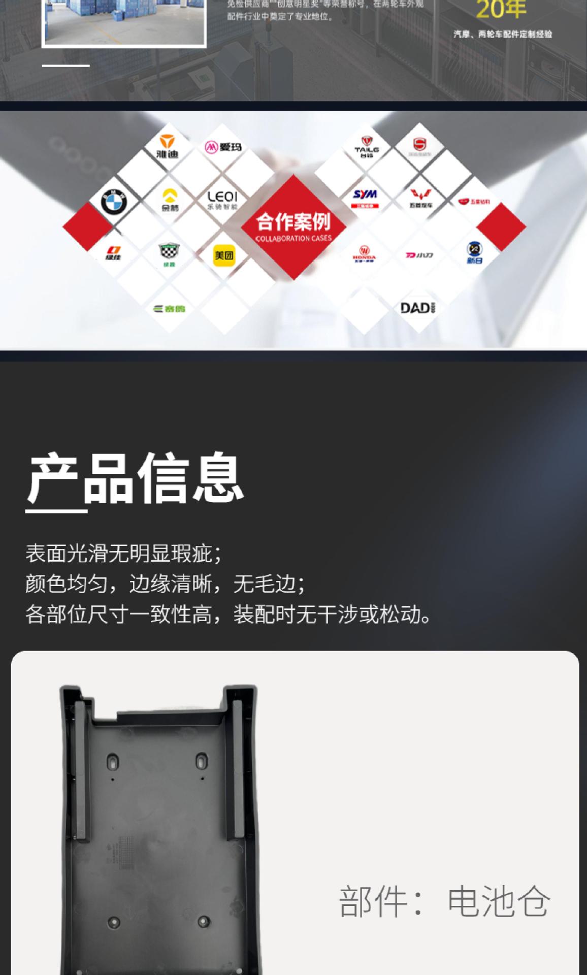Resistente a los arañazos, alto impacto y resistencia a la temperatura, piezas de plástico del compartimiento de la batería del vehículo eléctrico de dos ruedas original, piezas de moldeo por inyección de precisión multicolor, piezas de automóvil eléctrico